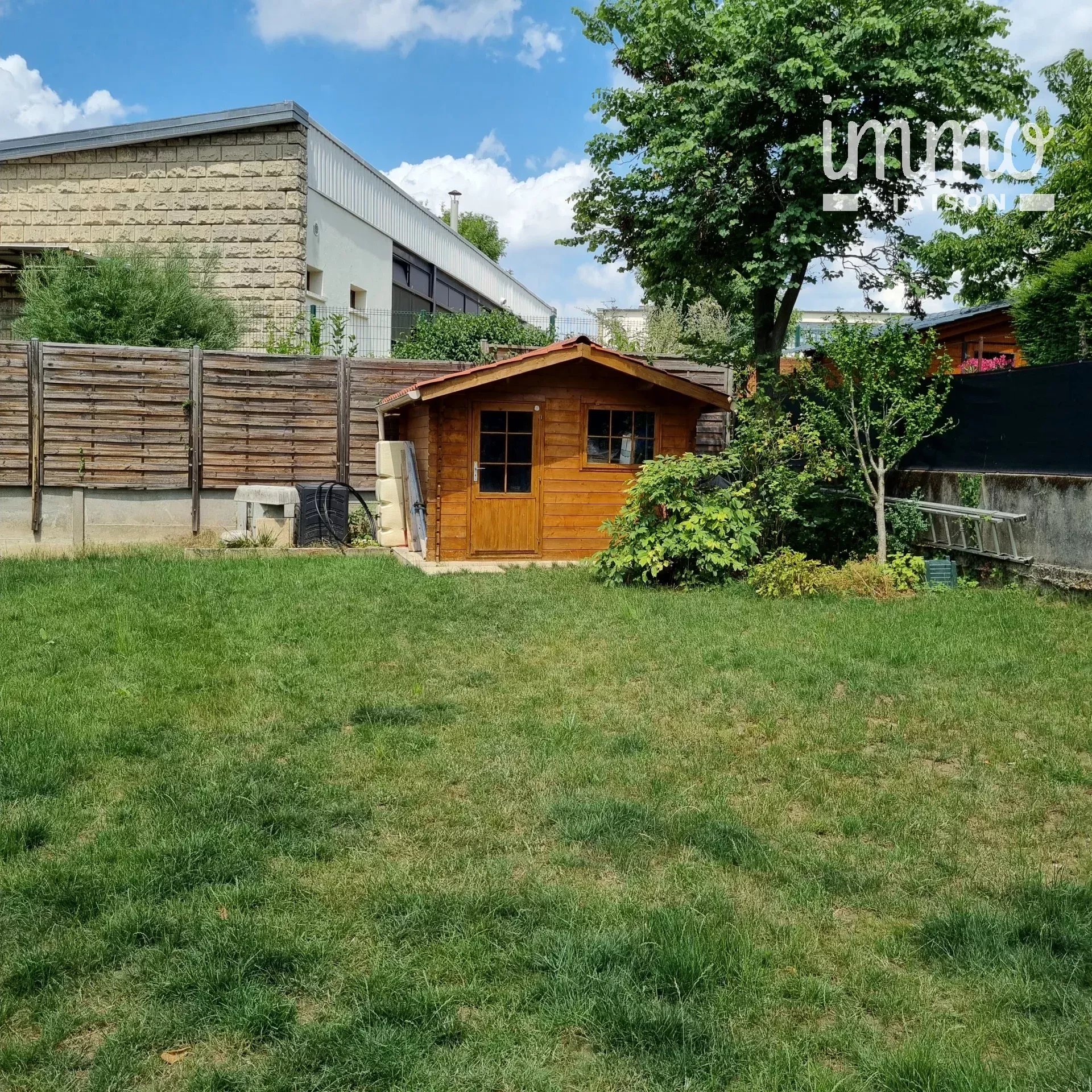 Stationnement 2 voitures sur le coté de la maison, petit chalet en bois au fond de la parcelle.