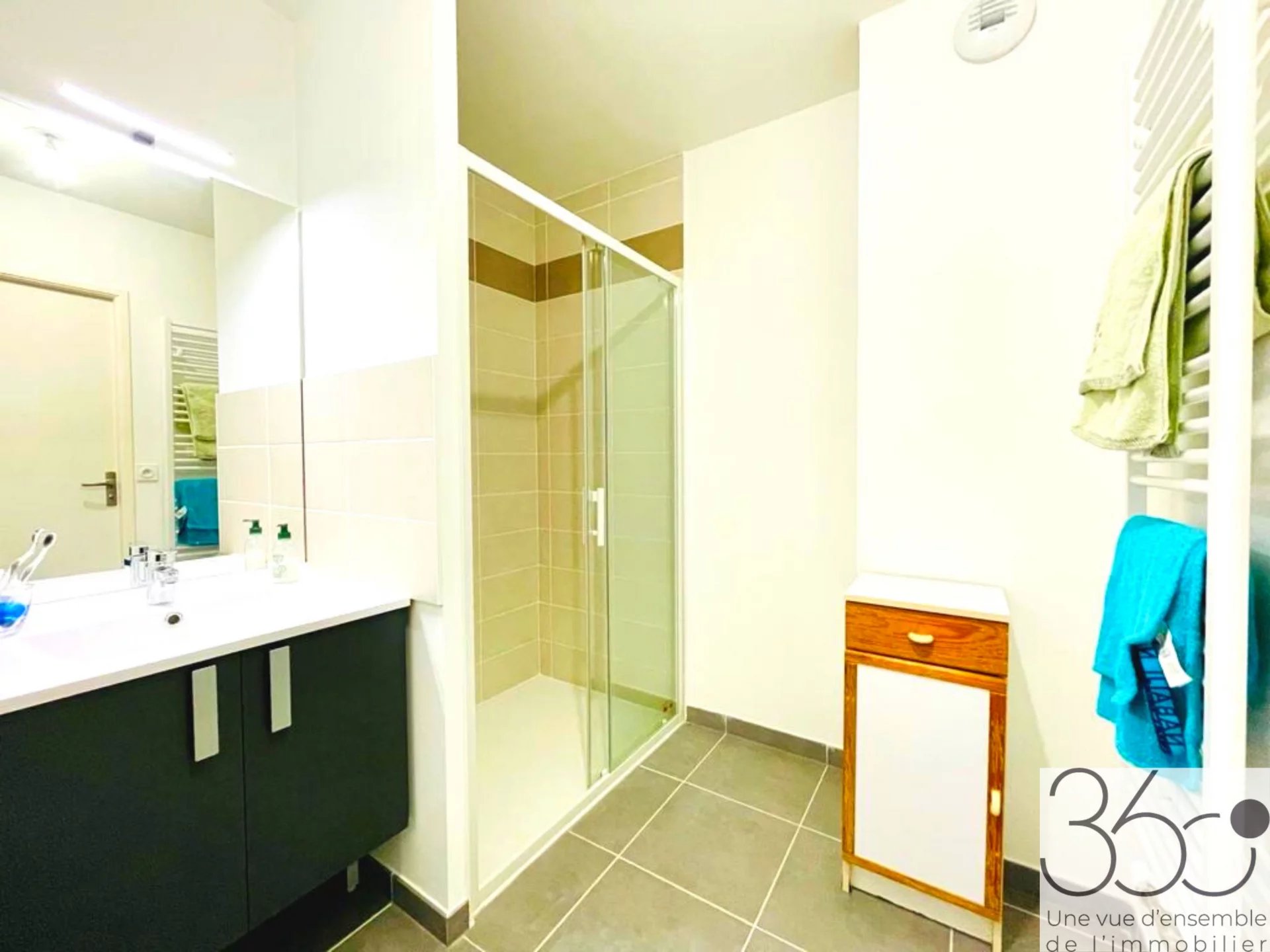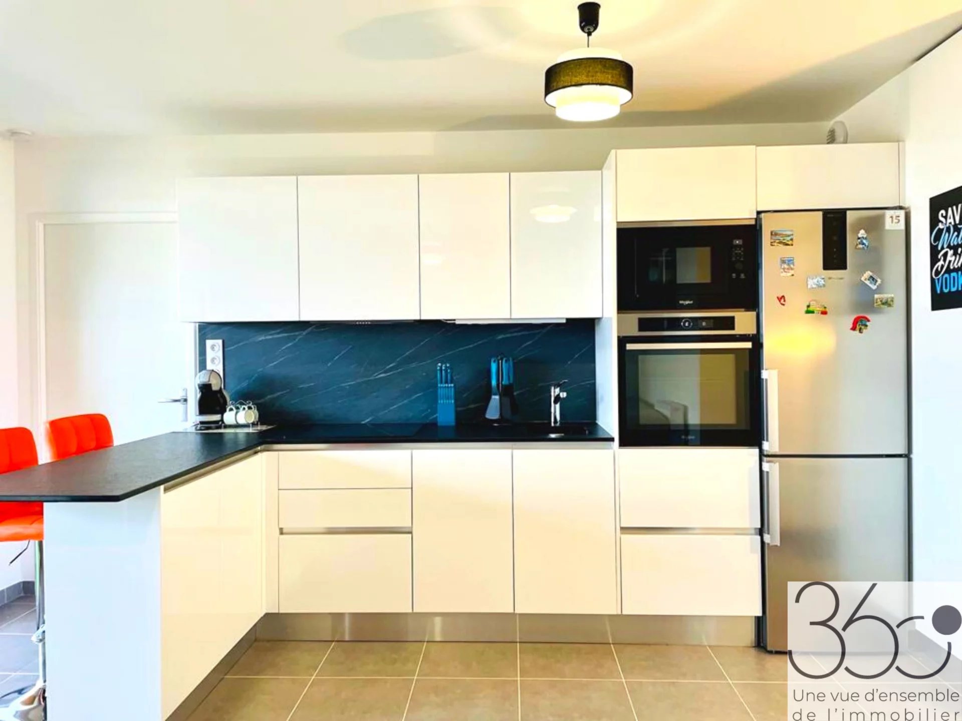 Vous serez séduit par les finitions irréprochables et les prestations haut de gamme : cuisine équipée, plan de travail en granite noir, terrasse bois, fibre, climatisation réversible dans la pièce de vie et pompe à chaleur collective pour le système de chauffage.