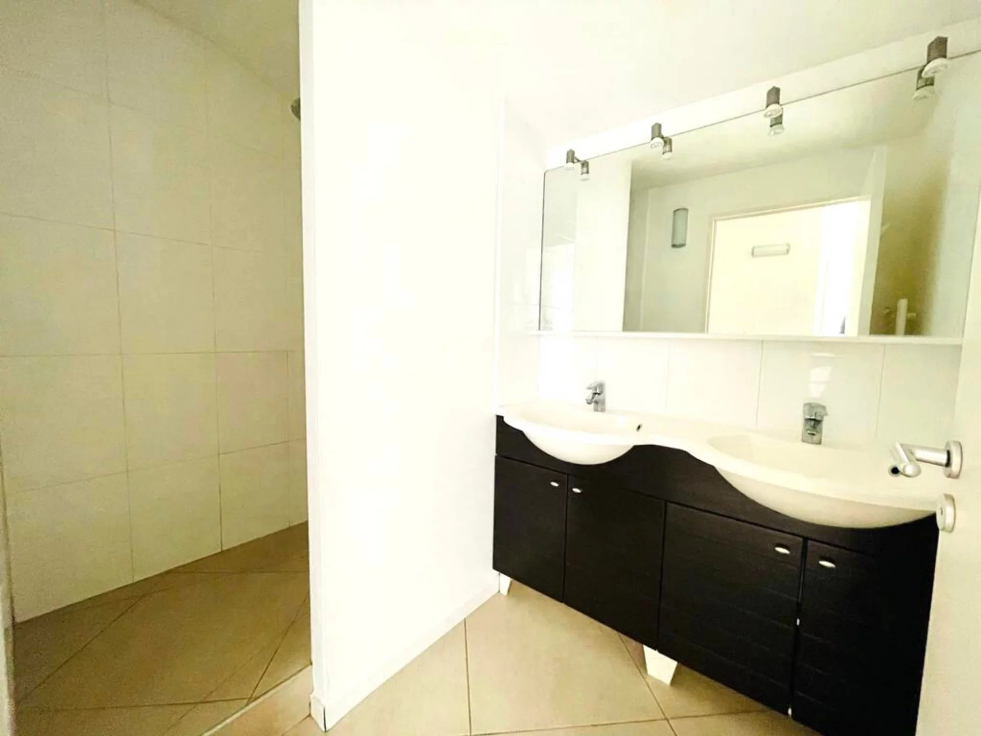 Au deuxième niveau, nous trouvons un palier avec rangements de 4m², une salle d’eau avec double vasque et douche à l’italienne et deux chambres avec rangements.