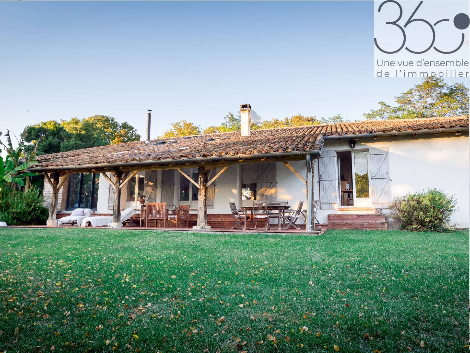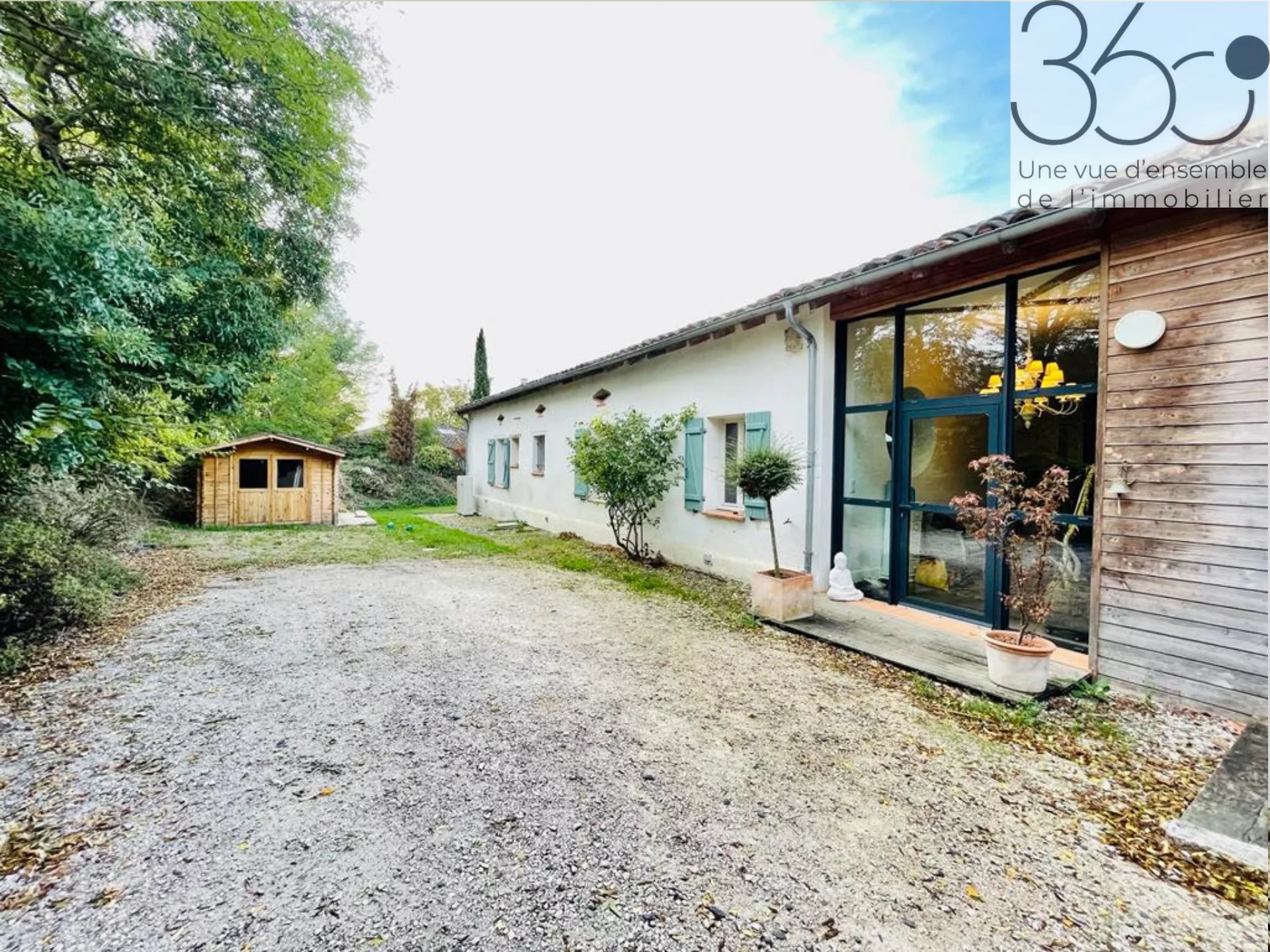 Côté extérieur, vous pourrez profiter d’une grande terrasse couverte, d’un terrain plat de 1313m2, piscinable et végétalisé.
