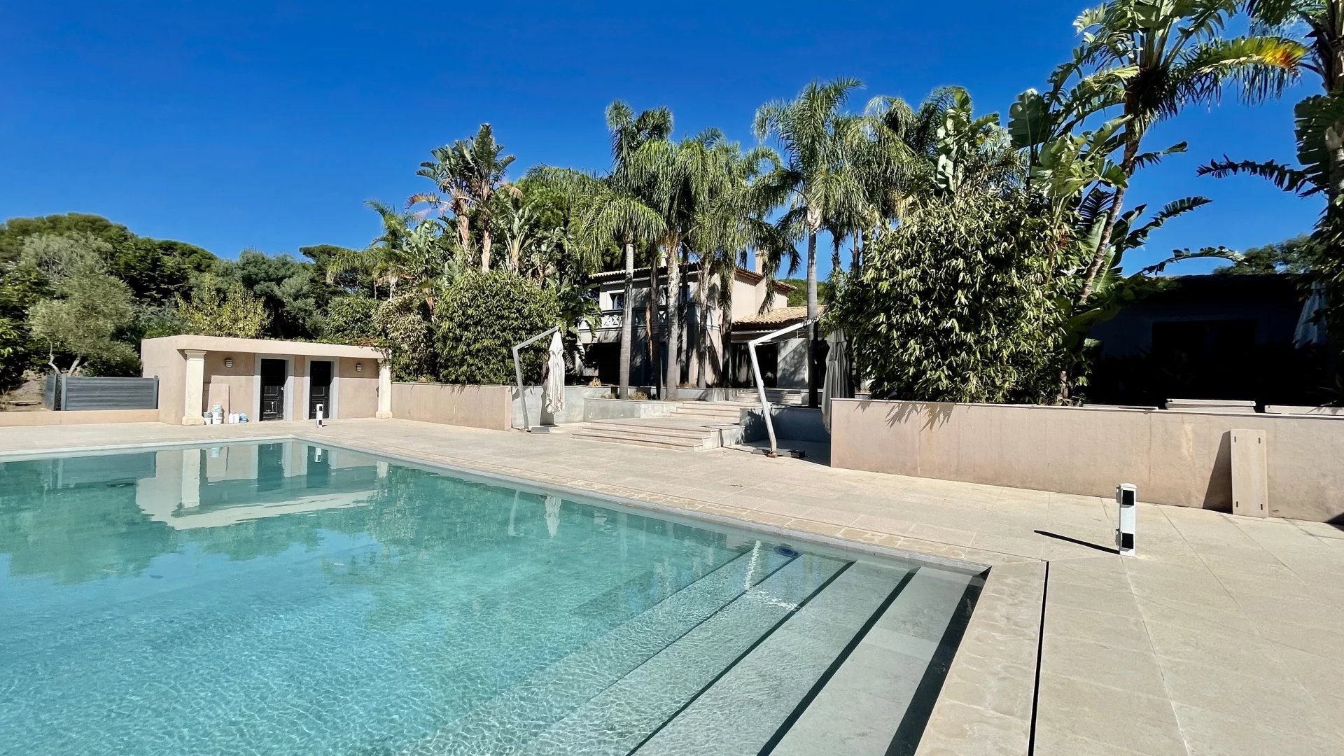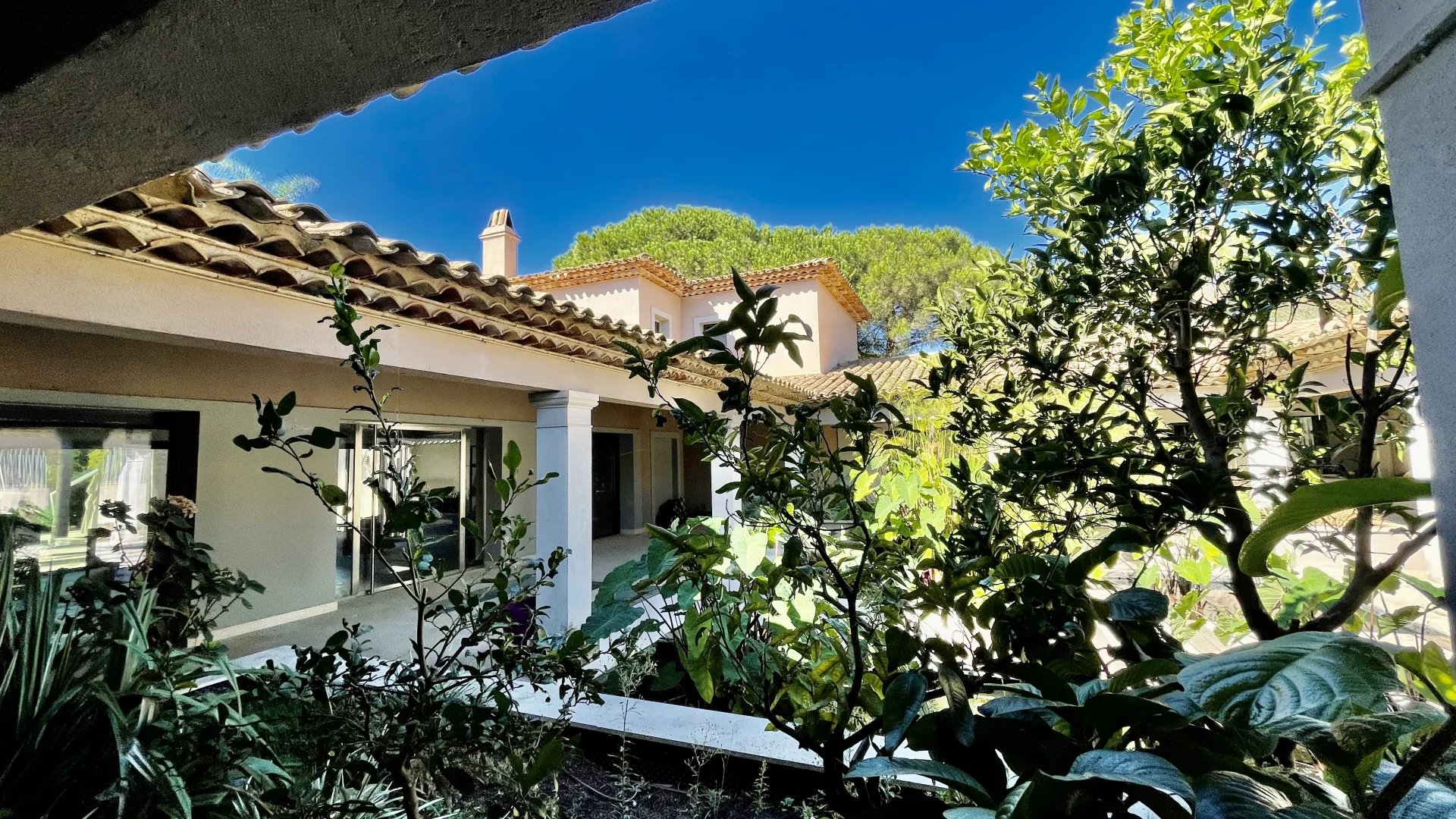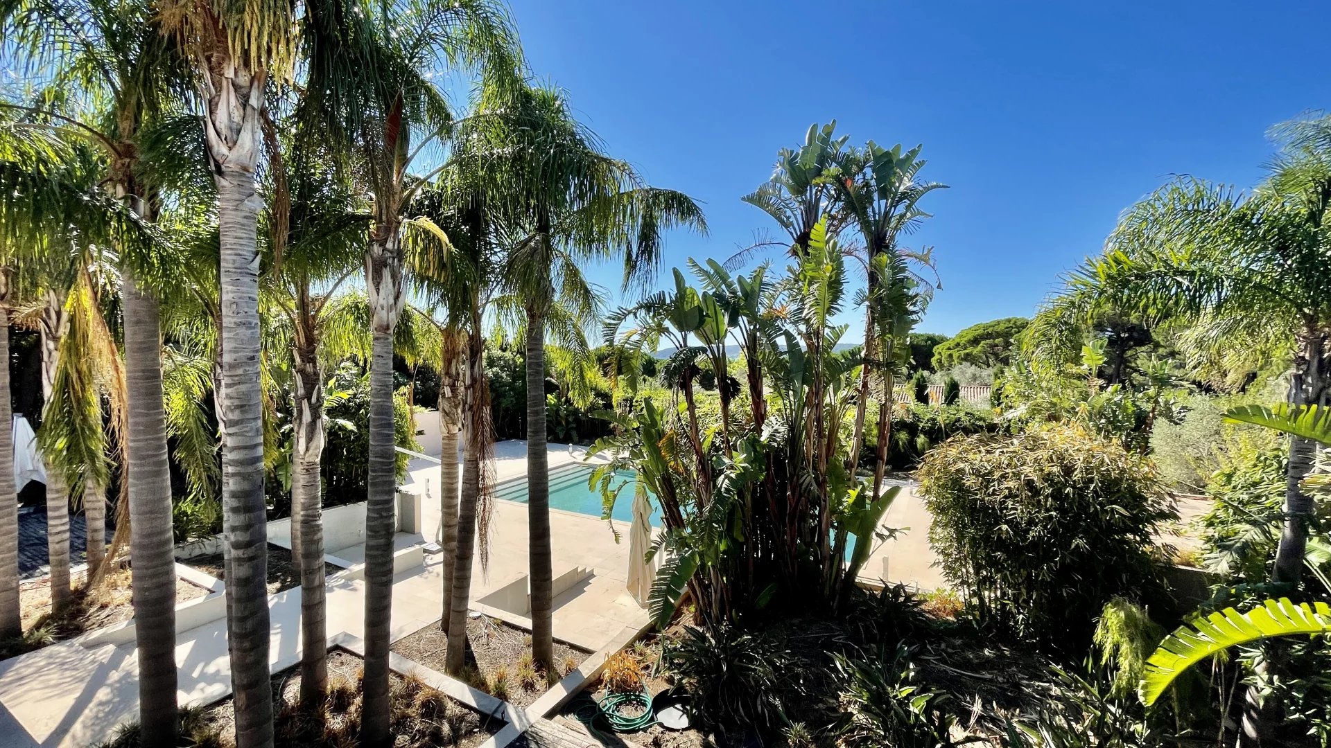 Rare, superbe villa individuelle contemporaine située entre Ramatuelle et Saint Tropez dans le quartier Bellevue ou route de Tahiti à 5 minutes des prestigieuses plages privées de Pampelonne dans un environnement dégagé, calme et résidentiel.