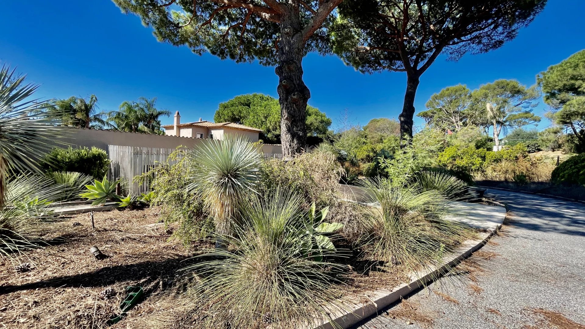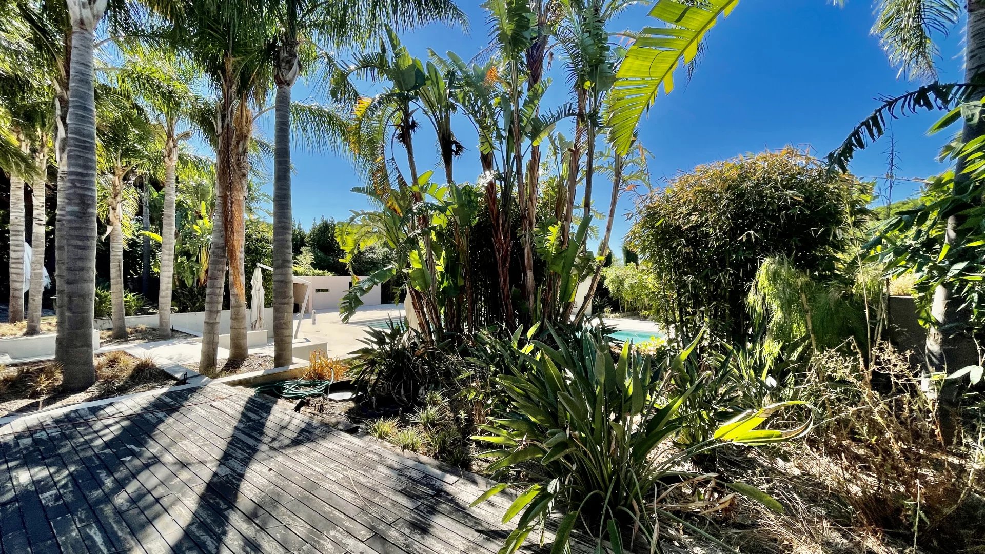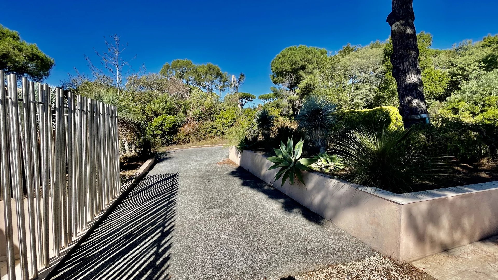 À l’extérieur, la villa s’édifie sur un parc paysager de plus d’un hectare comprenant plusieurs jardins arboré, clôturé complanté aux allures d'oasis,
