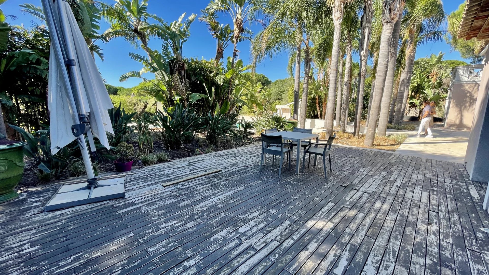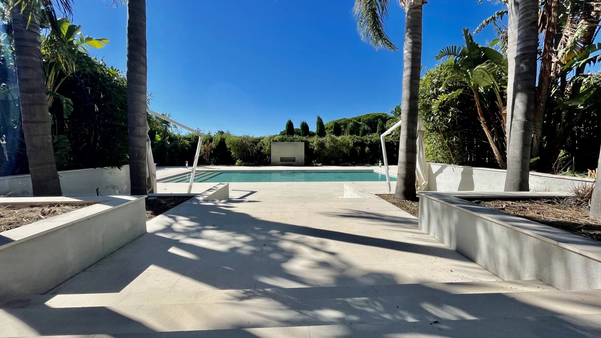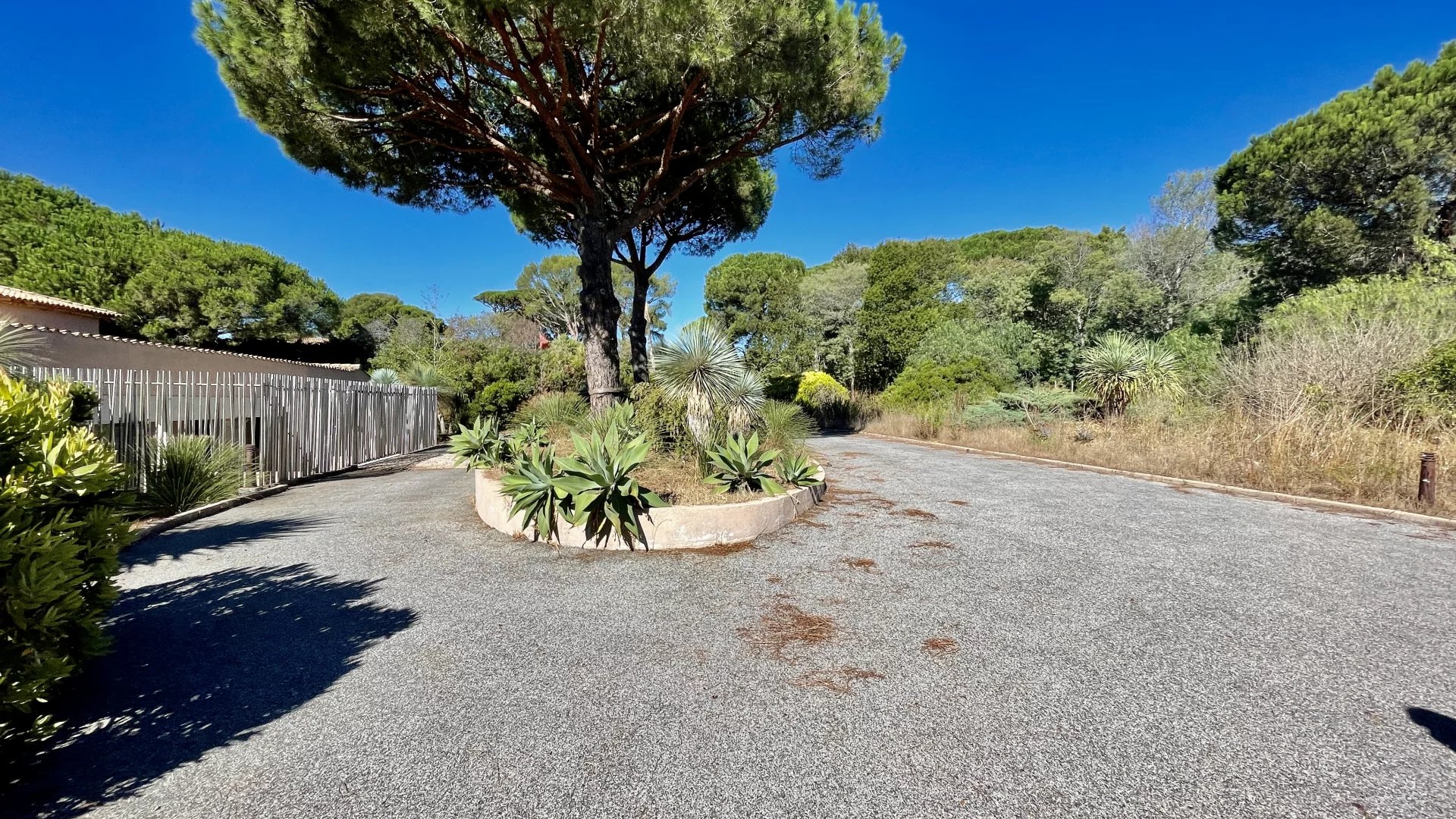 À l’extérieur, la villa s’édifie sur un parc paysager de plus d’un hectare comprenant plusieurs jardins arboré, clôturé complanté aux allures d'oasis,