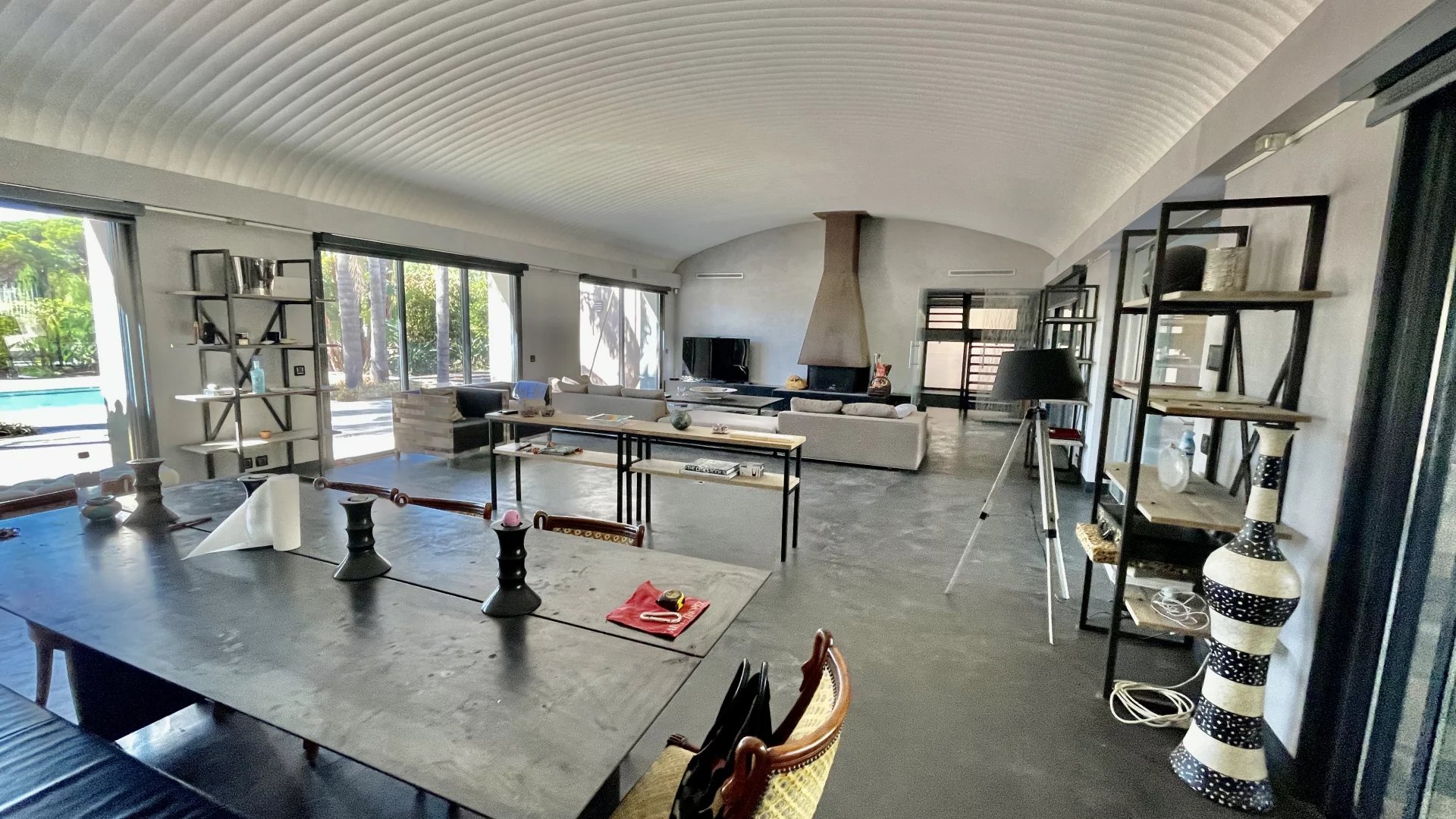 D’une entrée, d’un séjour salon lumineux de 60 M2 aux voutes moderne avec insert de cheminée donnant sur une grande terrasse avec vue sur la piscine extérieure. On y trouve cuisine ouverte de 20m2 entièrement équipé avec grande cave à vin.
