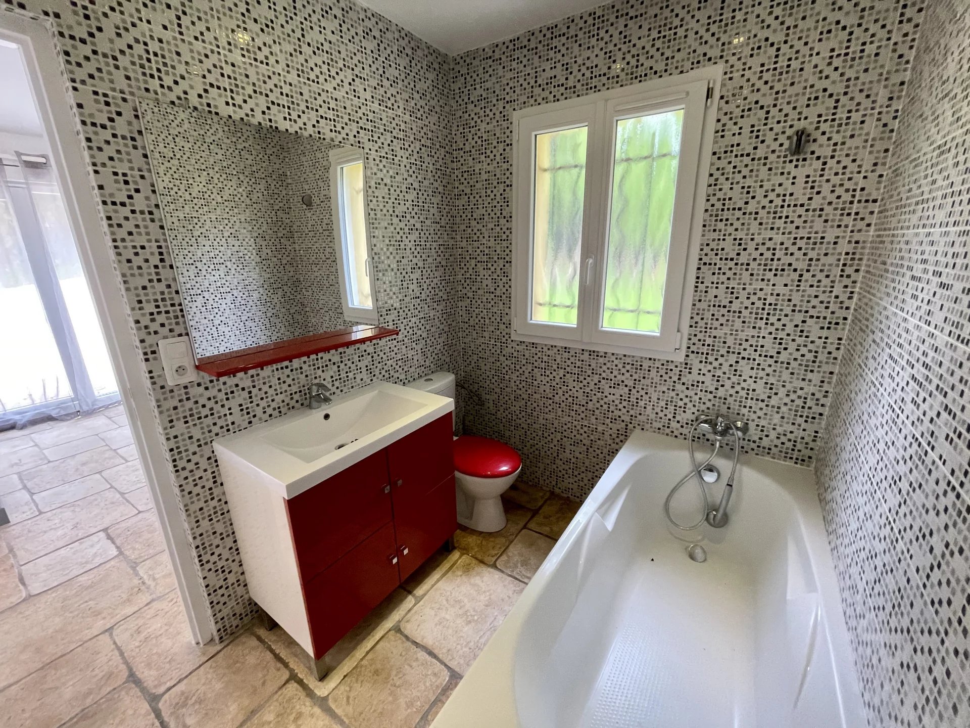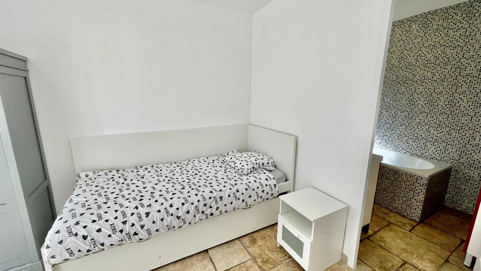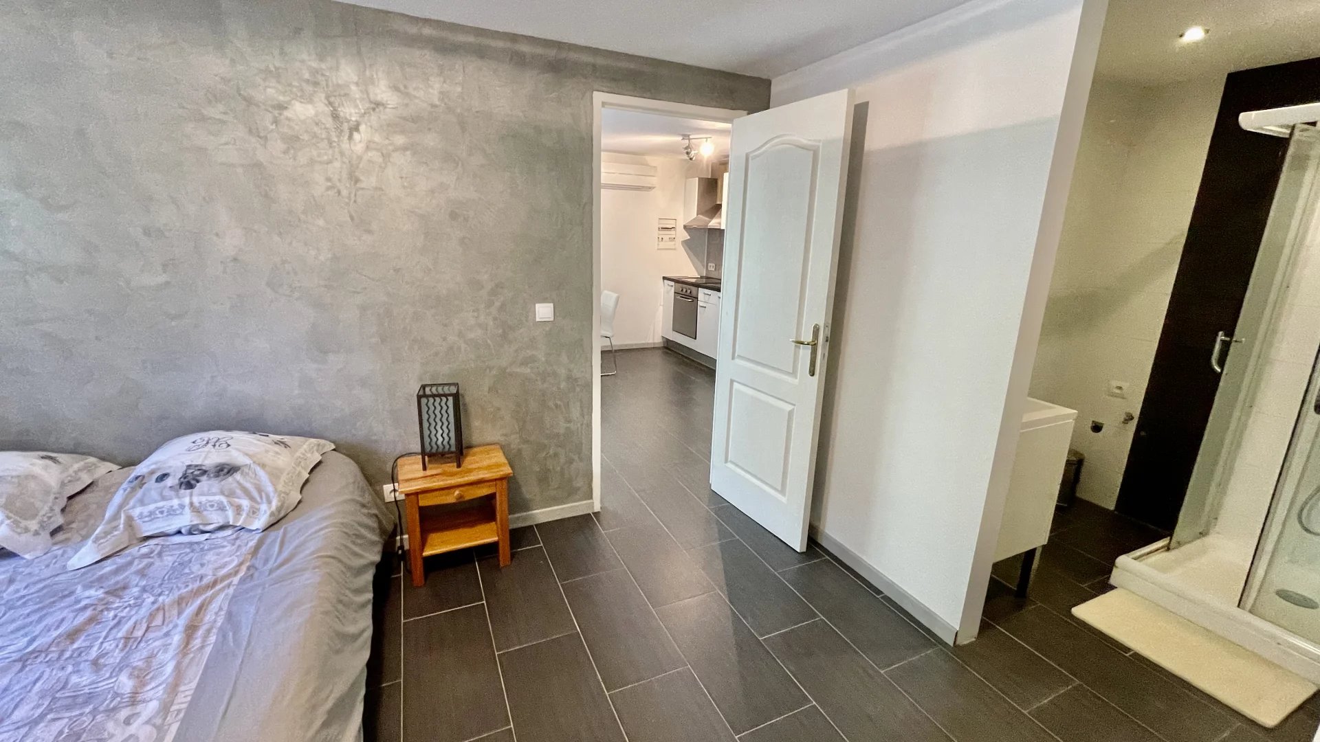 1 studio avec salle de douche, toilettes, terrasse et entrée indépendante.