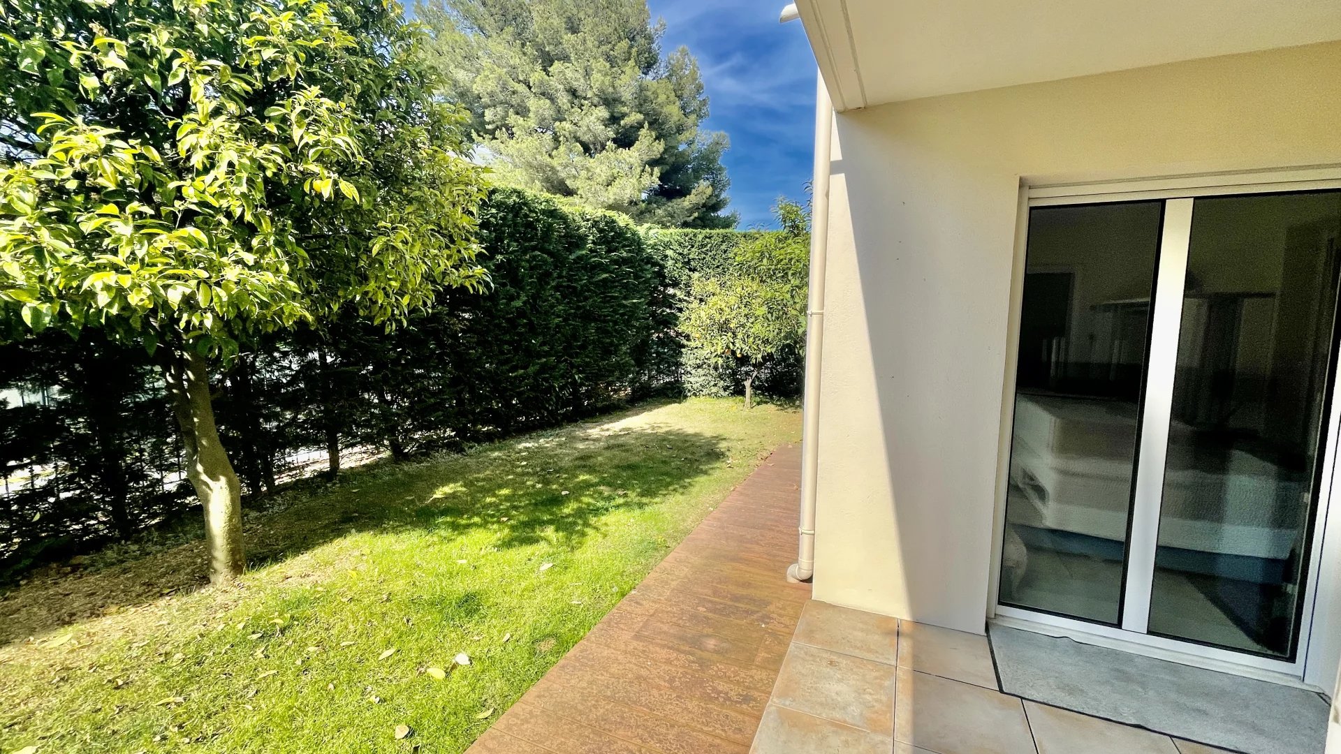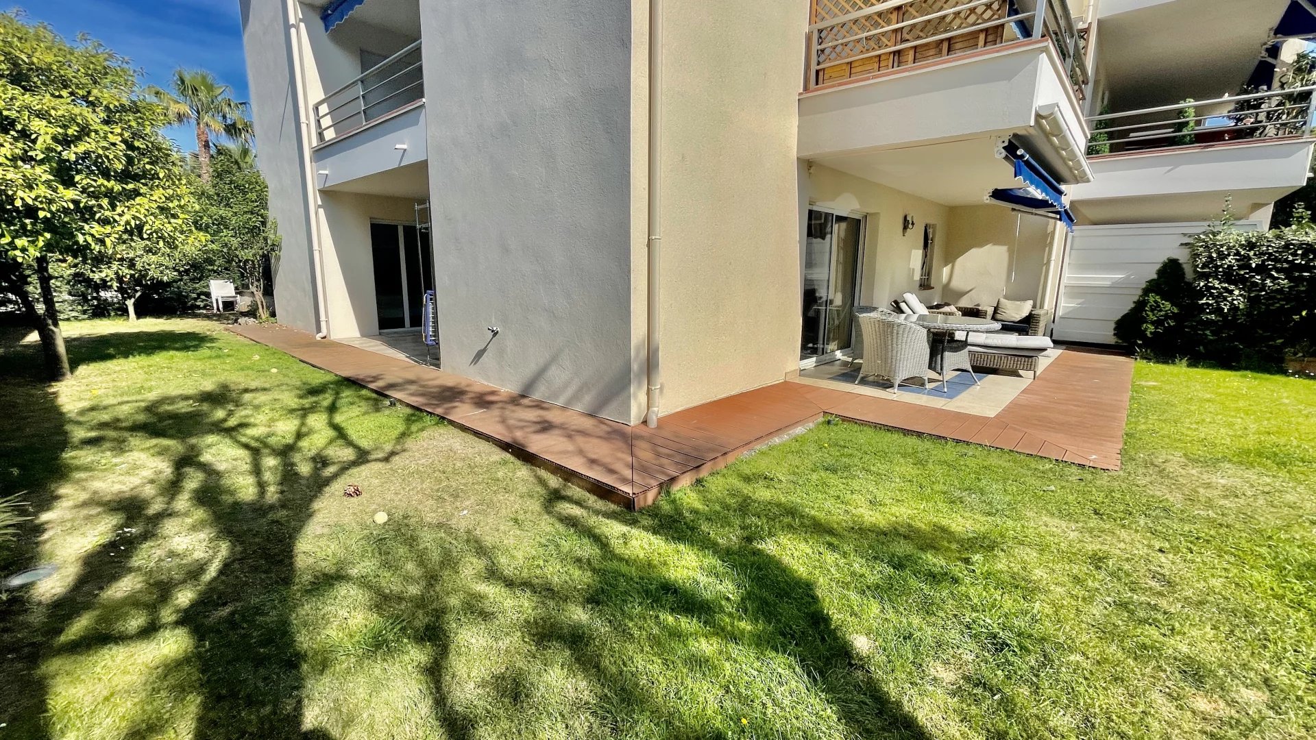 A l'extérieur, l’appartement possède un jardin privatif de 150M2 environ à larges parcelles paysagé ,arboré clôturé offrant une belle exposition Sud Ouest le tout dans une résidence sécurisée avec parc et piscine.