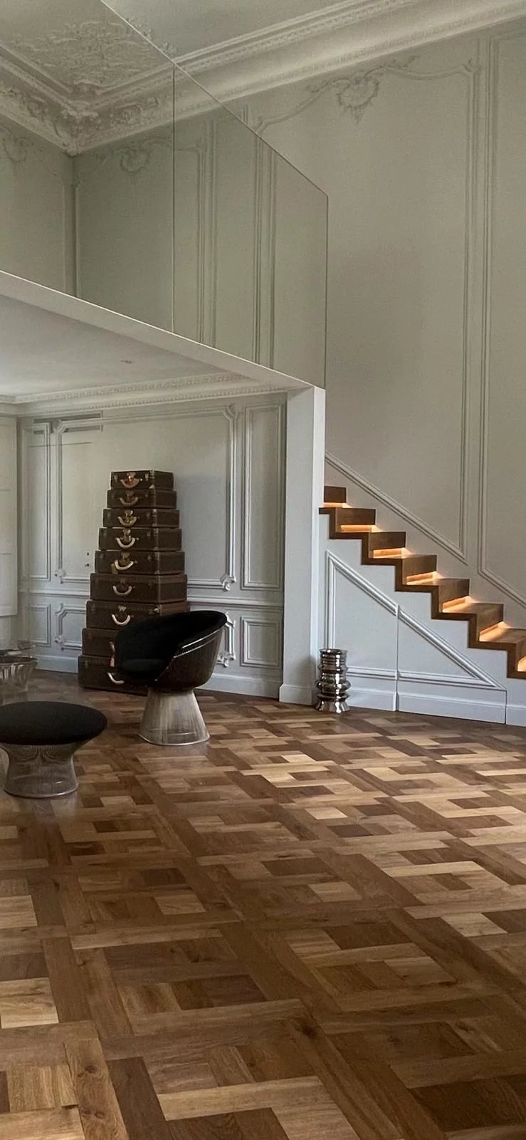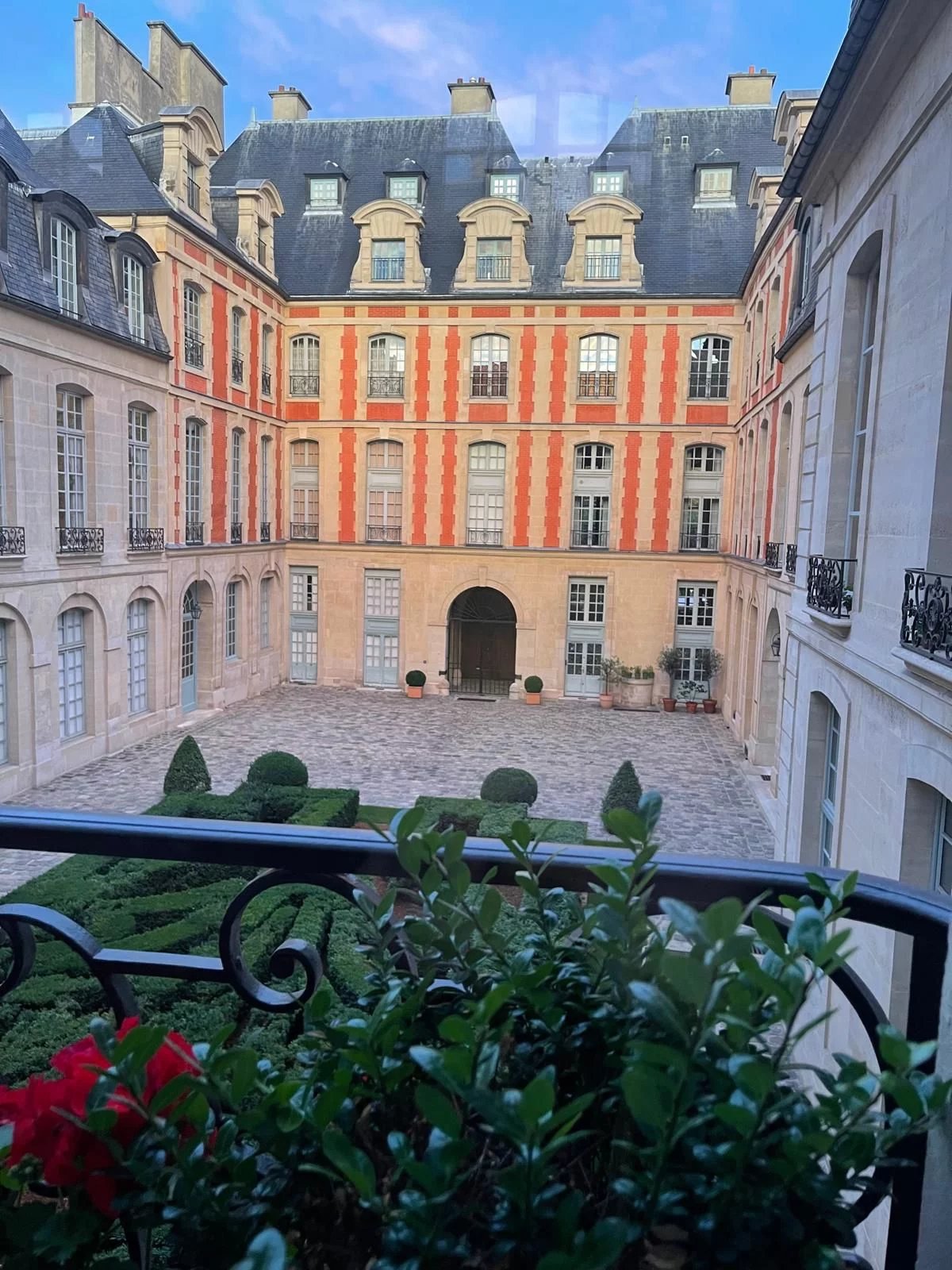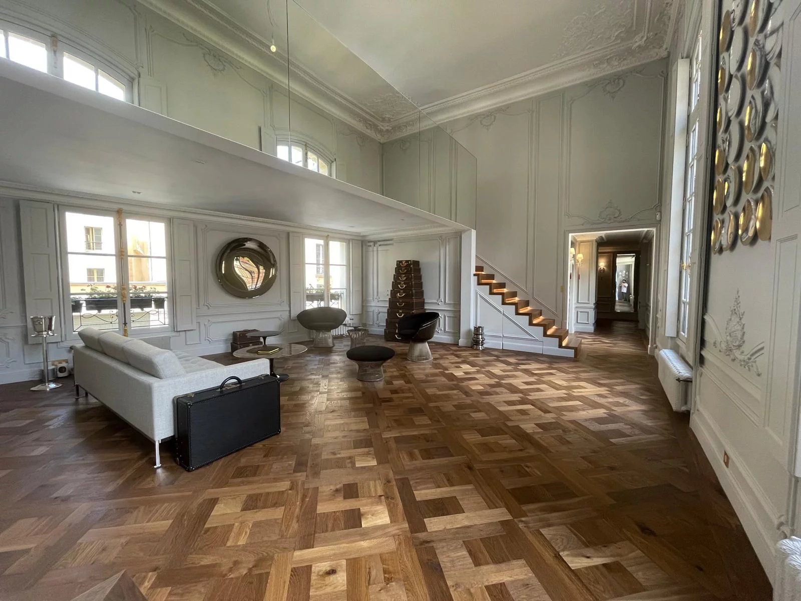 Place des Vosges, donnant sur la cour de l'hôtel de Rohan, magnifique appartement traversant entièrement rénové par des artisans d'art (parquet à la Versailles, crémones, moulures) et équipé du confort le plus moderne. Entrée, salon avec cheminée et 5,60 m de hauteur sous plafond. Un petit salon en mezzanine, deux suites (salle de bains en marbre, toilettes, nombreux placards), une cuisine séparée moderne et équipée. Une cave complète ce bien.