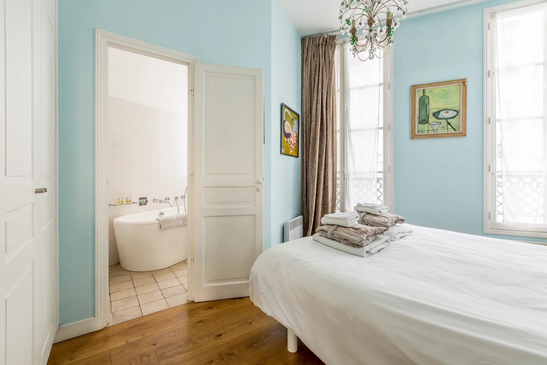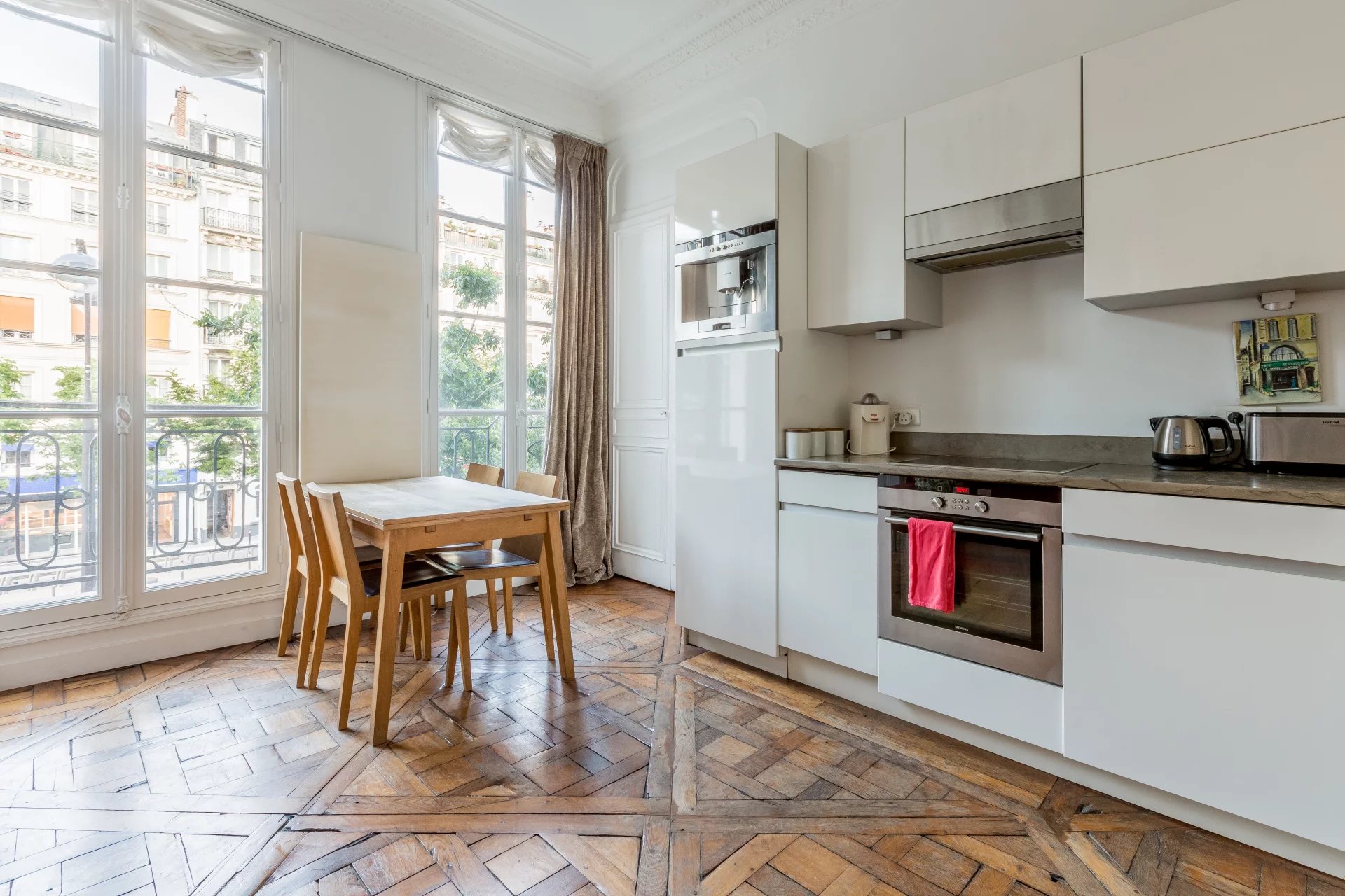 Situé au deuxième étage dans un bel immeuble ancien du Marais, ce superbe appartement actuellement configuré en trois pièces offre un excellent agencement avec la configuration recherchée de deux chambres disposant soit d'une salle d'eau avec toilette (sanibroyeur) soit d'une salle de bains avec toilette. La cuisine dinatoire dispose de deux grandes fenêtres à double vitrage et d'un balcon donnant sur un large boulevard, tandis qu'une des deux chambres donne sur une rue secondaire conduisant au coeur du Marais. Ce bien a conservé tous ses atouts du passé, il est doté d'un très beau parquet Versailles, d'une cheminée décorative, de hauts plafonds ornés, de superbes reliefs muraux et de grands miroirs. Possibilités de le transformer en un grand deux pièces avec espace dinatoire, salon, bureau et grande chambre avec sa salle de bains et ses toilettes.