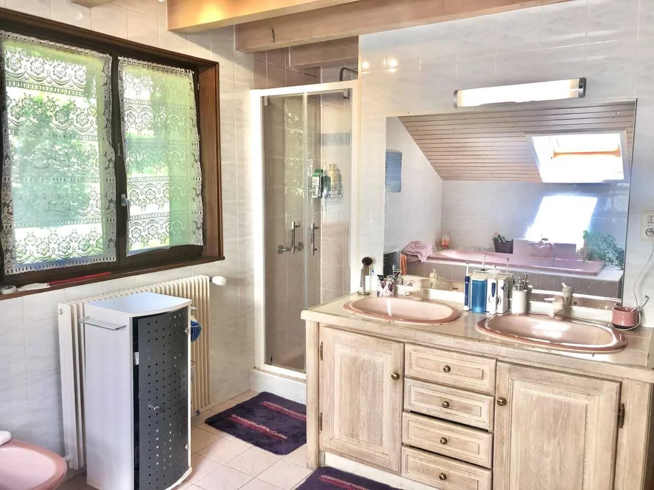 LUCINGES – Dans quartier calme, résidentiel et recherché, à proximité de toutes commodités (commerces, écoles) et douane venez découvrir cette spacieuse maison indépendante de 160 m². Cette villa d’architecte est implantée sur un terrain clos et arboré de 7 ares 73, elle bénéficie d’une jolie vue sur le Salève et Aravis. Cette jolie demeure des années 1988 est composée sur trois niveaux, l’espace et le volume ont été mis en valeur. Vous y trouverez en rez-de-chaussée : Une entrée, une spacieuse pièce de vie (double salon / salle à manger) avec cheminée donnant sur terrasse, une cuisine équipée indépendante, une chambre avec douche et un WC visiteur avec lave mains. Le premier étage est composé d’un pallier qui dessert 4 chambres dont deux donnant sur balcon bénéficiant d’une jolie vue, une spacieuse salle de bain avec douche et baignoire et un WC séparé. A votre disposition également une piscine (9m X 4.5m) un sous-sol, un garage avec buanderie, un cabanon de jardin. Vous pourrez garer plusieurs voitures dans la cour. De belles prestations à découvrir rapidement. (Panneaux solaires, tout à l’égout, chauffage au sol…) Prix : 590 000 € les honoraires sont à la charge du vendeur. Contact : Agent commercial Invest&Immo : Chloé Mozon 06 33 18 61 30.