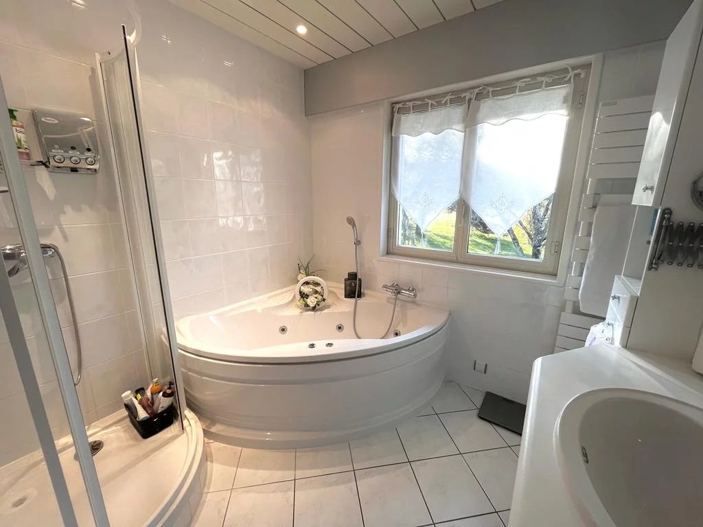 THONON LES BAINS – EXCLUSIVITE AGENCE - Située sur les hauteurs de THONON LES BAINS, dans un quartier calme et résidentiel, venez découvrir cette jolie villa d’architecte d'environ 300 m² utiles. Implantée sur un terrain de 1 802 m², dans un cadre verdoyant, elle bénéficie d’une vue panoramique sur le lac. Cette jolie demeure baignée de lumière est composée sur deux niveaux, l’espace et le volume ont été mis en valeur. La propriété comprend : -Une résidence principale de 125m² habitables ainsi qu’un sous-sol. -Deux studios avec entrée indépendante et terrasse. -Un appartement de type F2 avec entrée indépendante. -Un garage de 50 m² transformable en appartement. La maison principale de plain-pied comprend une entrée avec placards, une cuisine équipée semi-ouverte sur une spacieuse et lumineuse pièce de vie avec cheminée donnant sur terrasse et jardin bénéficiant d’une magnifique vue sur le lac, le coin nuit est composé de trois chambres avec placards, une salle de bain avec douche et baignoire ainsi qu’un WC séparé avec lave mains. En sous-sol vous y trouverez une buanderie avec douche, une chaufferie, une pièce et une cave. Les studios comprennent une cuisine équipée ouverte sur pièce de vie ainsi qu’une salle d’eau avec WC. L’appartement de type F2 comprend une cuisine équipée ouverte sur pièce de vie, une chambre et une salle de bain avec baignoire, douche et WC. Les studios et le T2 sont en très bon état. Possibilité de louer un studio environ 600€ / mois et le T2 environ 850 € / mois. De nombreuses places de parking sont à votre disposition ainsi qu’une table de ping pong et un boulodrome. Idéal résidence principale ou investisseurs. De très grands et beaux volumes ainsi que de belles prestations à découvrir. Possibilité également d'acquérir en plus un terrain de 800m² constructible et/ou un terrain agricole d'environ 2 500 m². Bien rare à la vente, à venir visiter rapidement ! Prix : 915 000 € les honoraires sont à la charge du vendeur. Contact : Agent commercial Invest&Immo : Chloé Mozon 06 33 18 61 30.