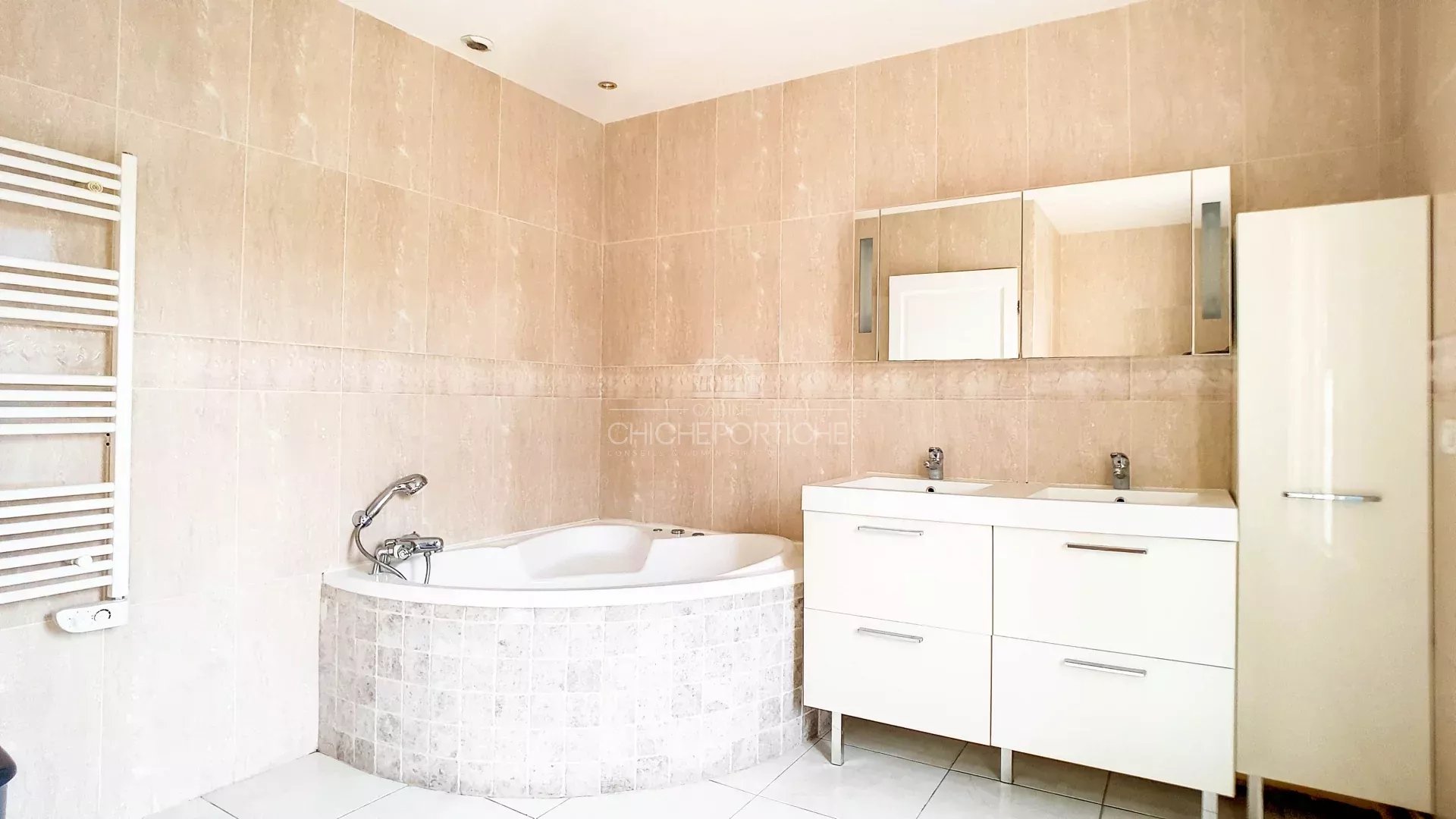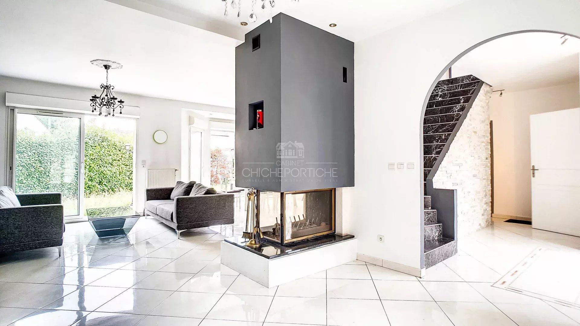 PROCHE LIGNE RER D ORANGIS BOIS DE L'EPINE - MAISON de 10 PIÈCES AVEC jardin de 640m2. A vendre Magnifique MAISON avec de belles prestations : venez découvrir cette maison de 10 pièces de 330 m², dans la ville de RIS-ORANGIS (91130) rue de Belfort. Maison réente de 2006. Sur 3 niveaux, elle dispose d'un sous-sol de 100m2 complétement aménageable au rez-de-chaussée une entrée avec une chambre comprenant une salle de douche, un salon double avec cheminée à insert qui permet de chauffer tout le premier étage, un petit salon, un grand salon, une salle à manger, une cuisine américaine équipée, une buanderie avec cuisine d'été, un WC séparé avec lave-main, au premier étage vous avez 4 chambres dont une avec salle de douche, un grand dégagement de 20m2, une salle de bain avec WC et baignoire jacuzzi.