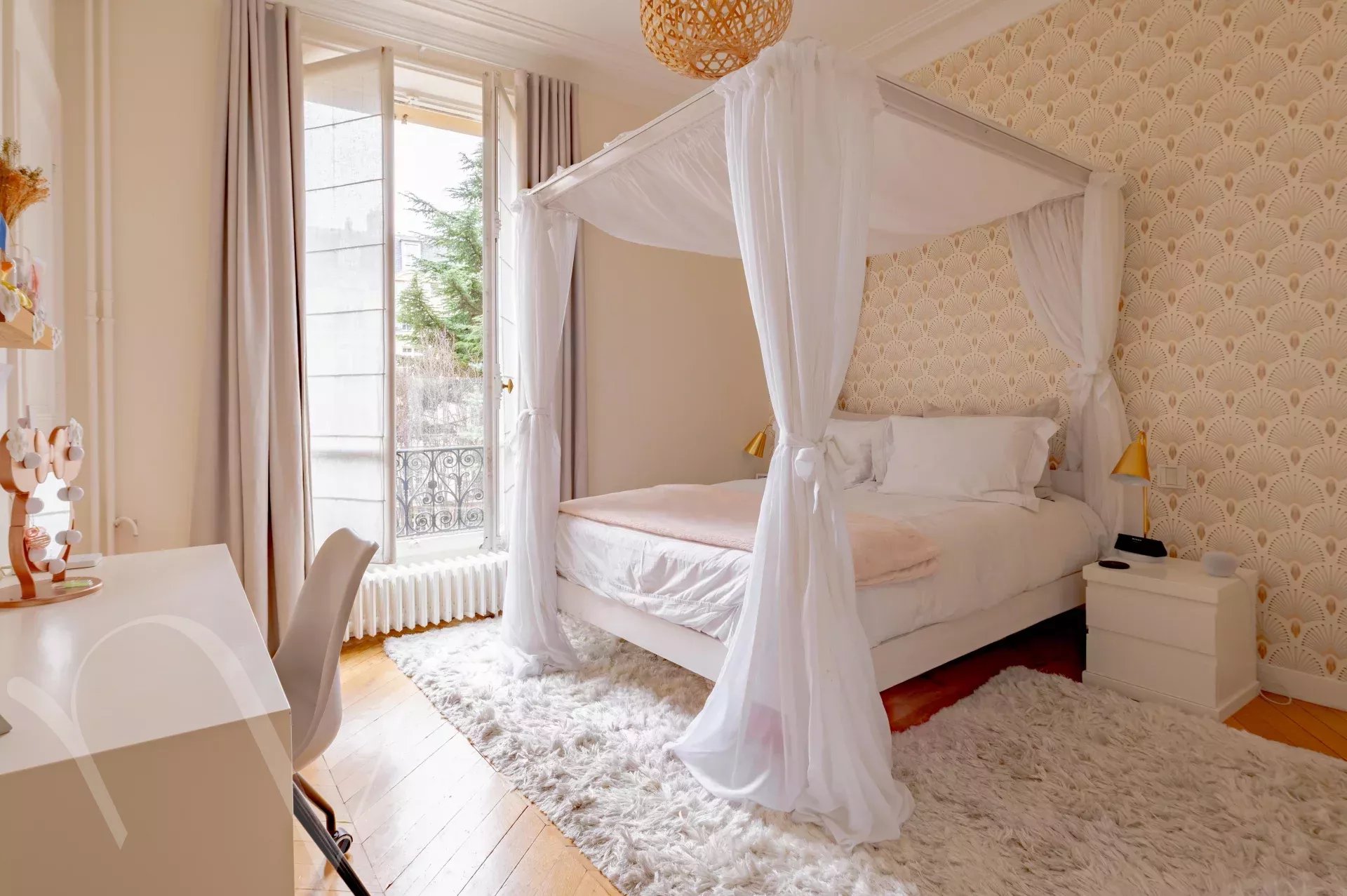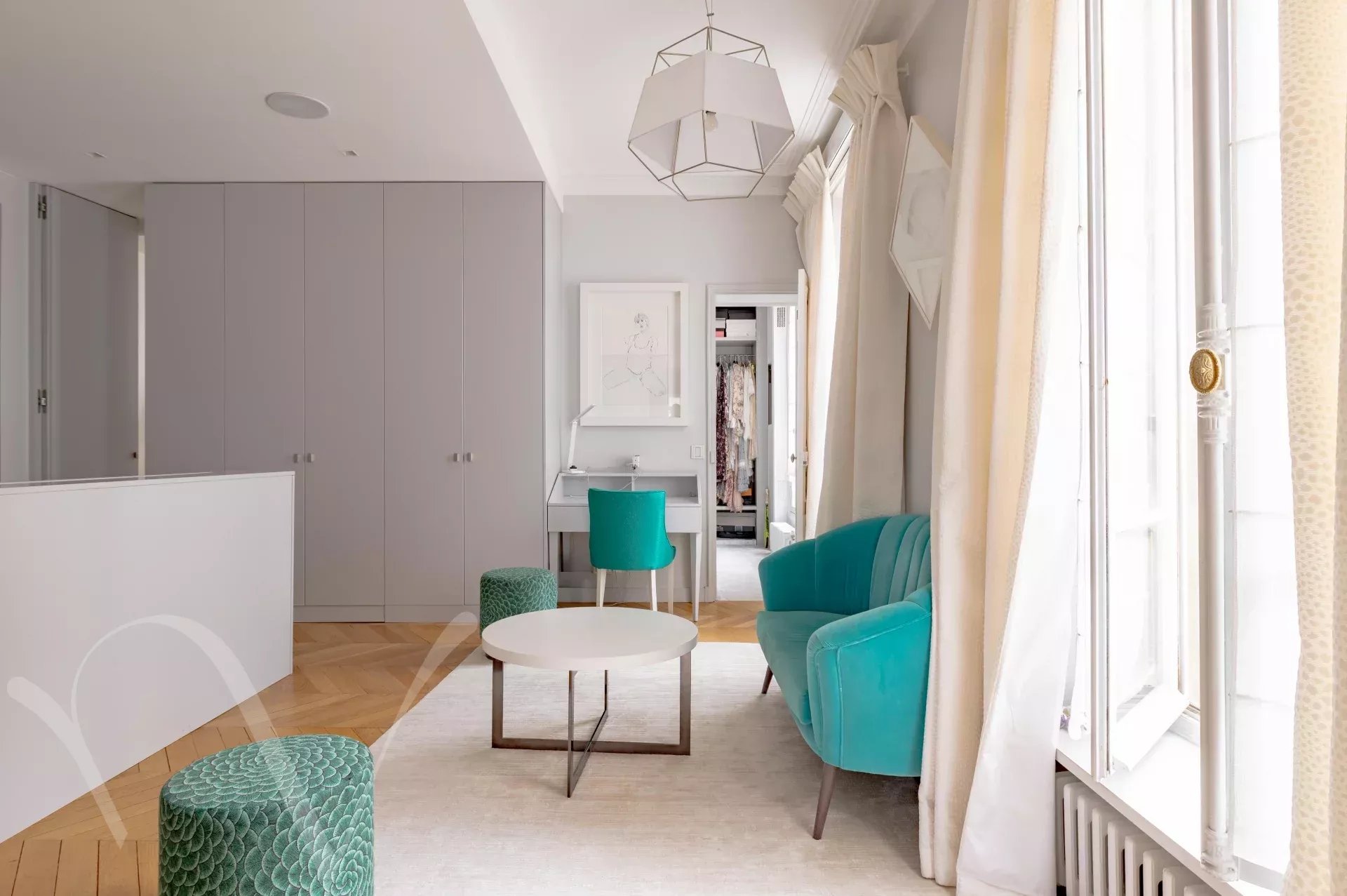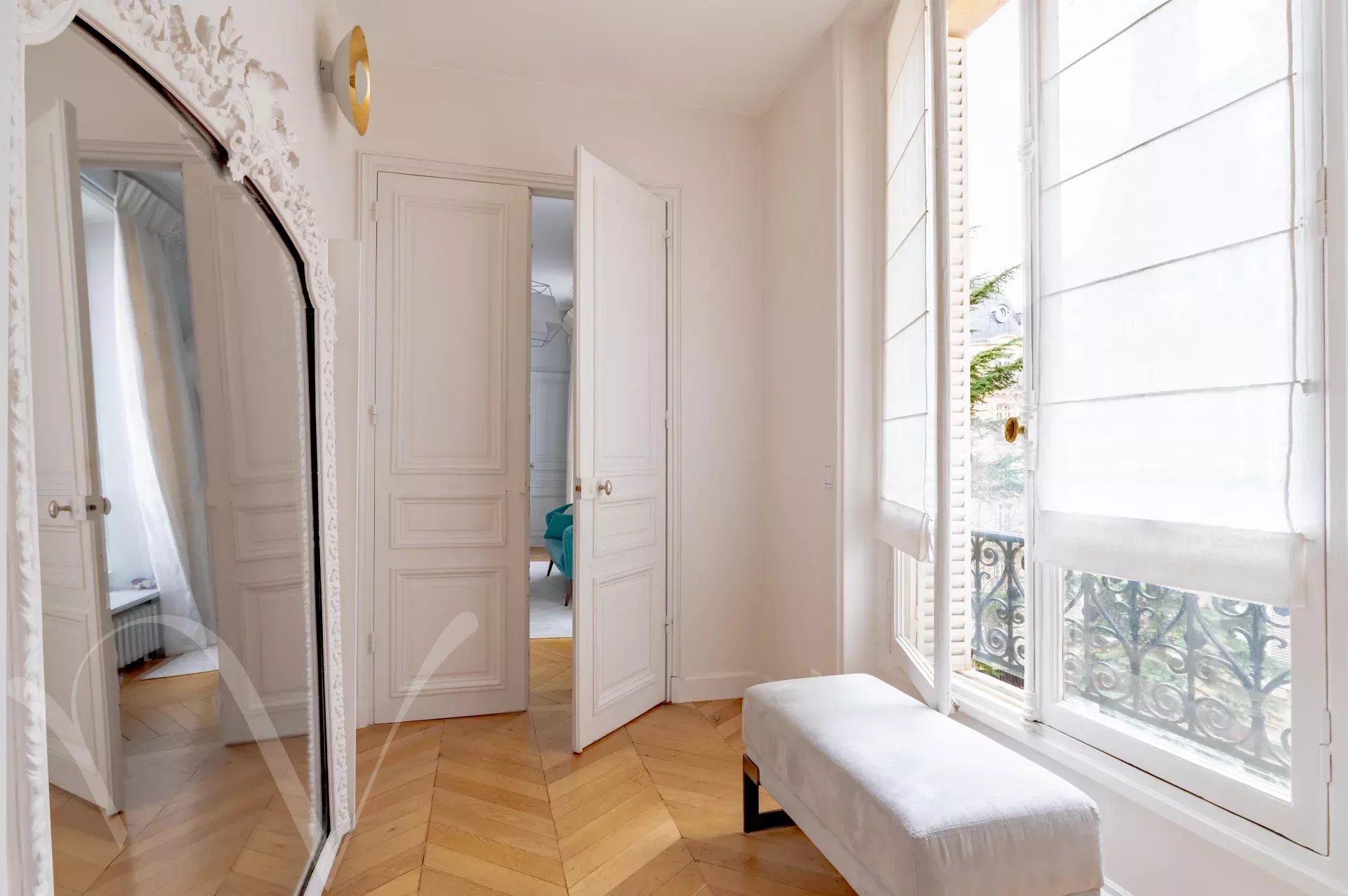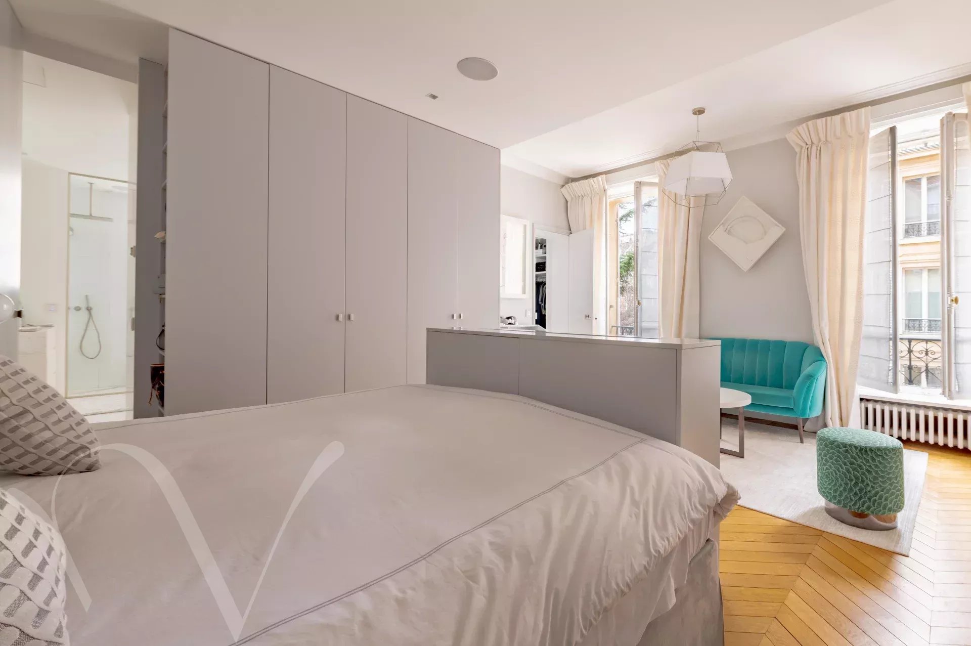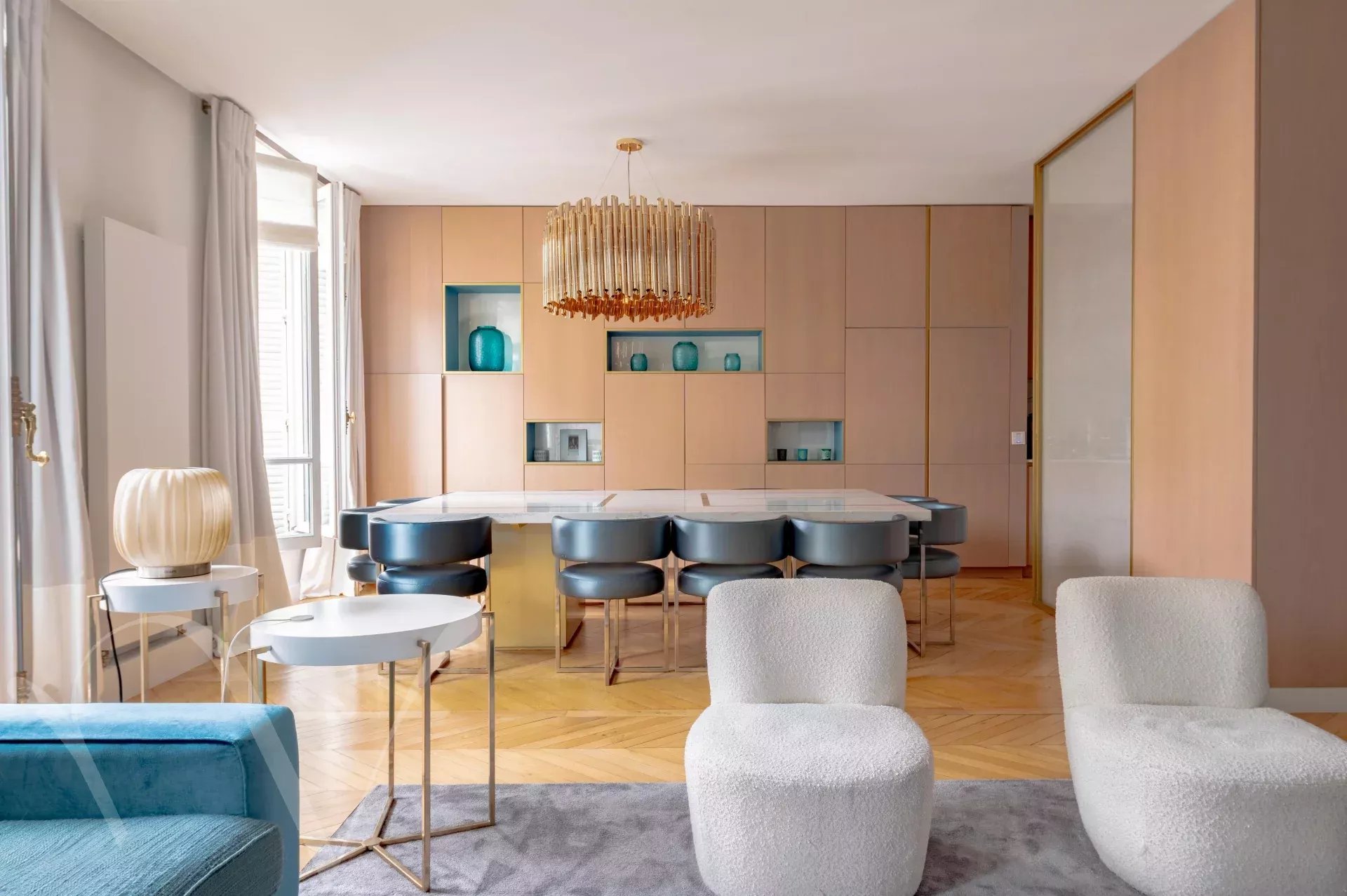 A deux pas du Parc Monceau, rue de Courcelles au 3e étage avec ascenseur d'un immeuble des années 1890, cet appartement de 196,14 m2 bénéficie d'une très belle rénovation. La domotique derniière génération gère ce lieu très agréable à vivre. Il comprend : Belle entrée avec dressing et WC invité, Une vaste pièce à vivre de 48,6m² avec balcon Cuisine entièrement équipée, Une master suite avec sa salle de bains, dressings Madame et Monsieur Une junior suite avec salle de bains et dressing Deux autres junior suites avec salle de douches et dressings attenants Une buanderie Parquet, cheminée et moulures - Porte blindée et sécurité (sous vidéo) Possibilité d'acquérir un emplacement de parking sous l'immeuble en sus du prix de l'appartement.