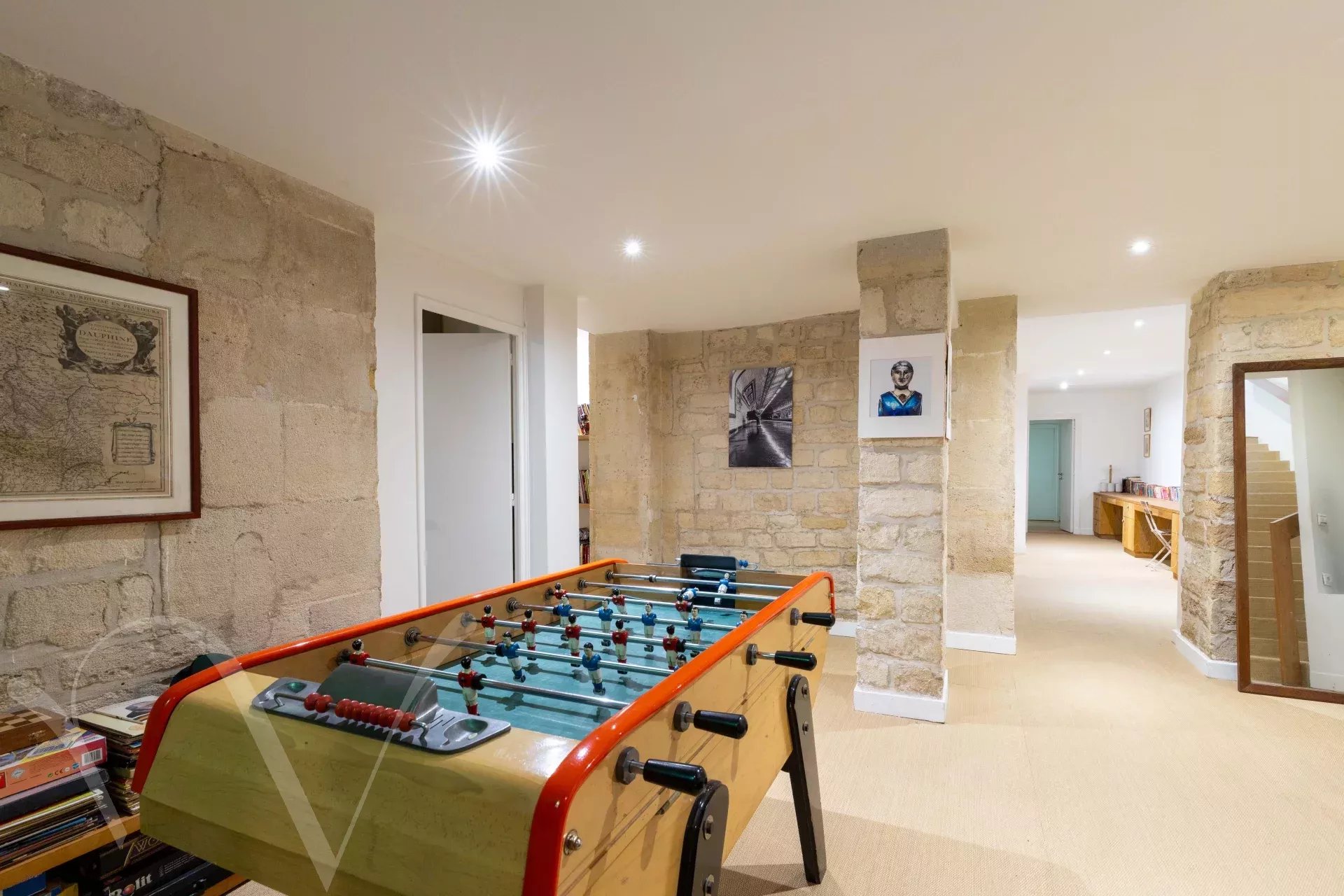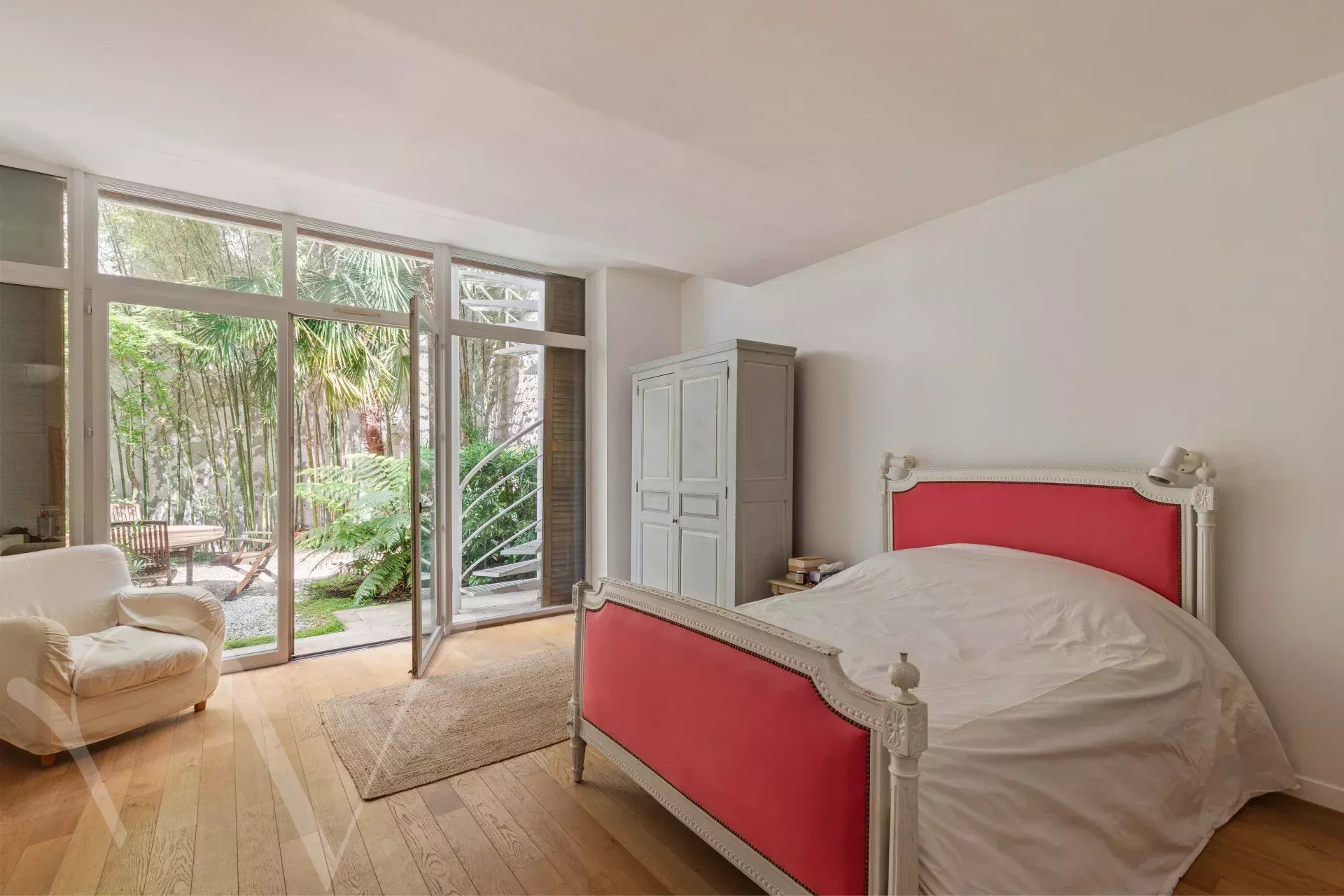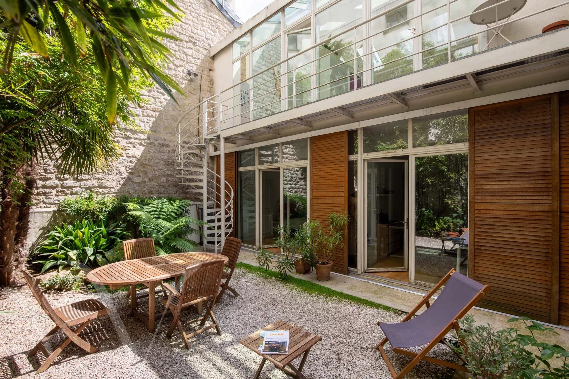 Au cœur de Saint Germain des Près, à deux pas de l’Eglise Saint Germain des Près, du Café de Flore et de la Seine, niché au fond d’une ravissante cour du XIXe siècle, rue des Saints Pères, dans une ancienne imprimerie devenue Galerie d’art, puis habitation, se trouve une maison avec jardin configurée en véritable loft de 310 m² sur deux niveaux, sans aucun vis-à-vis, au calme absolu.