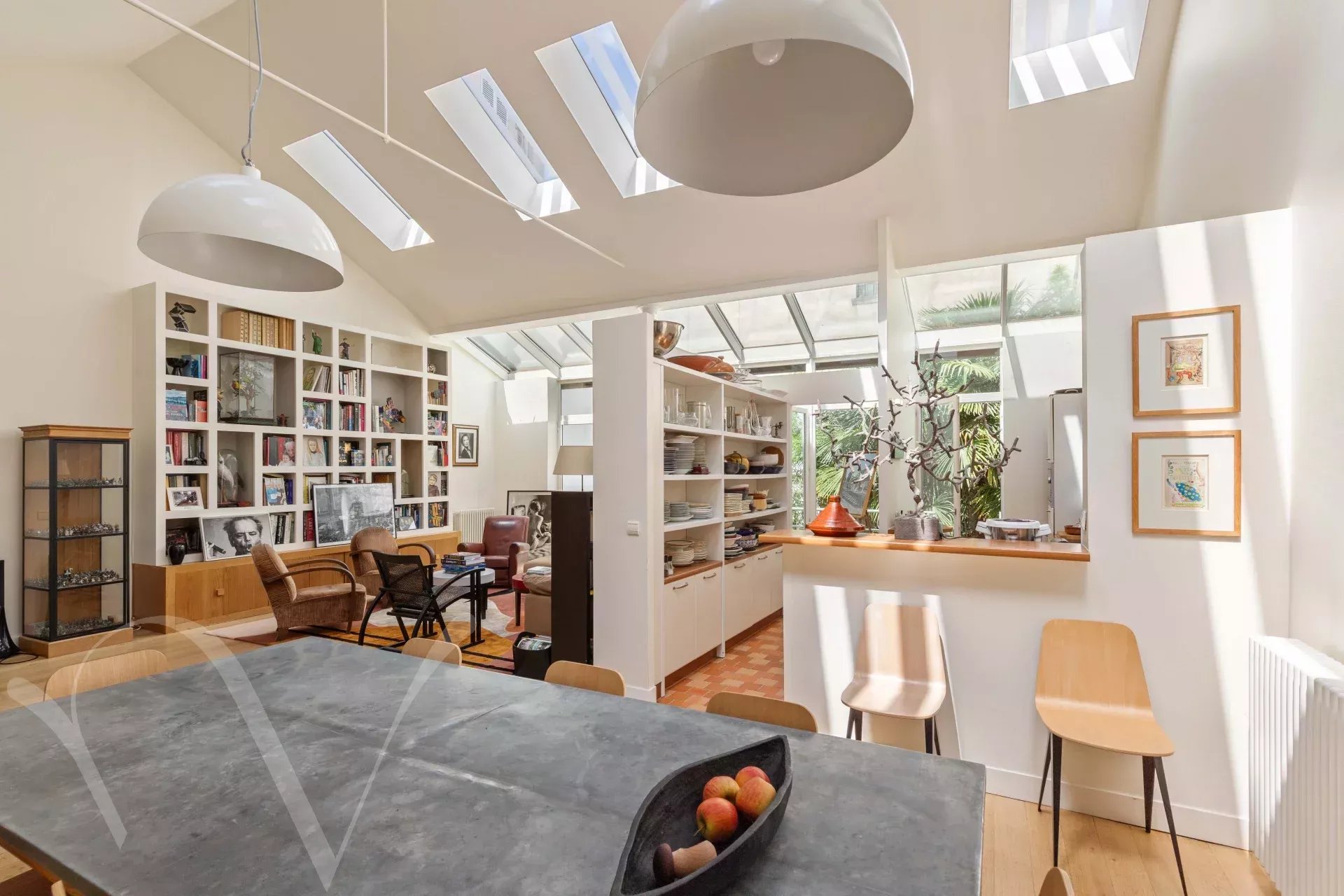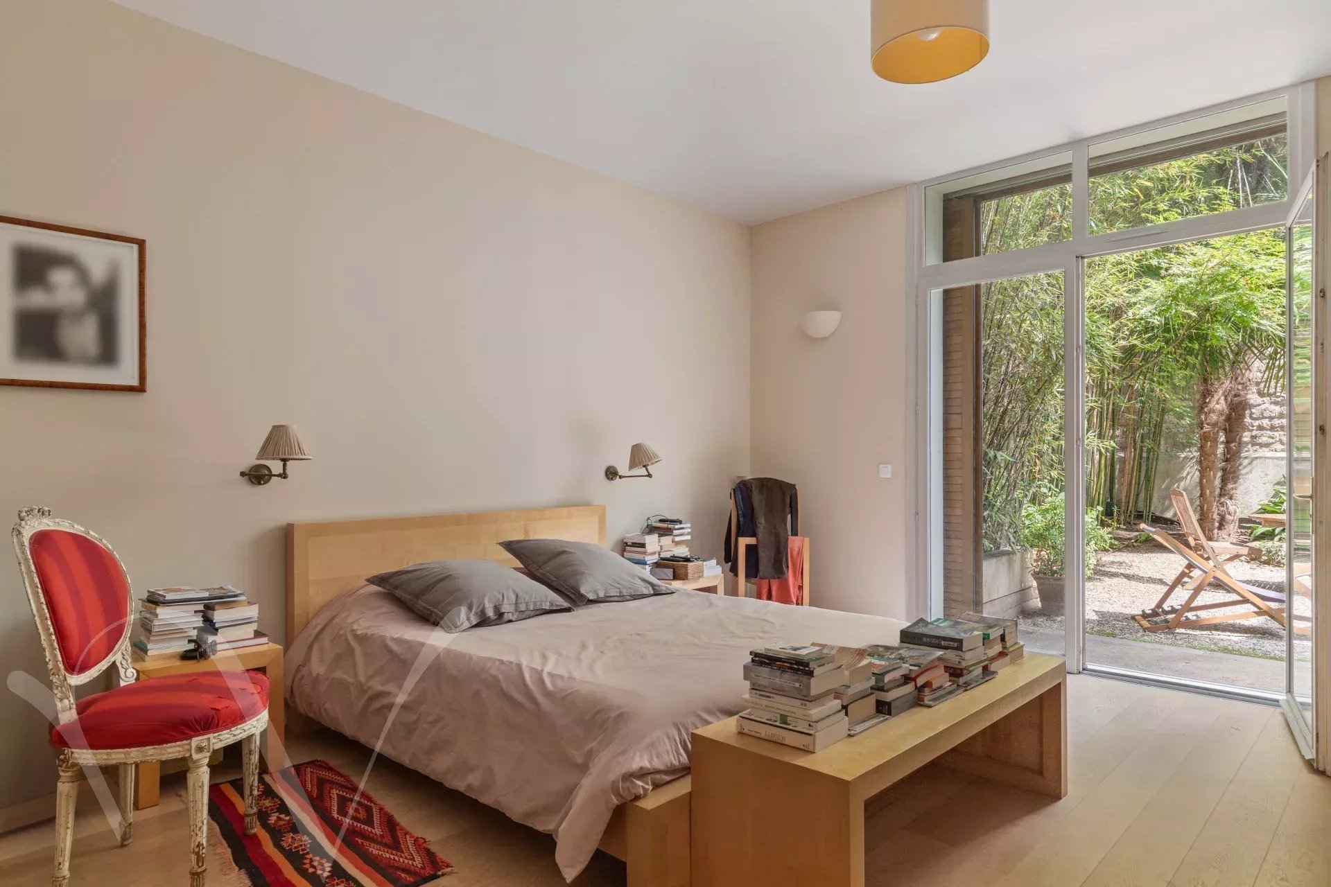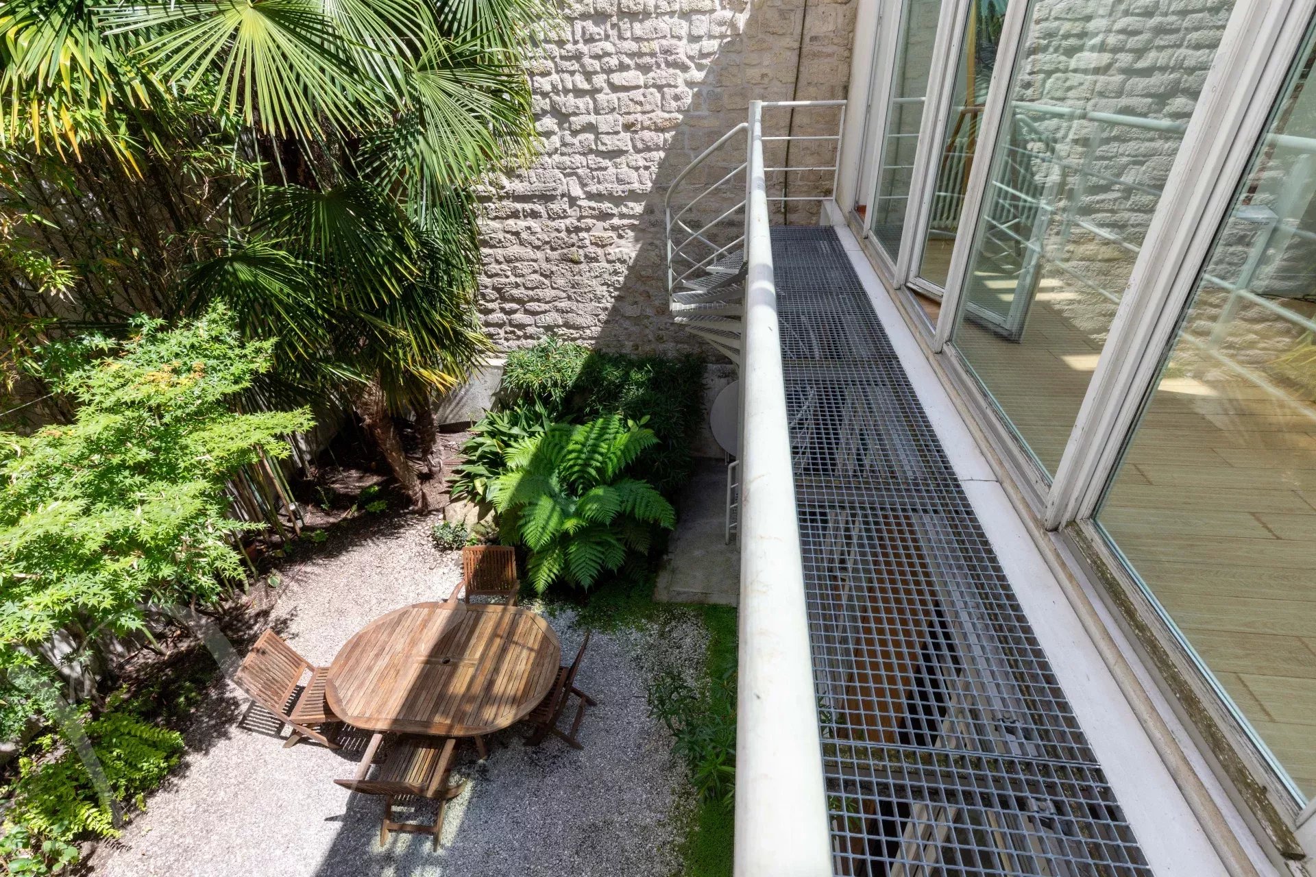 Ce loft unique est adossé au mur classé des Beaux-Arts. Il se dégage de ce lieux une sérénité et une confidentialité rares, baigné de lumière.