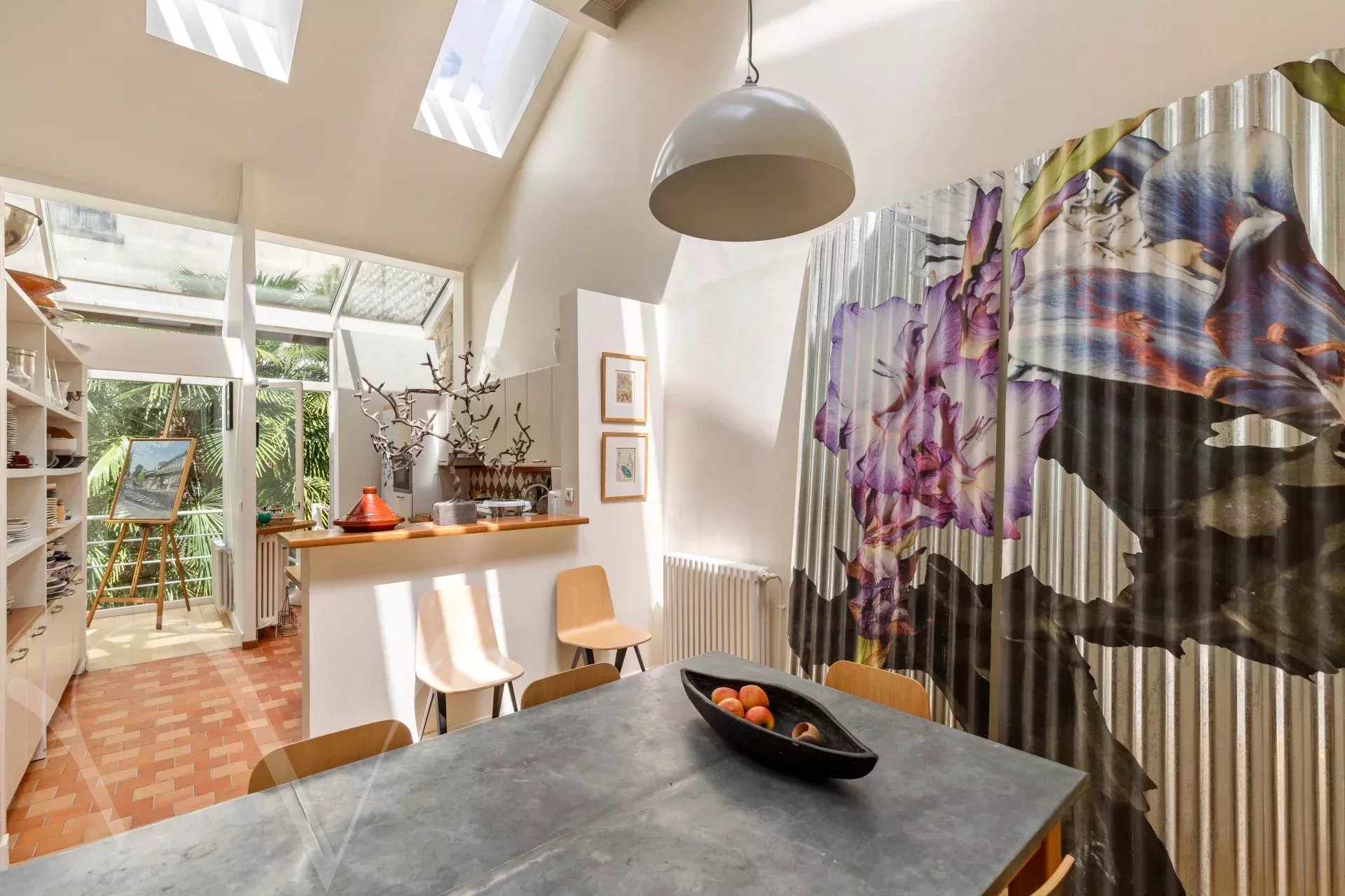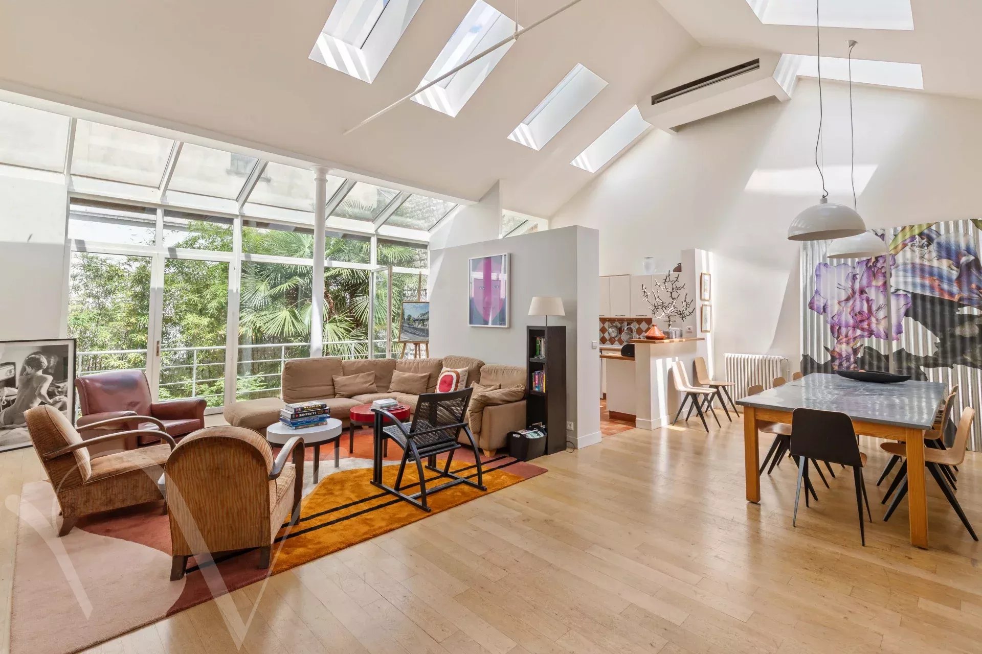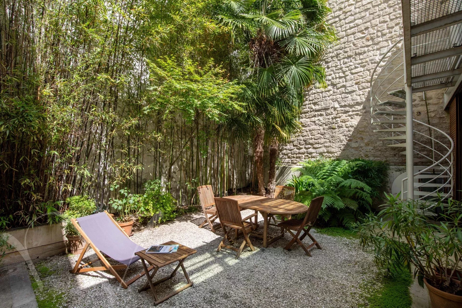 Ce loft unique est adossé au mur classé des Beaux-Arts. Il se dégage de ce lieux une sérénité et une confidentialité rares, baigné de lumière.