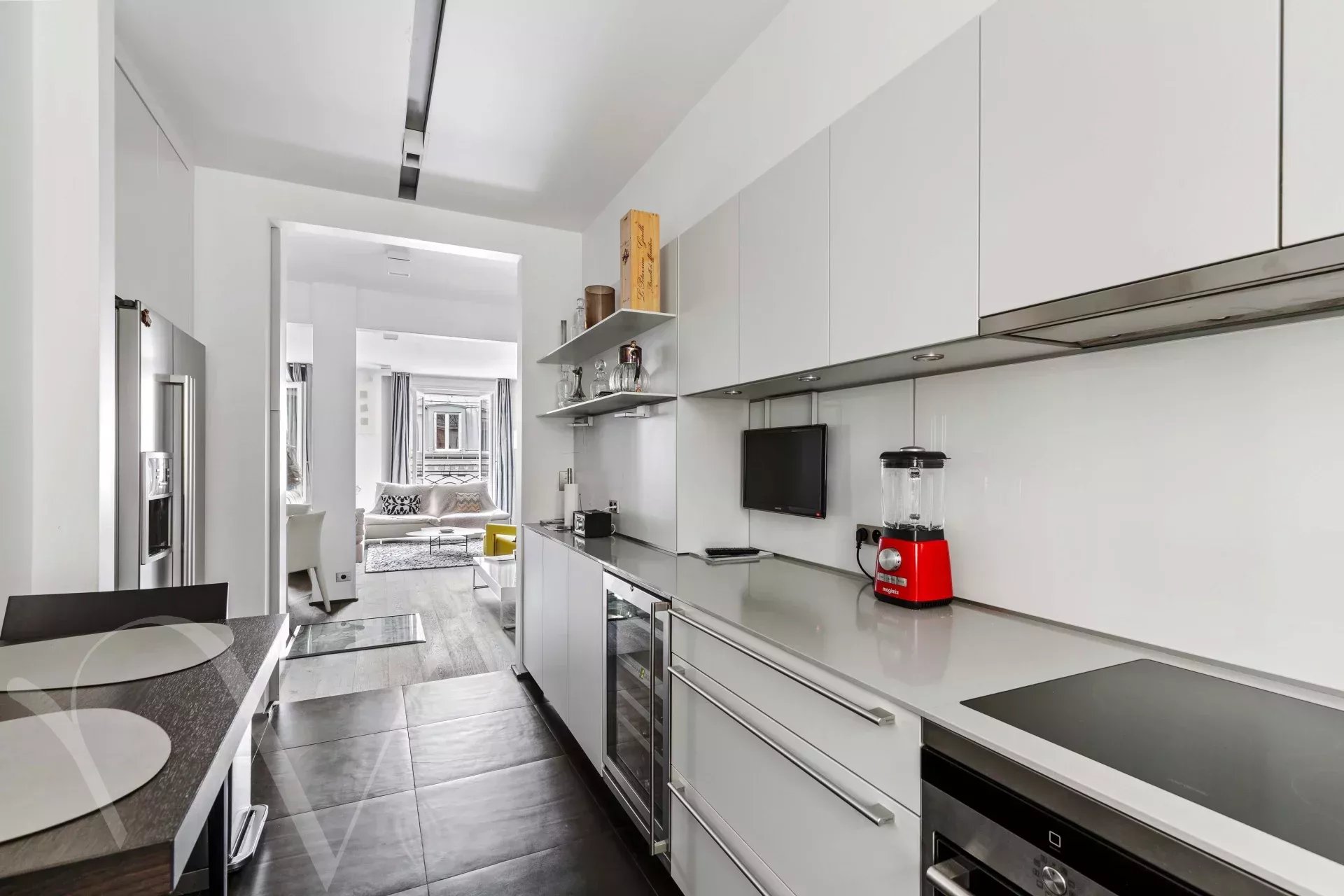A proximité quasi immédiate du Jardin du Luxembourg, appartement meublé, luxueusement rénové situé au cinquième étage dans un immeuble 1930 avec ascenseur composé d’une entrée avec placards, un beau séjour/salle à manger avec bibliothèque, une cuisine aménagée avec un coin repas, une chambre avec placards en suite avec une grande salle de bains et douche, toilettes séparés. une cave complète ce parfait pied à terre