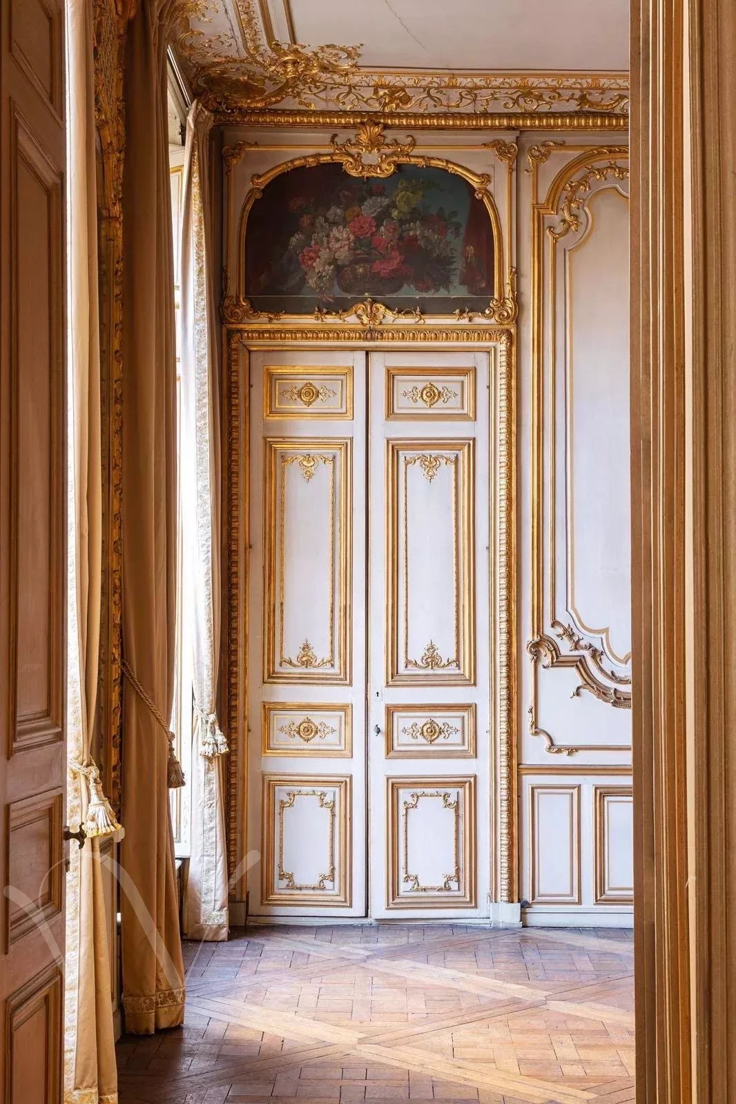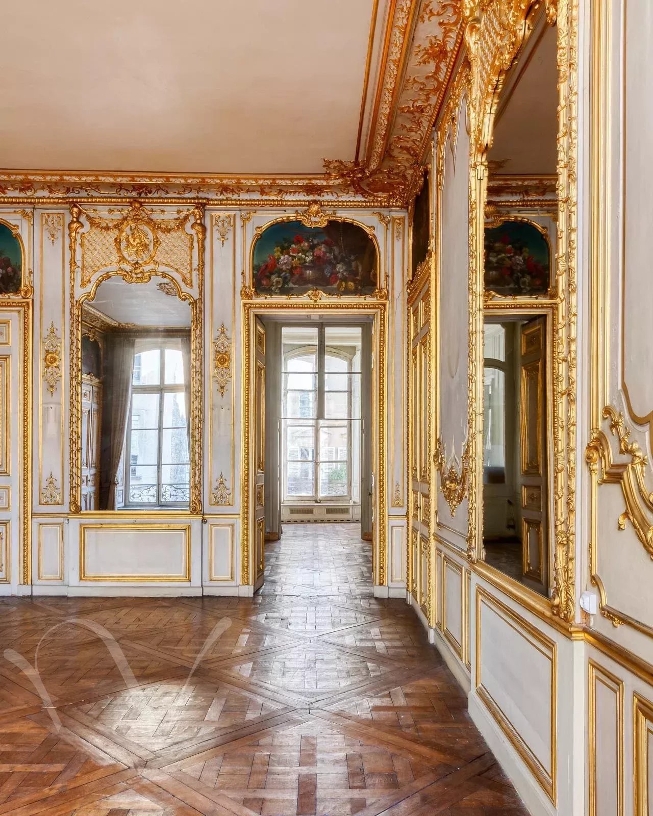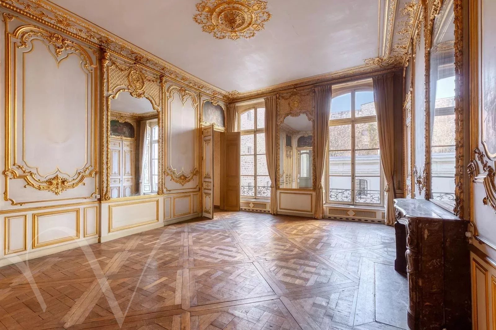 Hôtel Particulier édifié début du XVIIIe siècle, entre rue et cour. Il se distingue par son élégante façade sur rue. Il se compose d'un entresol et de 4 niveaux. Au dernier étage un atelier avec une vue superbe. Le rez-de-chaussée et l’entresol sont rythmés par trois arcades en plein cintre ornées de mascarons sculptés. Au premier étage, le grand salon conserve d’élégantes boiseries Louis XV, enrichies de peintures florales au-dessus des portes, de glaces encadrées de médaillons et de petits bustes féminins aux angles. Un boudoir aux boiseries Louis XVI complète cet étage, dont la disposition se retrouve à l’identique au niveau supérieur.