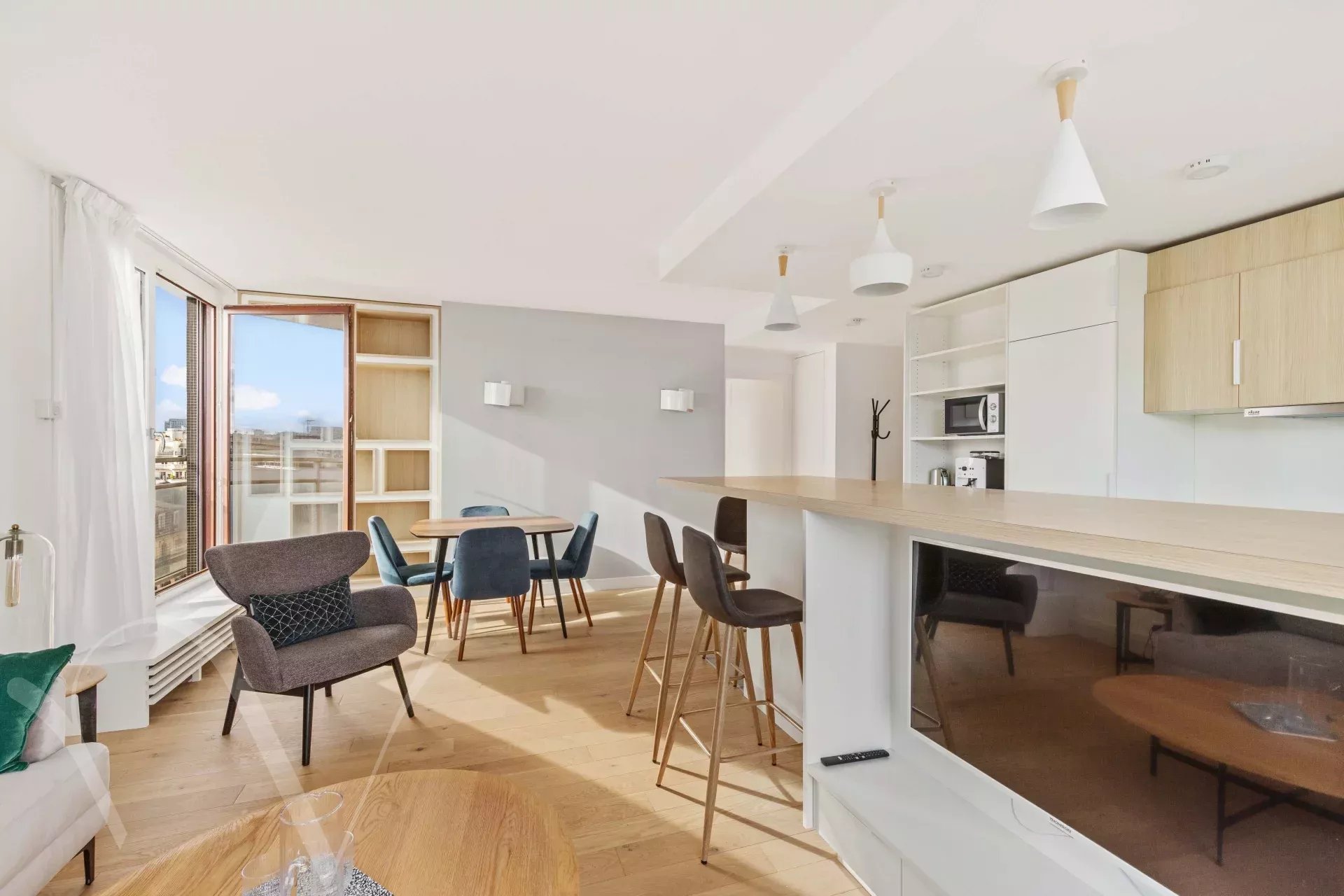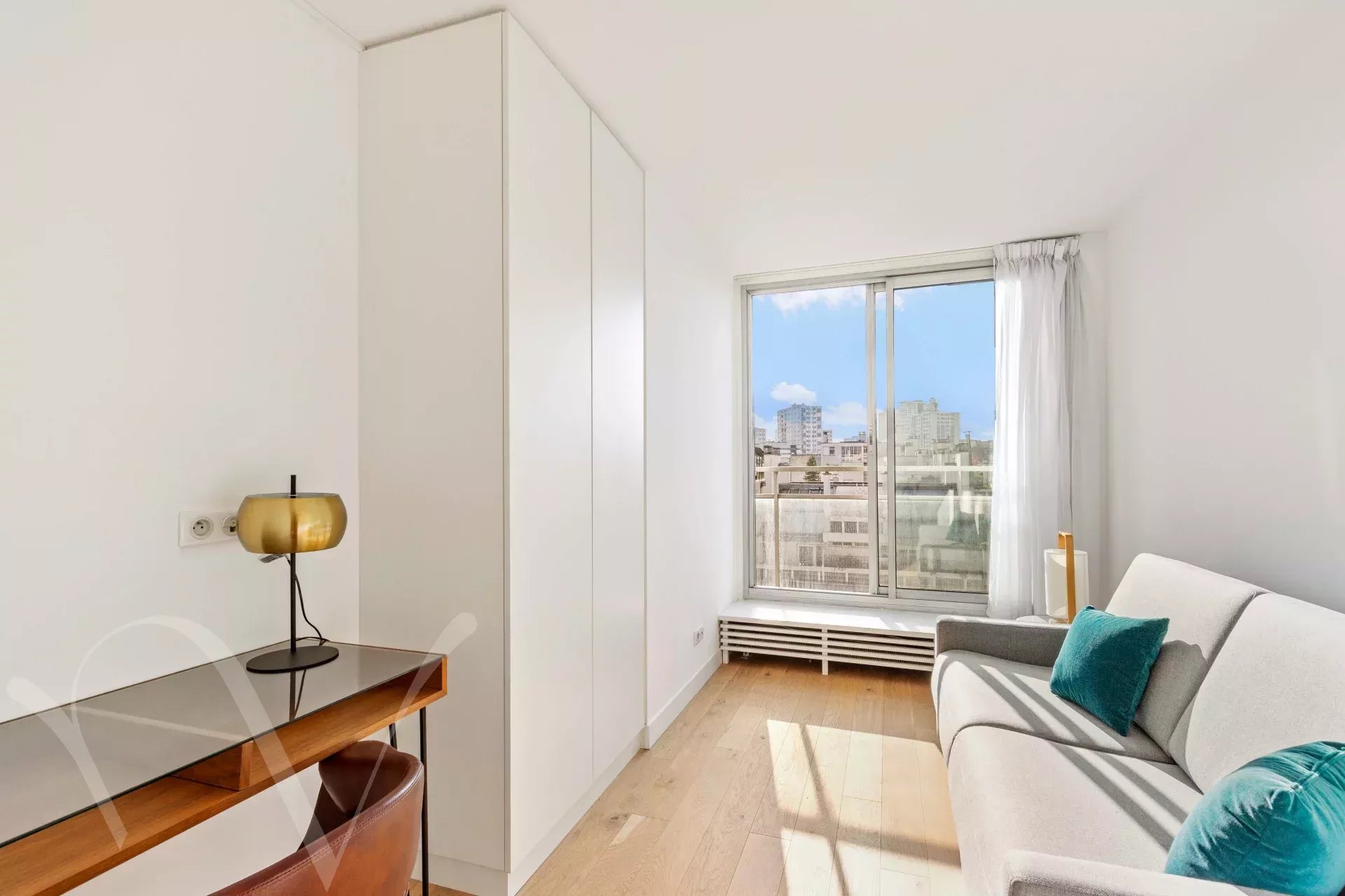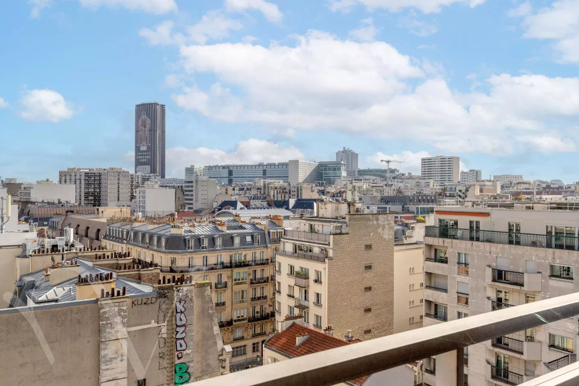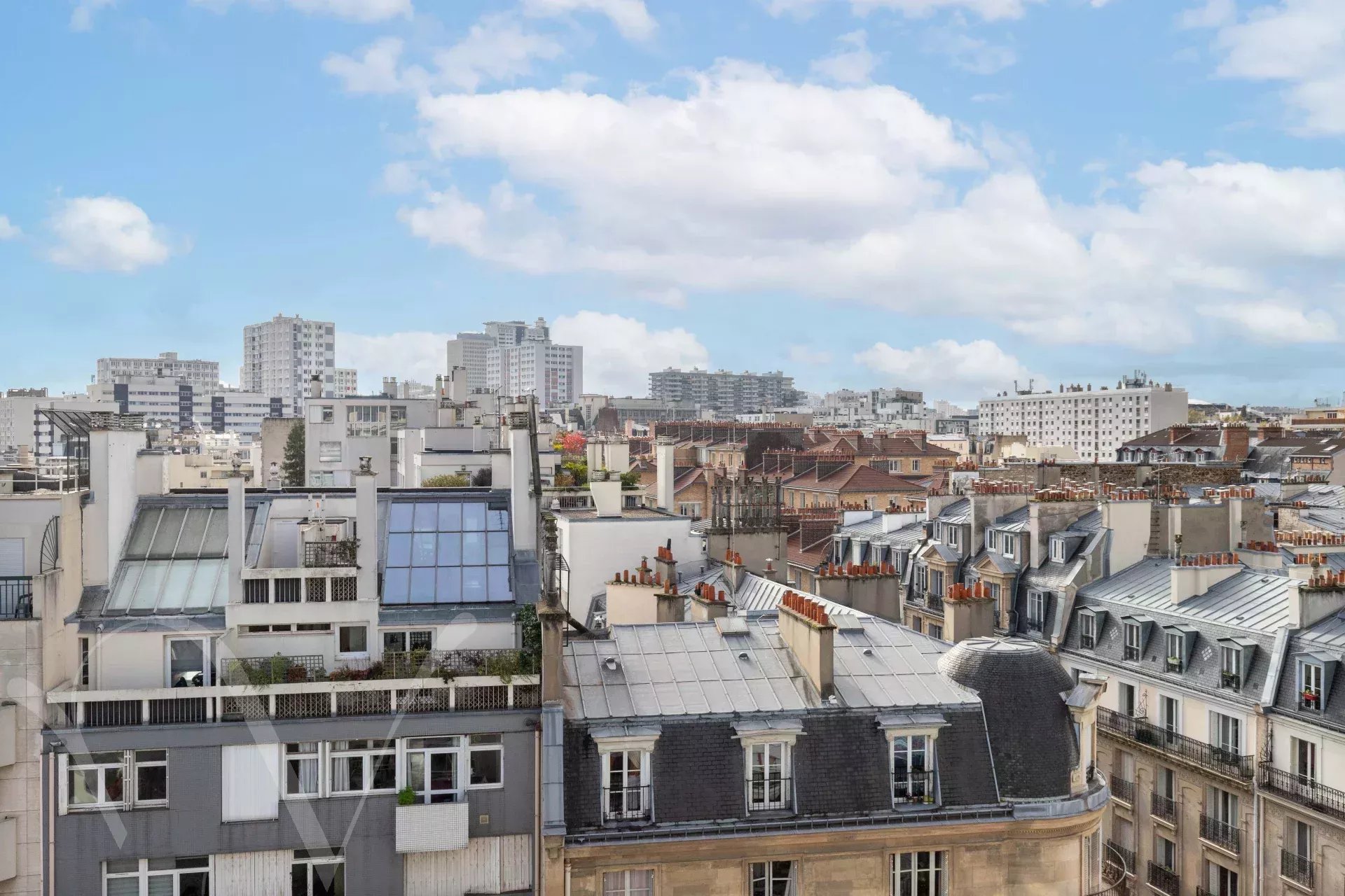Exclusivité, métro Volontaires. Au dixième et dernier étage d'un immeuble de 1972 avec ascenseur, entretenu par un gardien, cet appartement offre de superbes vues panoramiques sur les toits de Paris et de nombreux monuments, notamment la Tour Eiffel et les Invalides. L'appartement, très ensoleillé, comprend un salon / salle à manger avec cuisine ouverte, deux chambres, une salle de bain et toilettes indépendantes. A proximité de nombreux commerces et restaurants, bien desservi par les transports en commun.