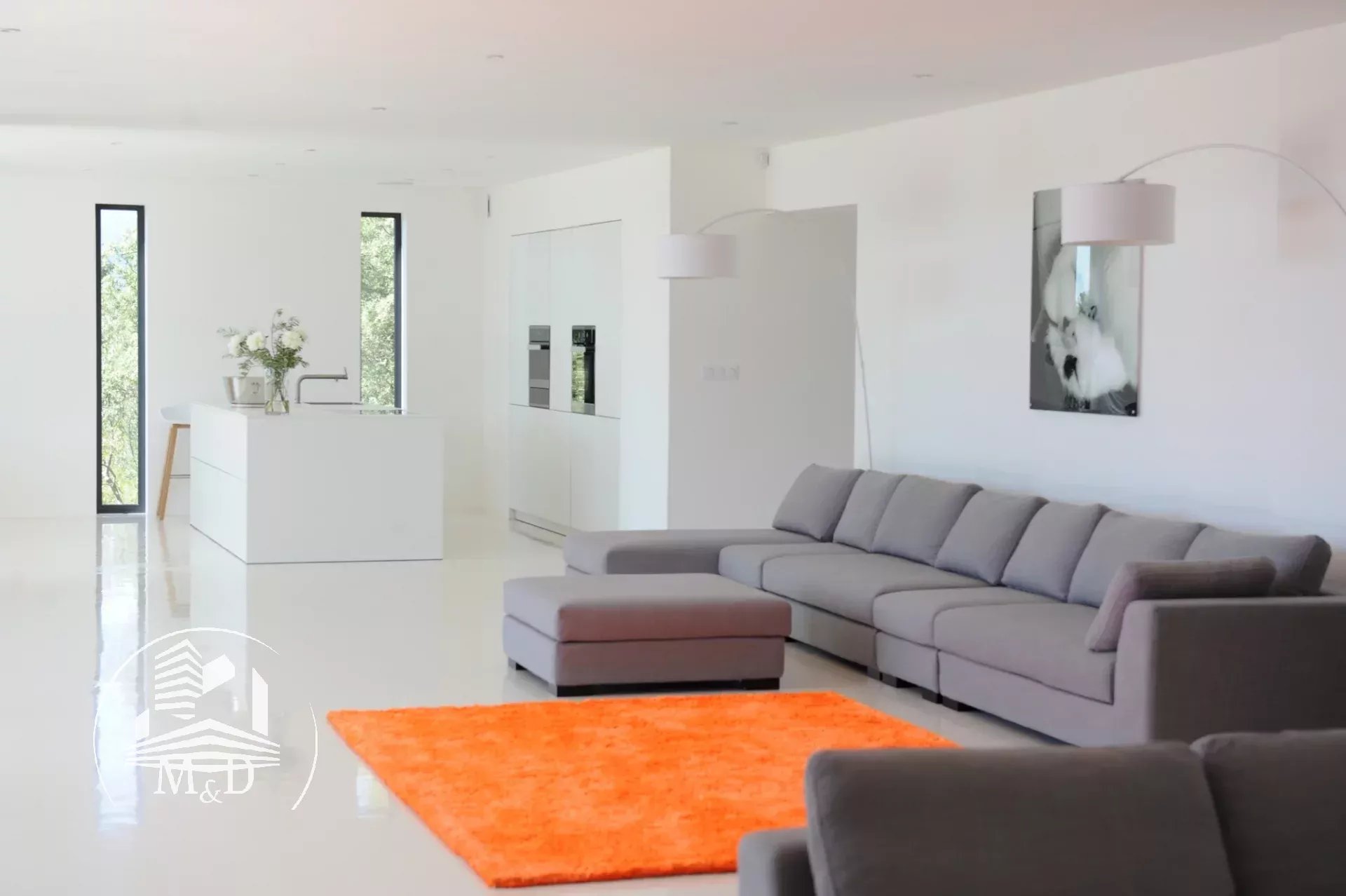 Construction sur mesure avec prestations de qualité : domotique, chauffage au sol avec pompe à chaleur, climatisation réversible, volets roulants électriques en alu, menuiseries en alu gris anthracite, piscine... Plus d'infos sur notre site.