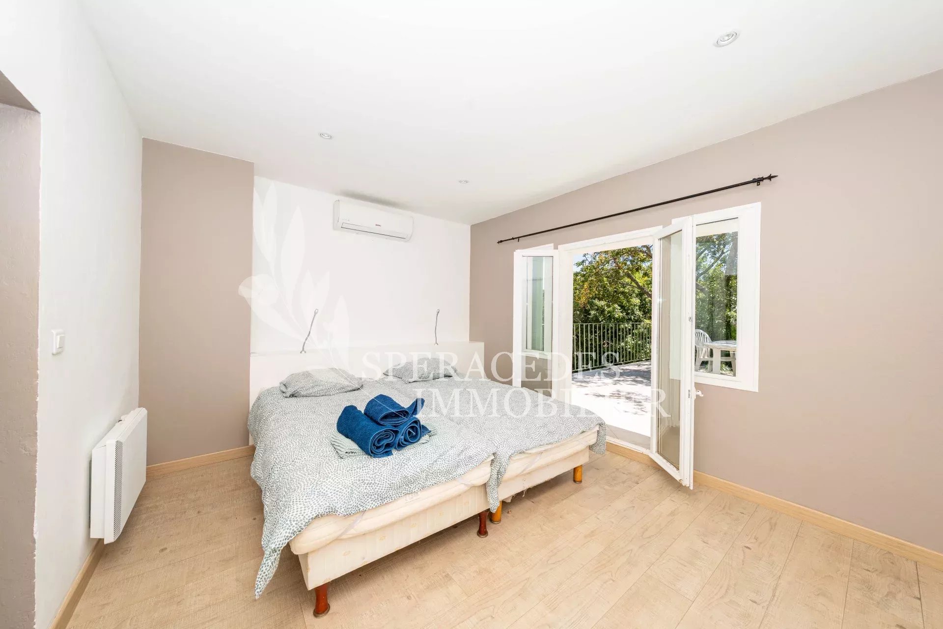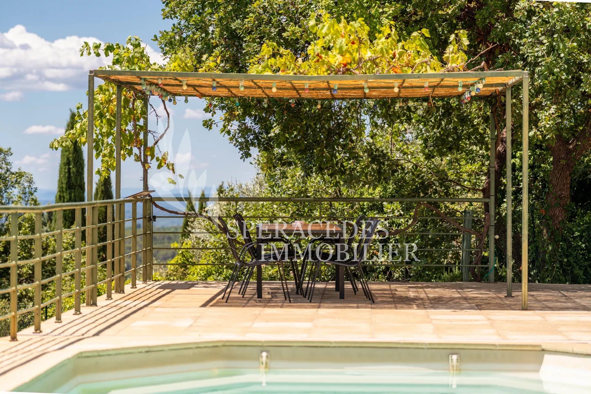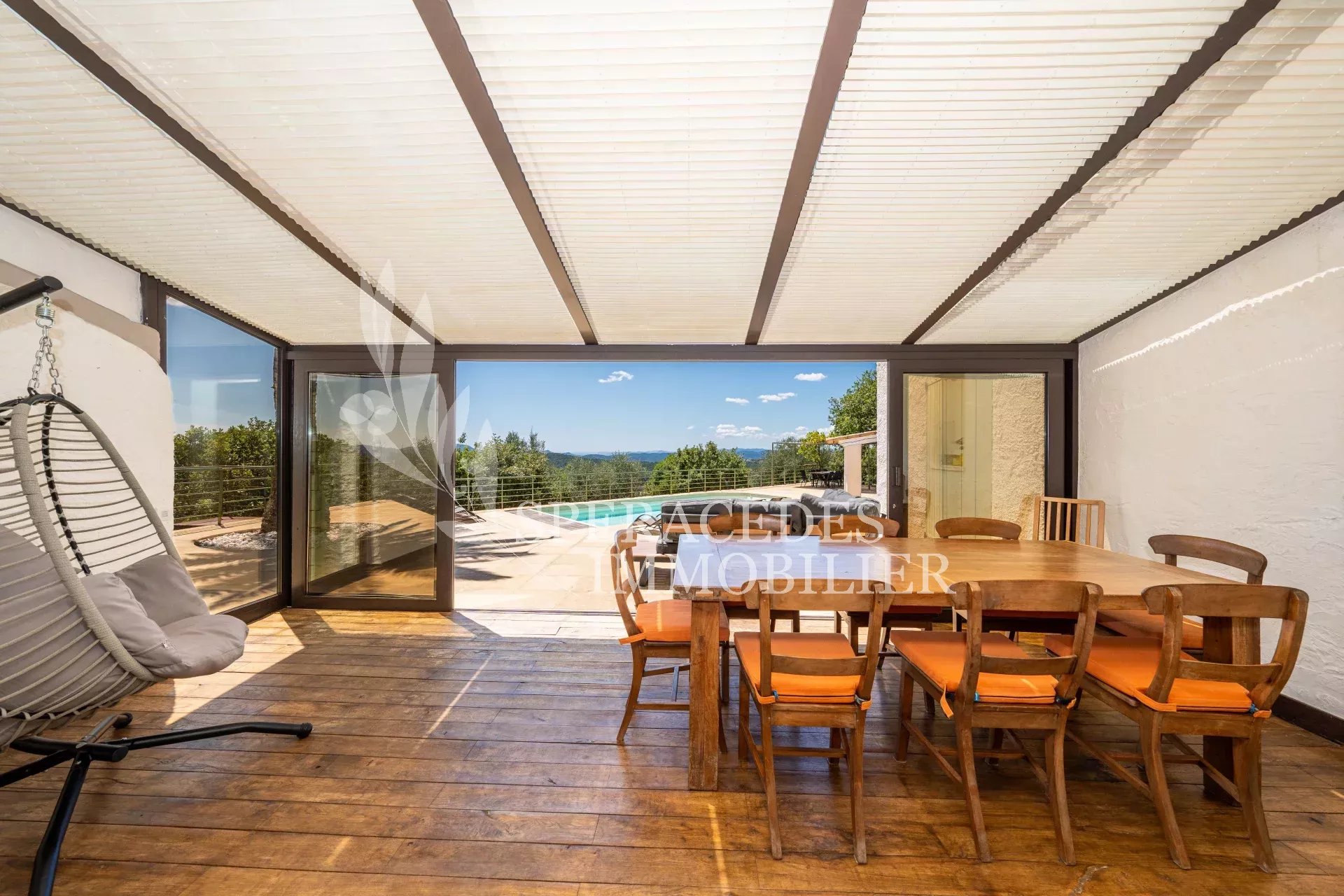 Saint-Cézaire-sur Siagne, en Exclusivité magnifique maison, édifiée sur un terrain plat d'environ 3 000m². Elle se situe dans un quartier calme et prisé à seulement quelques minutes du village. Une villa principale de plain-pied composée d’une entrée, un grand salon, salle à manger, une cuisine et deux chambres avec leur salle de bains respective. L’ensemble des pièces donne sur une magnifique terrasse exposée sud. En contrebas, une chambre indépendante, avec une grande salle de bains. Une dépendance proposant deux suites individuelles. (Idéal pour une chambre d’hôte ou du Airbnb). À l’extérieur, un espace piscine avec une vaste terrasse comprenant un pool house et une pergola, le tout offrant une superbe vue panoramique à 180° sur les collines ainsi qu’un bel aperçu mer. Pour compléter ce bien, une vaste allée arborée, plusieurs places de stationnement, un double garage, un atelier, une laverie et un terrain de pétanque Coup de cœur assuré pour cette propriété au calme absolu.