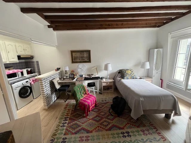 Studio refait à neuf située au 5 ème étage sur 6 étages, avec ascenseur, au calme total, vue dégagée. Il se compose : Pièce de vie avec poutres apparentes, cuisine équipée américaine, salle de douche, toilette séparée, très lumineuse. 8 mns à pied Arc de Triomphe et Champs Élysées. Charges : Copropriété, électricité et eau : 1 792,31€ / An compteur indépendant. Taxe foncière : 415€ / an. 2024