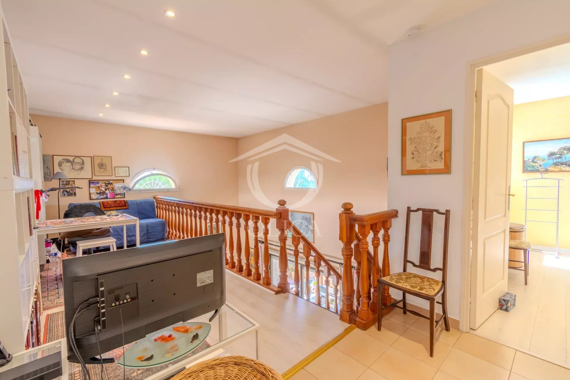 À l'étage, une mezzanine avec espace bureau, une chambre avec vue mer, salle d'eau privative avec wc, une seconde chambre, une salle d'eau indépendante, wc séparé et de nombreux rangements.