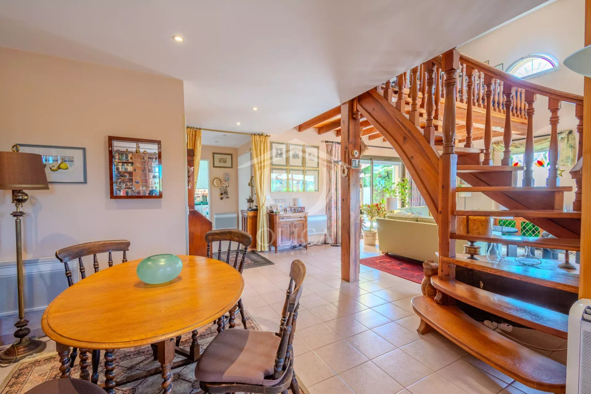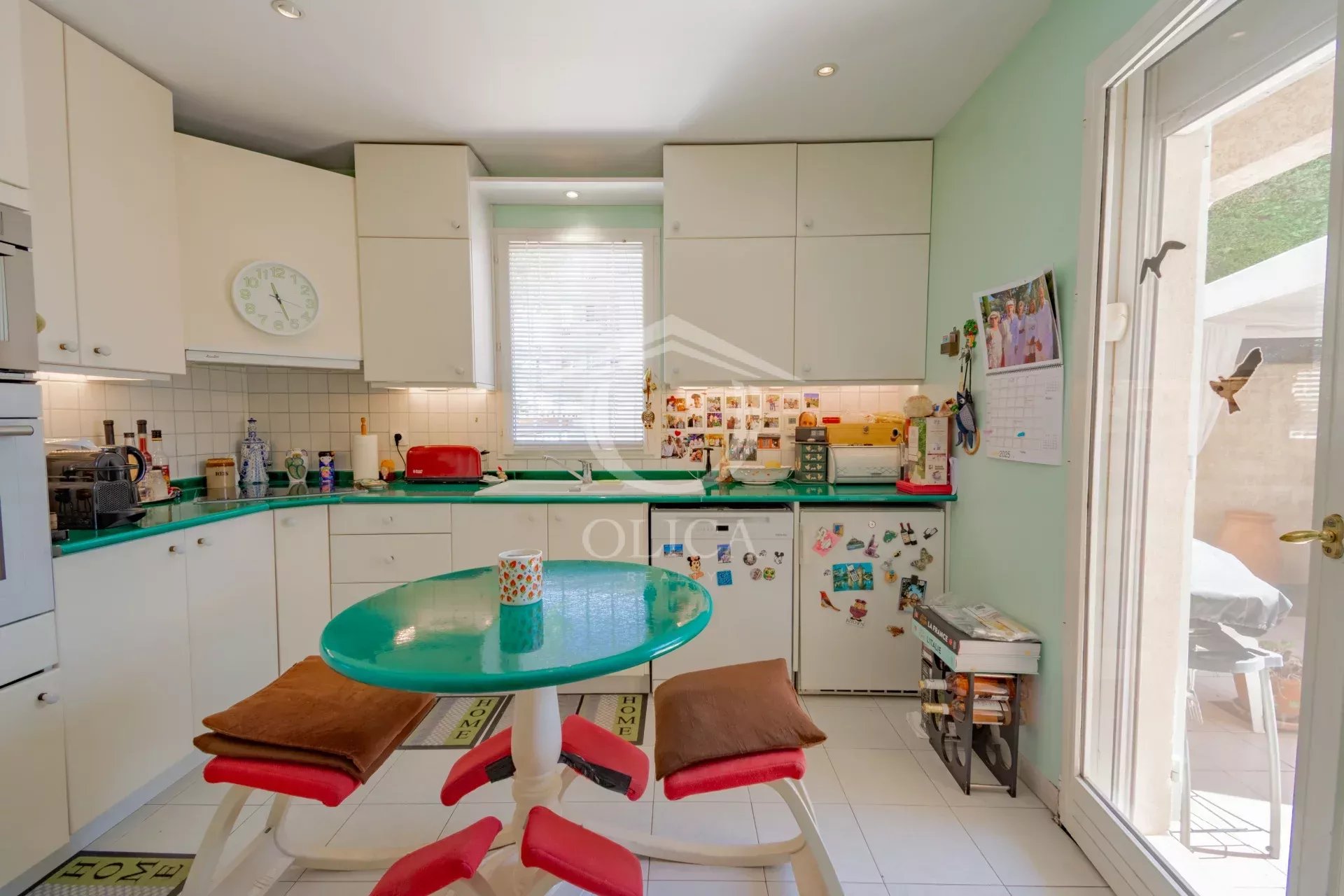 Cuisine ouverte sur le patio, wc invités .