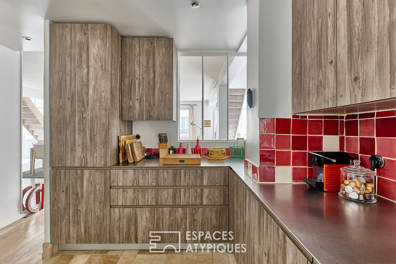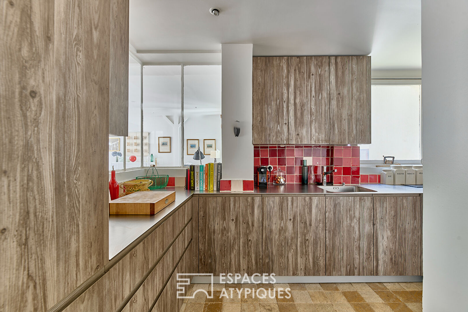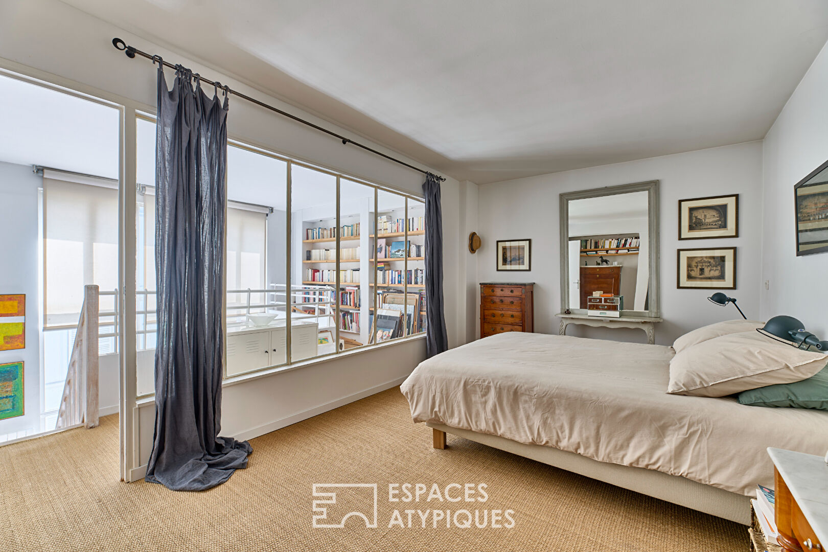 Situé à Montmartre, entre Blanche et Place de Clichy, cet ancien atelier réaménagé en duplex de 118,90 m2 (117,44 m² loi Carrez) se trouve au troisième étage par ascenseur d'un bel immeuble Art Déco bien entretenu. L'entrée de l'appartement distribue des toilettes puis une cuisine semi-ouverte récemment repensée. Décorée avec soin, la grande pièce de vie de 52 m2 comprend une salle à manger et un salon autour d'une élégante cheminée des années 30. Traversante et dotée d'une hauteur sous plafond atteignant 5,33 mètres, la pièce jouit d'une agréable luminosité et illustre l'espace caractéristique des ateliers et lofts. A l'étage, la galerie-mezzanine qui surplombe partiellement le salon pourrait aussi bien accueillir un espace bureau. Elle distribue deux belles chambres de 13 et 15 m2, qui se partagent un grand dressing de près de 9 m2 et une grande salle de bains avec toilettes de près de 10 m2. Une cave de 4 m2 complète ce bien soumis au statut de copropriété avec gardien. Chauffage inclus dans les charges. Métro Place de Clichy (Lignes 2 et 13) Contact : Fabrice +33 7 86 75 71 32 Copropriété de 12 lots - dont 11 lots habitation. (Pas de procédure en cours). Charges annuelles : 8500 euros. FABRICE DERRIEN (EI) Agent Commercial - Numéro RSAC : 951 254 671 - PARIS.