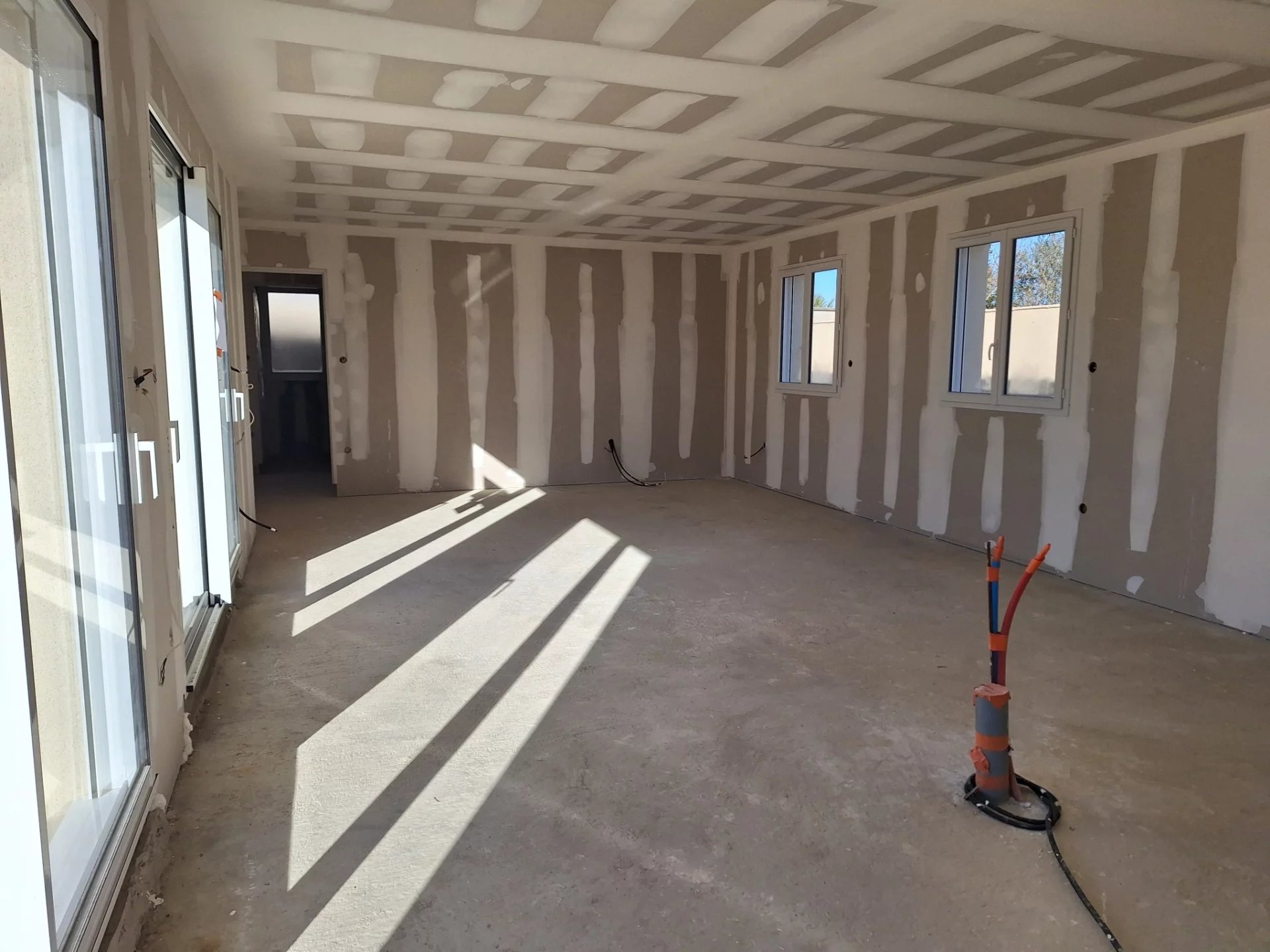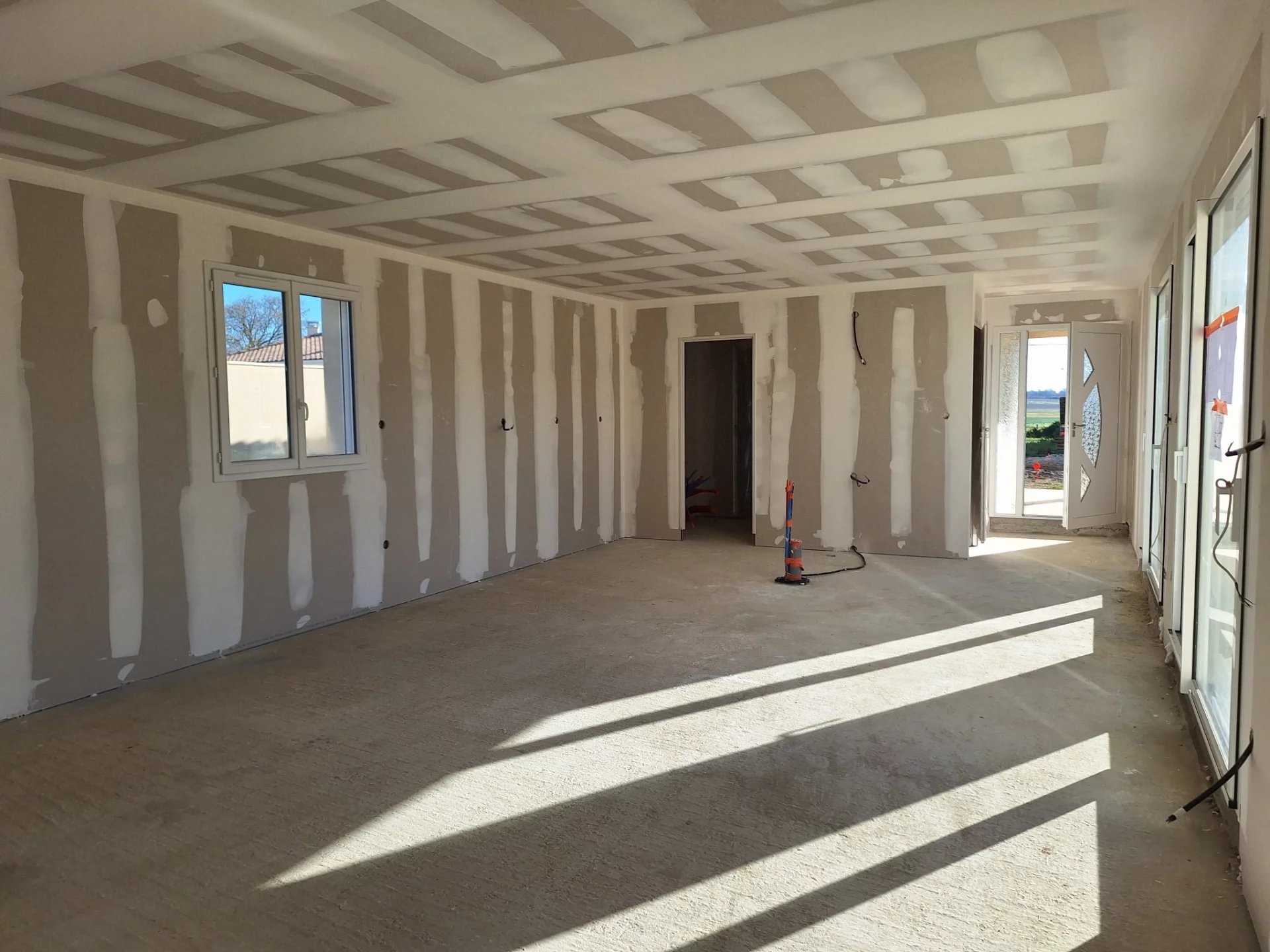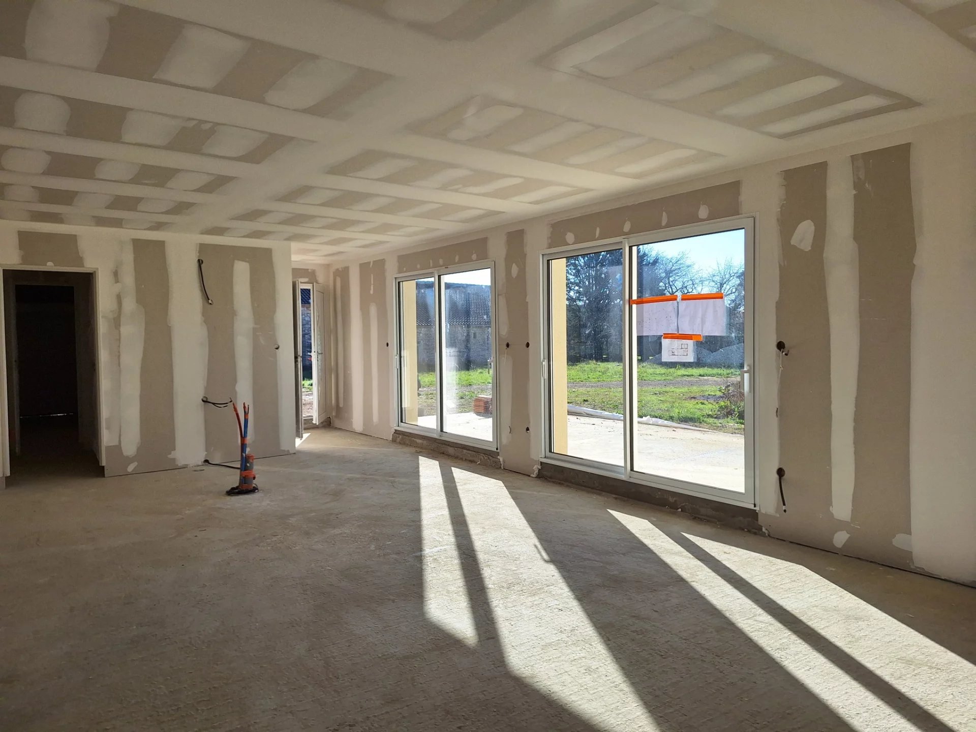 A 5 mns de La Rochefoucauld, au calme , pavillon de plain pied en cours de construction - 102 m² + le garage attenant 20 m² - terrasse 47 m² - terrain non clos 896 m² Livré hors d'eau / hors d'air - crépi Travaux inclus : Placo bandes et 2 couches de peinture Pieuvre électrique Tout à l'egout - terrain non clos DPE non soumis Mandat n°2588.25 dont 150 000 € net vendeur + 5000 € ttc d'honoraires reduits Frais de notaire réduits - REF 671 S 2