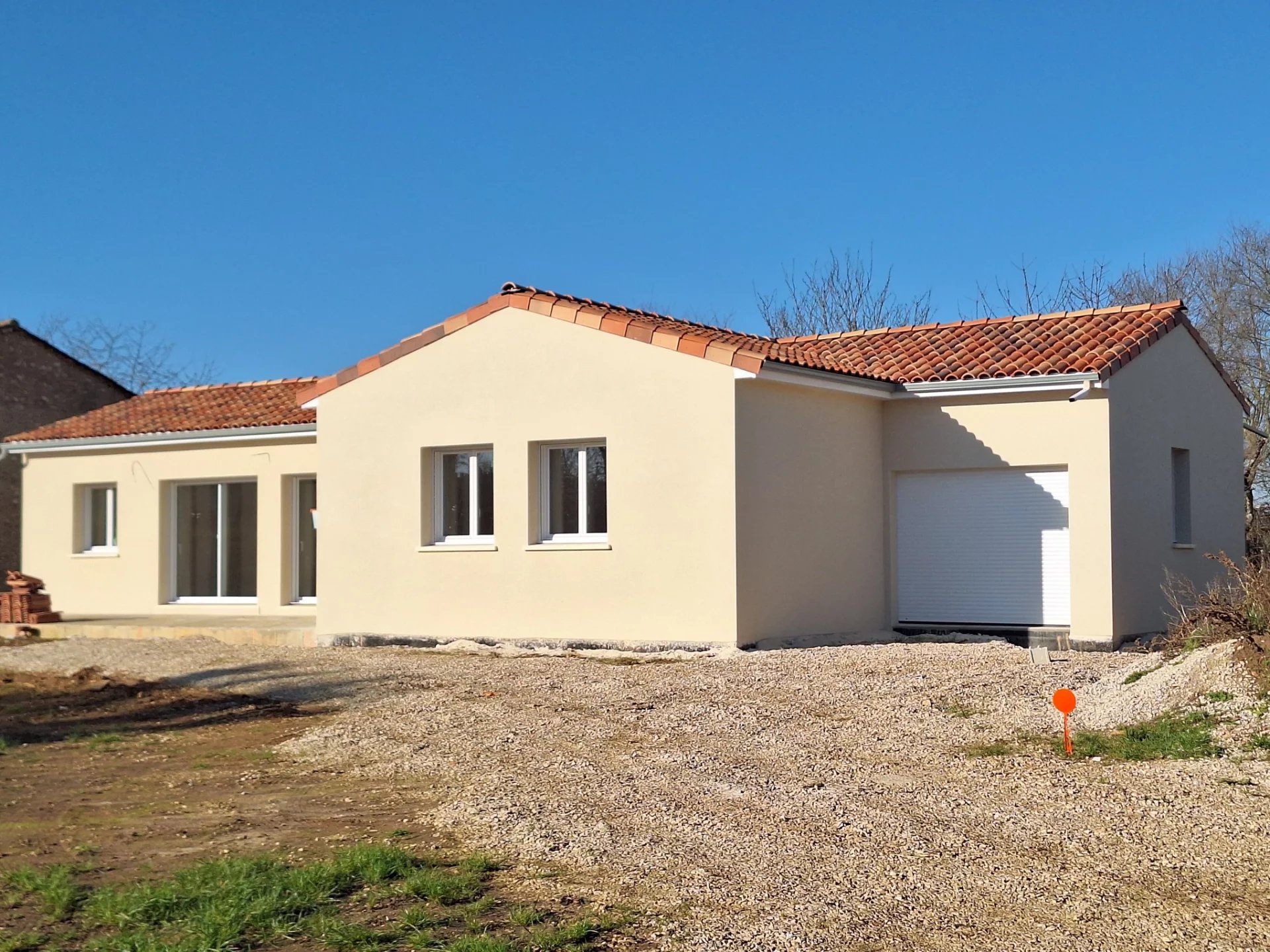 A 5 mns de La Rochefoucauld, au calme , pavillon de plain pied en cours de construction - 102 m² + le garage attenant 20 m² - terrasse 40 m² - terrain non clos 926 m² Livré hors d'eau / hors d'air - crépi Travaux inclus : Placo bandes et 2 couches de peinture Pieuvre électrique Tout à l'egout DPE non soumis - Normes PMR Mandat n°2588.25 dont 160 000 € net vendeur + 5000 € ttc d'honoraires réduits Frais de notaire réduits REF 672 S 2