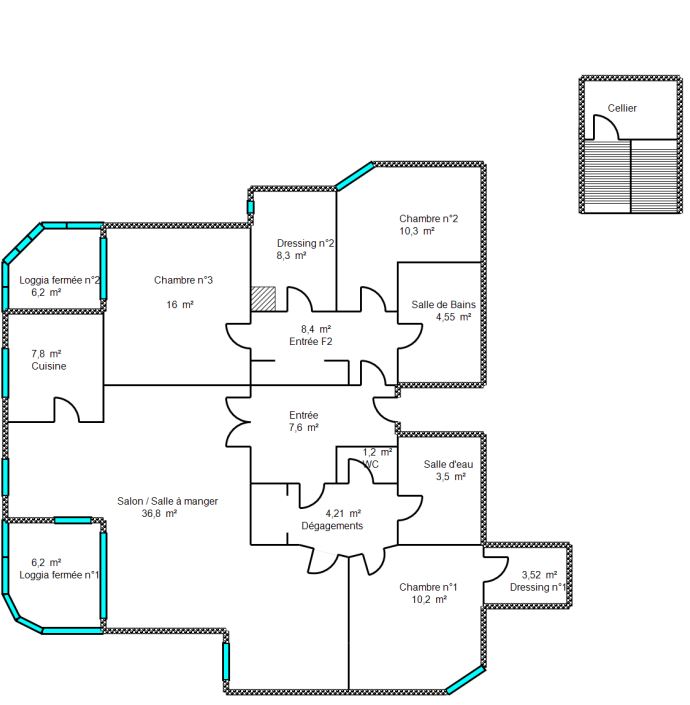 Deux loggias fermées ajoutent 12 m² supplémentaires, parfaites pour créer un espace détente, un bureau ou un coin lecture.