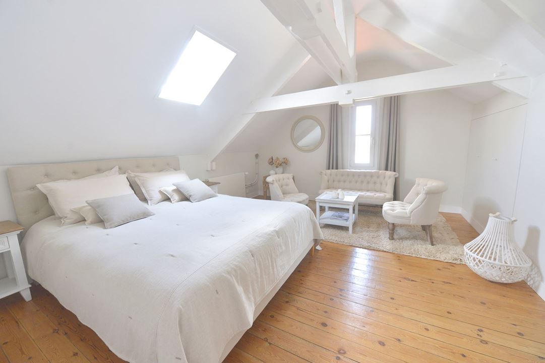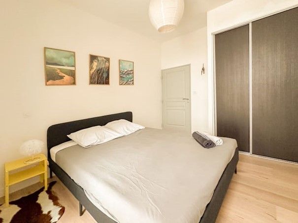 Il comprend une grande pièce à vivre avec cuisine américaine équipée, buanderie, une chambre avec grand dressing de 7m2 , une seconde chambre avec placard intégré, salle d'eau, wc séparées.