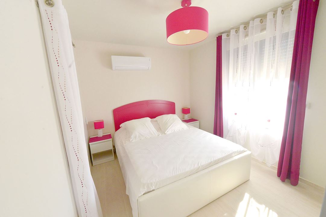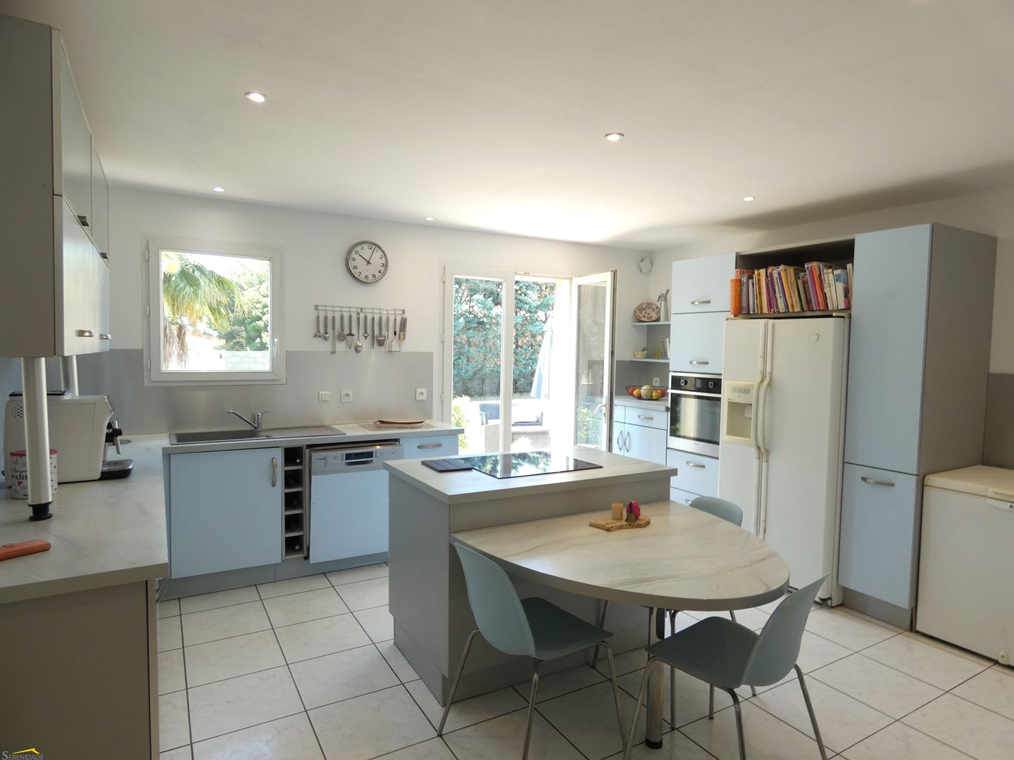 Elle se compose: Grande Pièce de vie, d'une cuisine équipée, 5 chambres, 2 salles de bain, buanderie, garage, climatisation réversible, pompe à chaleur