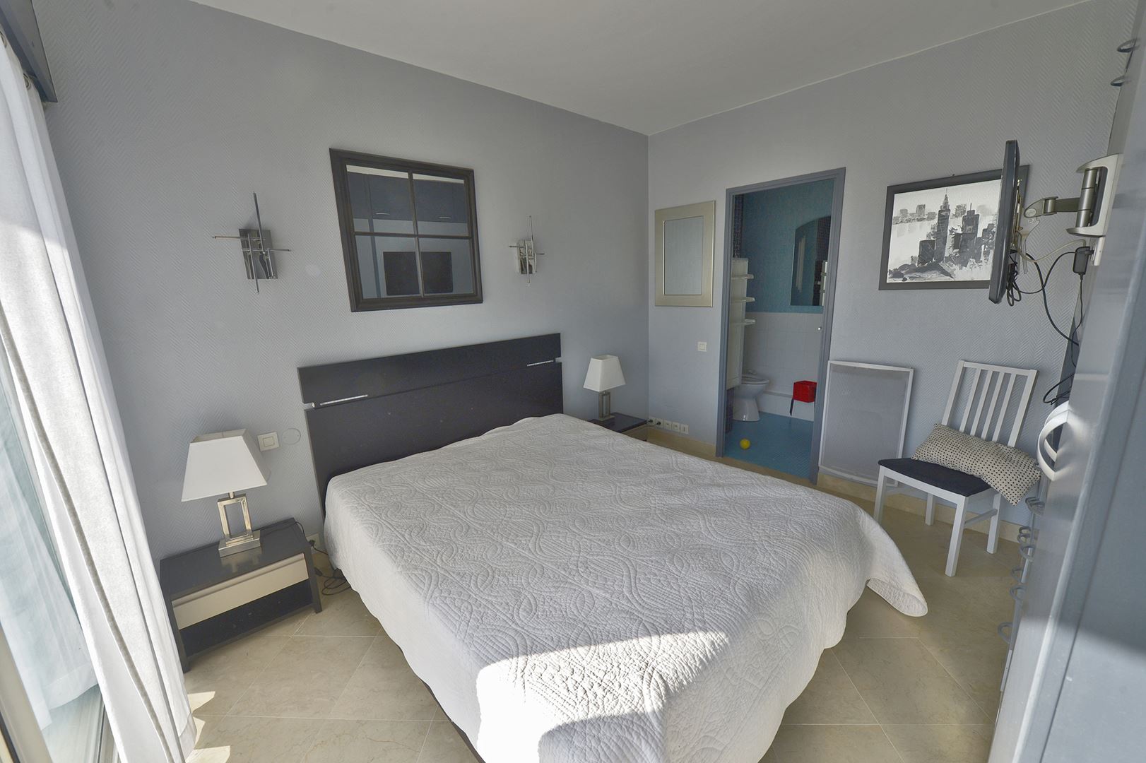 Composé d'un hall d'entrée, d'un salon-séjour (climatisation et cheminée intégrées) avec vue mer accès double terrasse, 3 chambres, un bureau, une salle de bain, une salle d'eau et wc indépendant.
