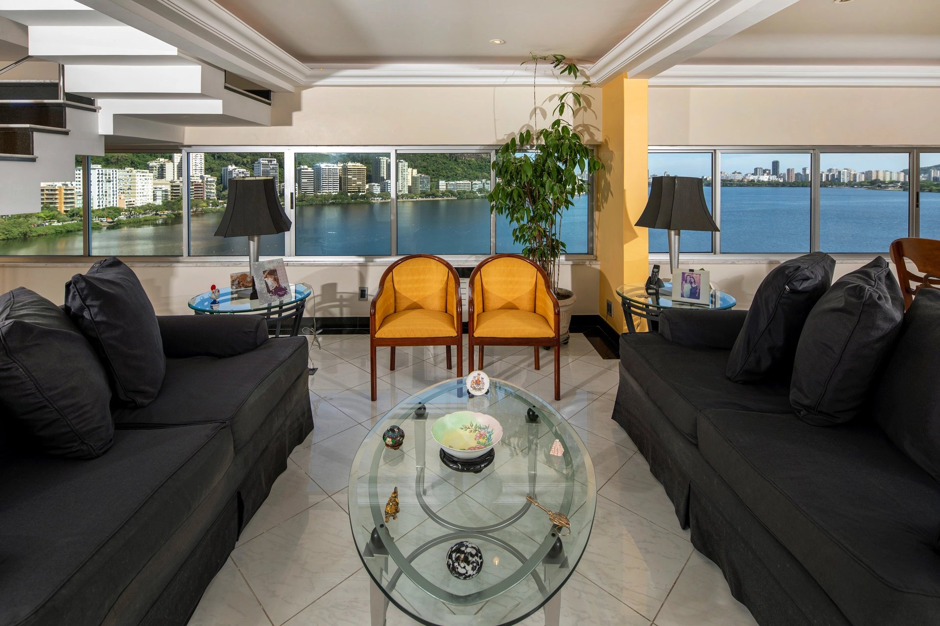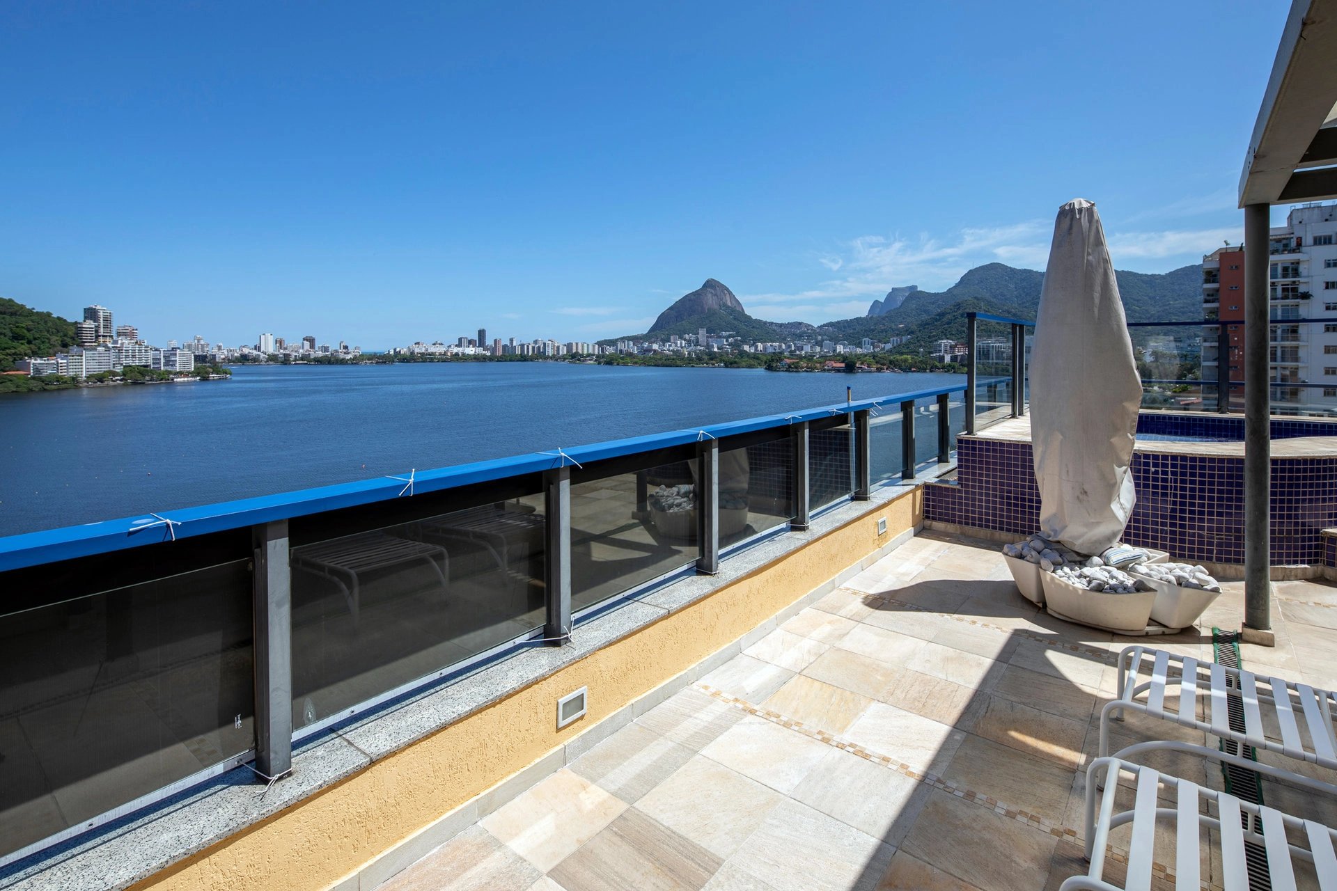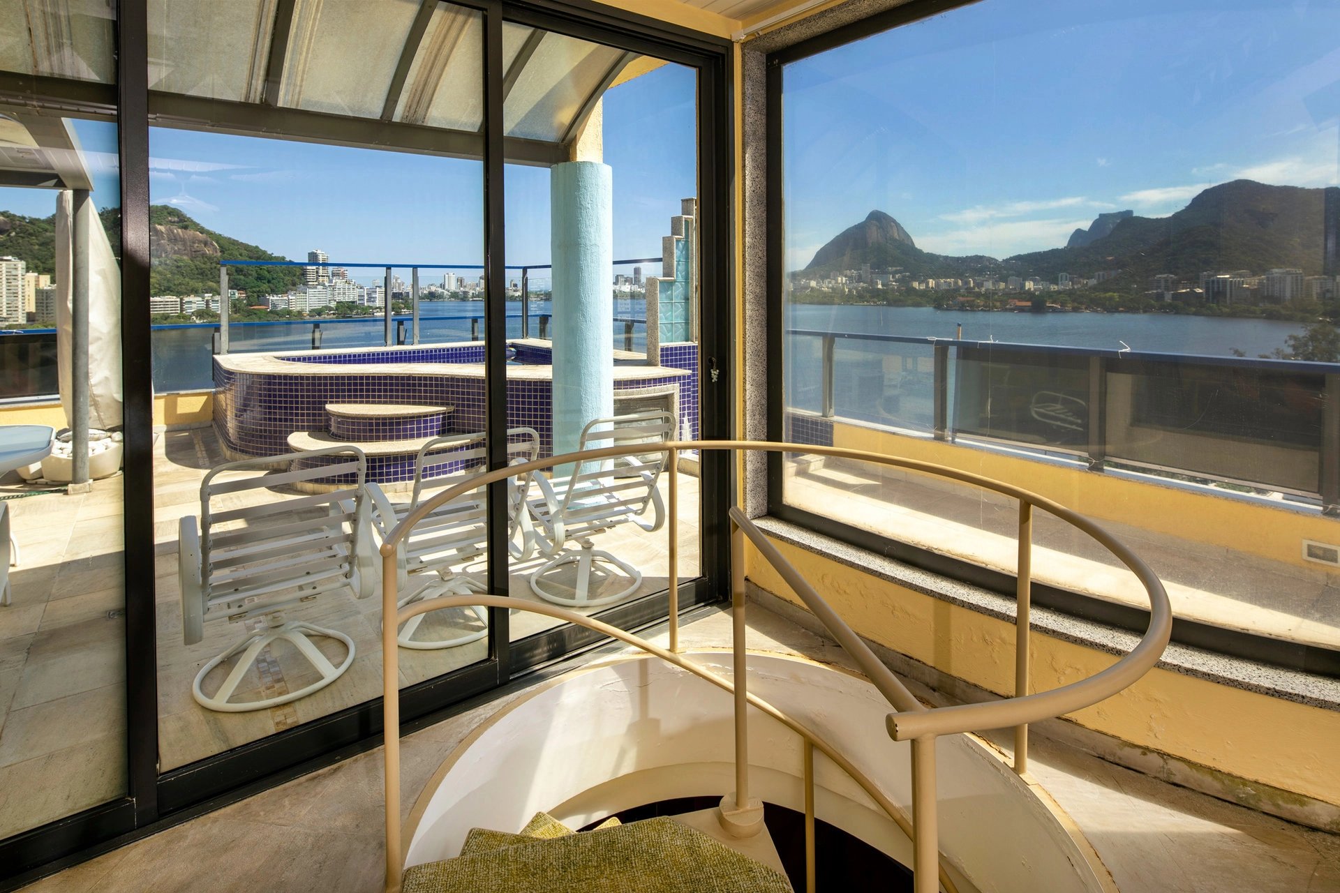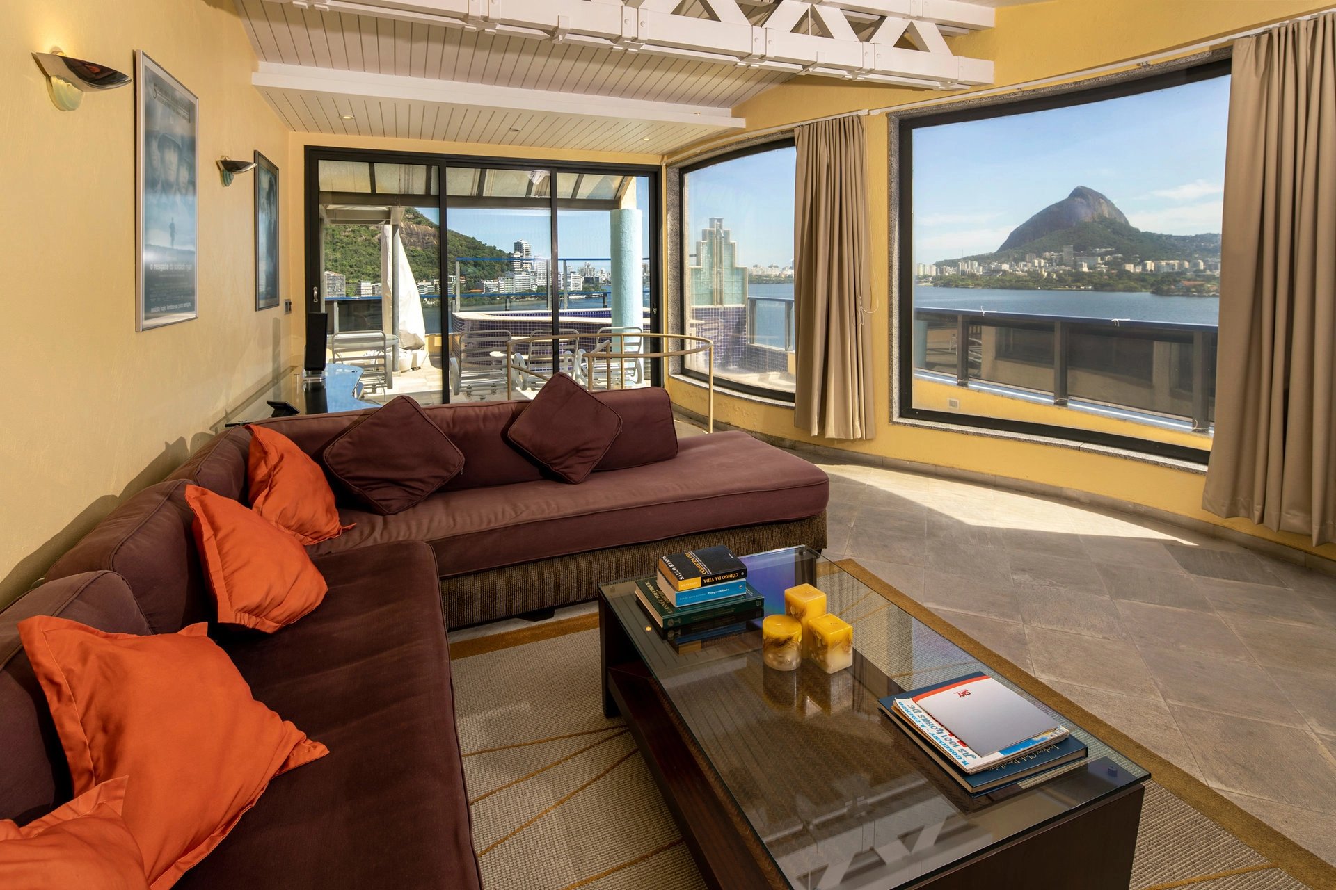 L’appartement se situe en angle de l’immeuble; lui même situé sur l’avenue Borges de Medeiros, en front de lagune. On peut aisément dire qu’il s’agit là d’une des plus belles vues de Rio de Janeiro. Et chaque espace de cet appartement logé au 10ème étage de ce bel immeuble dispose de cette imprenable vue, où l’horizon est composé des quartiers chics d’Ipanema et Leblon, des montagnes des deux frères et de Gavéa et au fond l’océan et les îles.