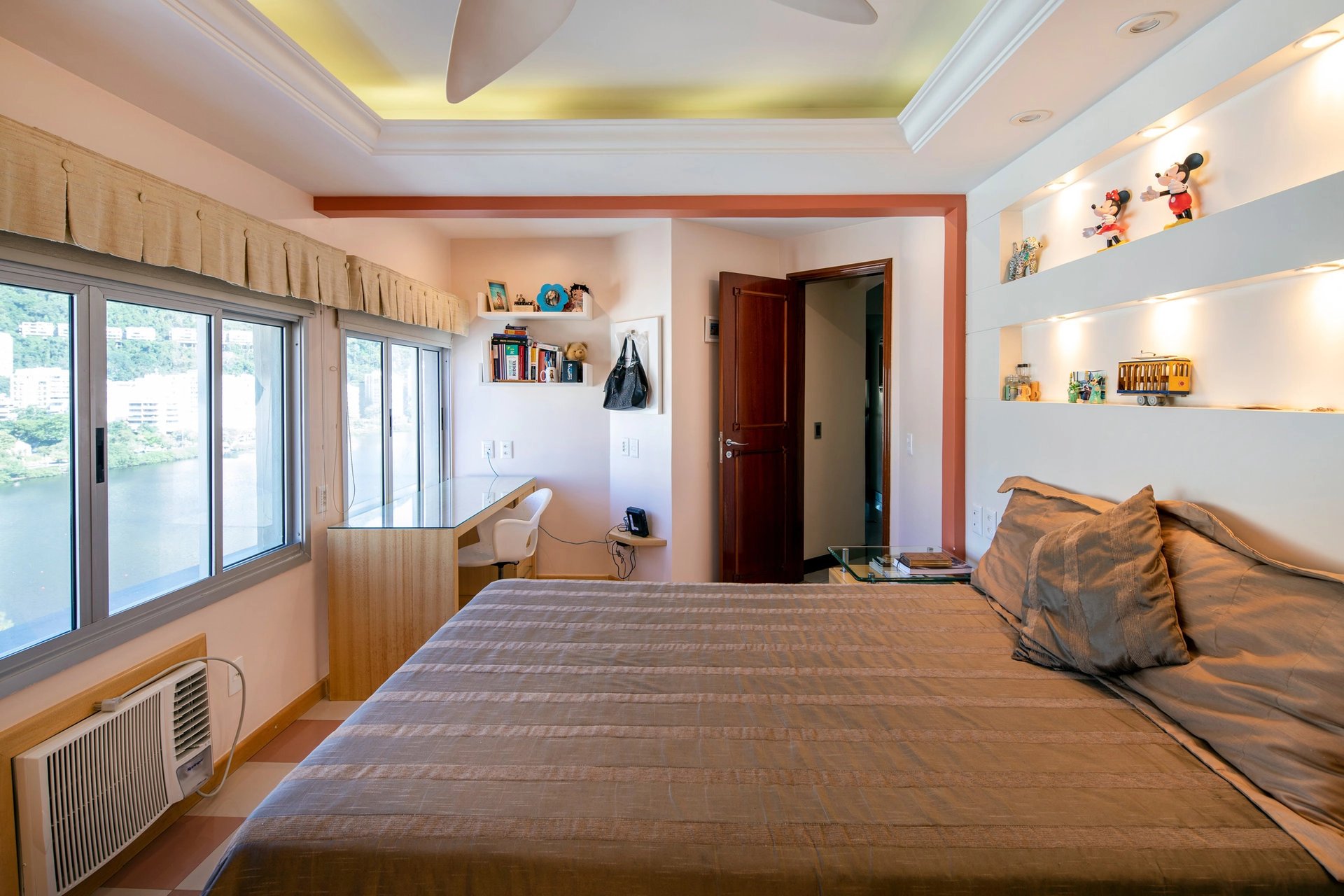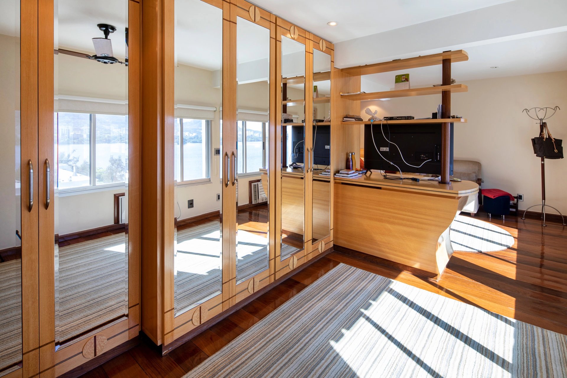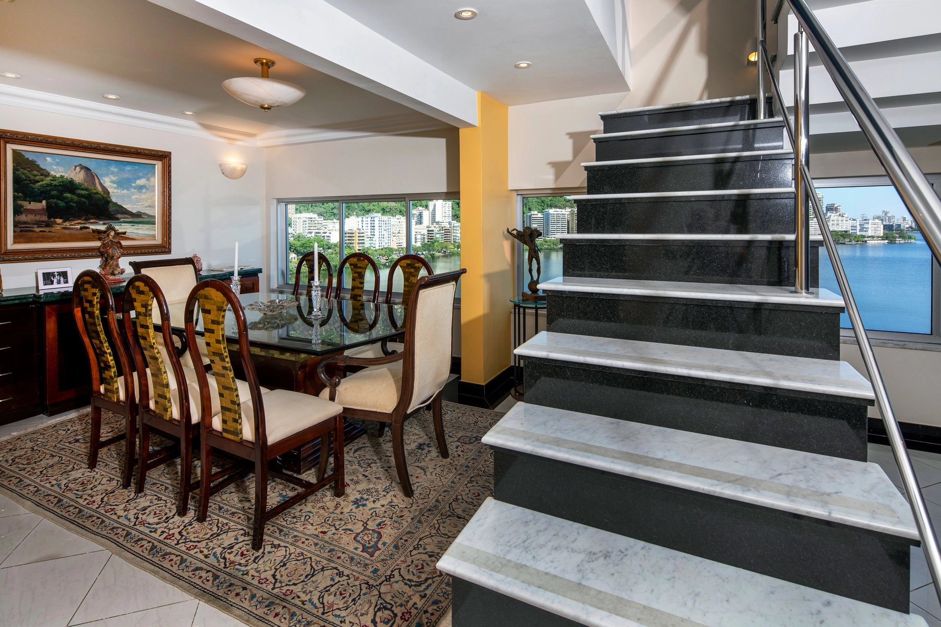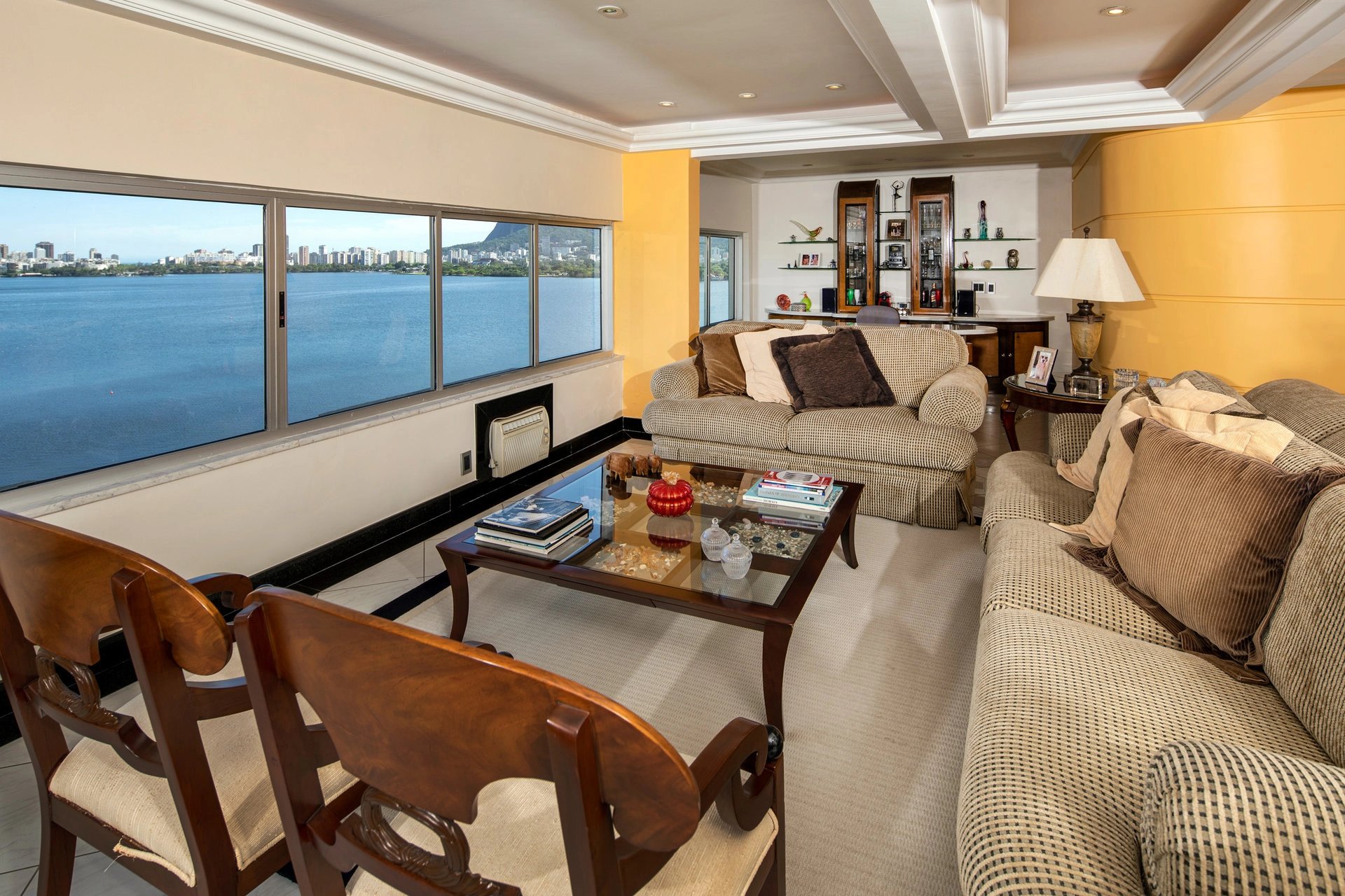 L’appartement se situe en angle de l’immeuble; lui même situé sur l’avenue Borges de Medeiros, en front de lagune. On peut aisément dire qu’il s’agit là d’une des plus belles vues de Rio de Janeiro. Et chaque espace de cet appartement logé au 10ème étage de ce bel immeuble dispose de cette imprenable vue, où l’horizon est composé des quartiers chics d’Ipanema et Leblon, des montagnes des deux frères et de Gavéa et au fond l’océan et les îles.