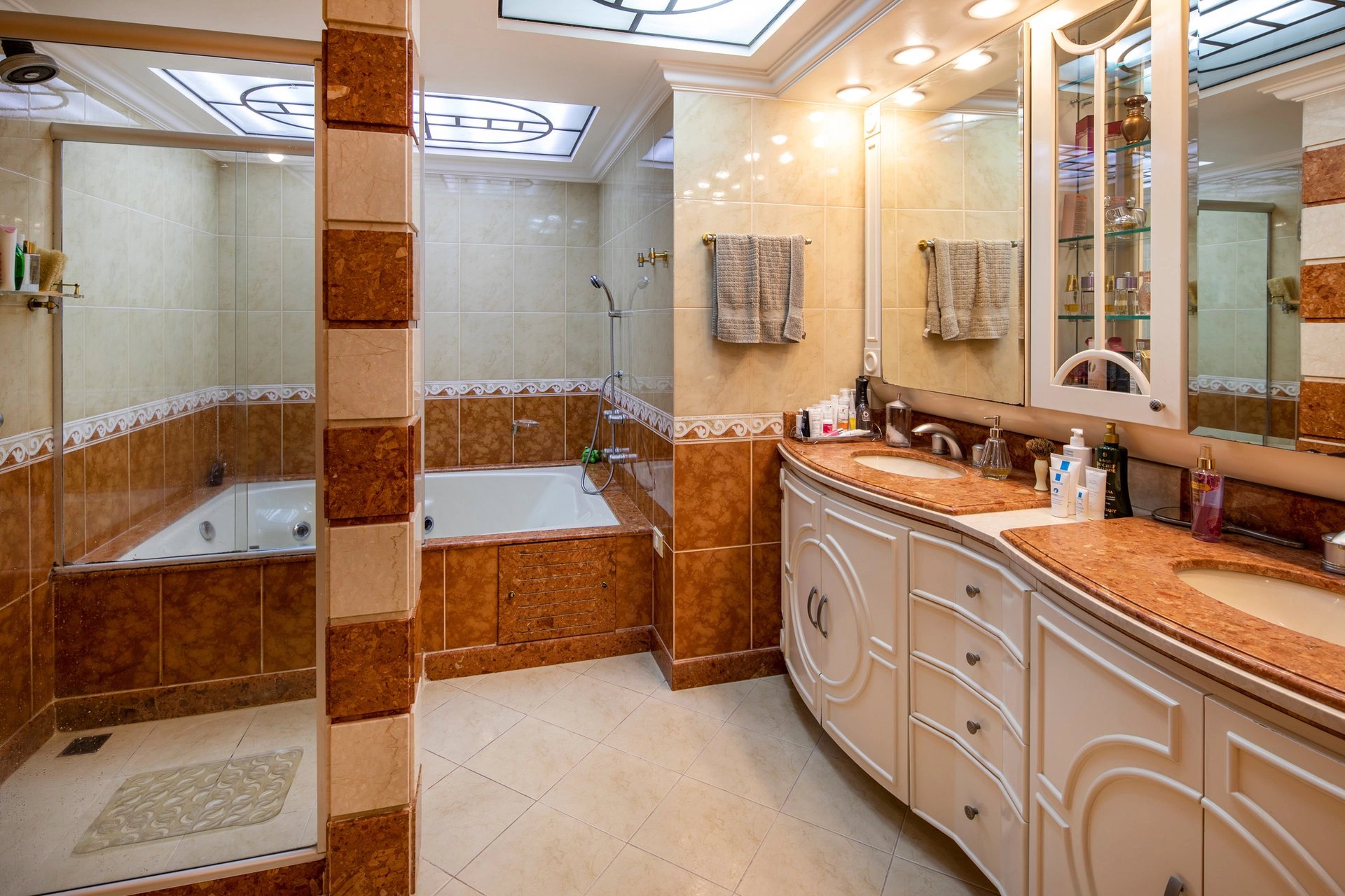 On compte 4 suites complètes ainsi que des toilettes de service et un espace social dédié aux employés de maison. La suite master dispose d’un jacuzzi et d’un sauna.