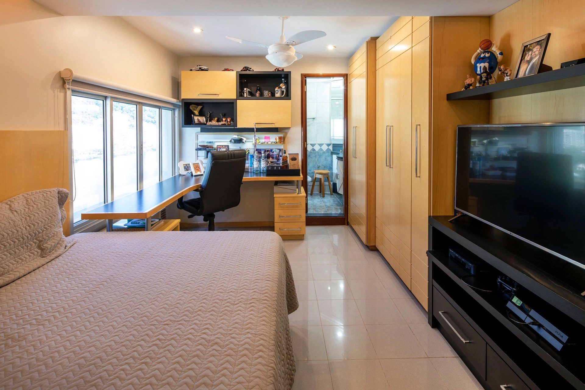 L’atout principal est ce toit privatif arrangé en terrasse avec une piscine et des parasols et des espaces à l’ombre. Idéal pour se reposer dans une ambiance chaude et tropicale. Composé d’un bureau transformable en chambre et d’un grand espace cinéma, ce deuxième étage est parfait pour se détendre et recevoir.