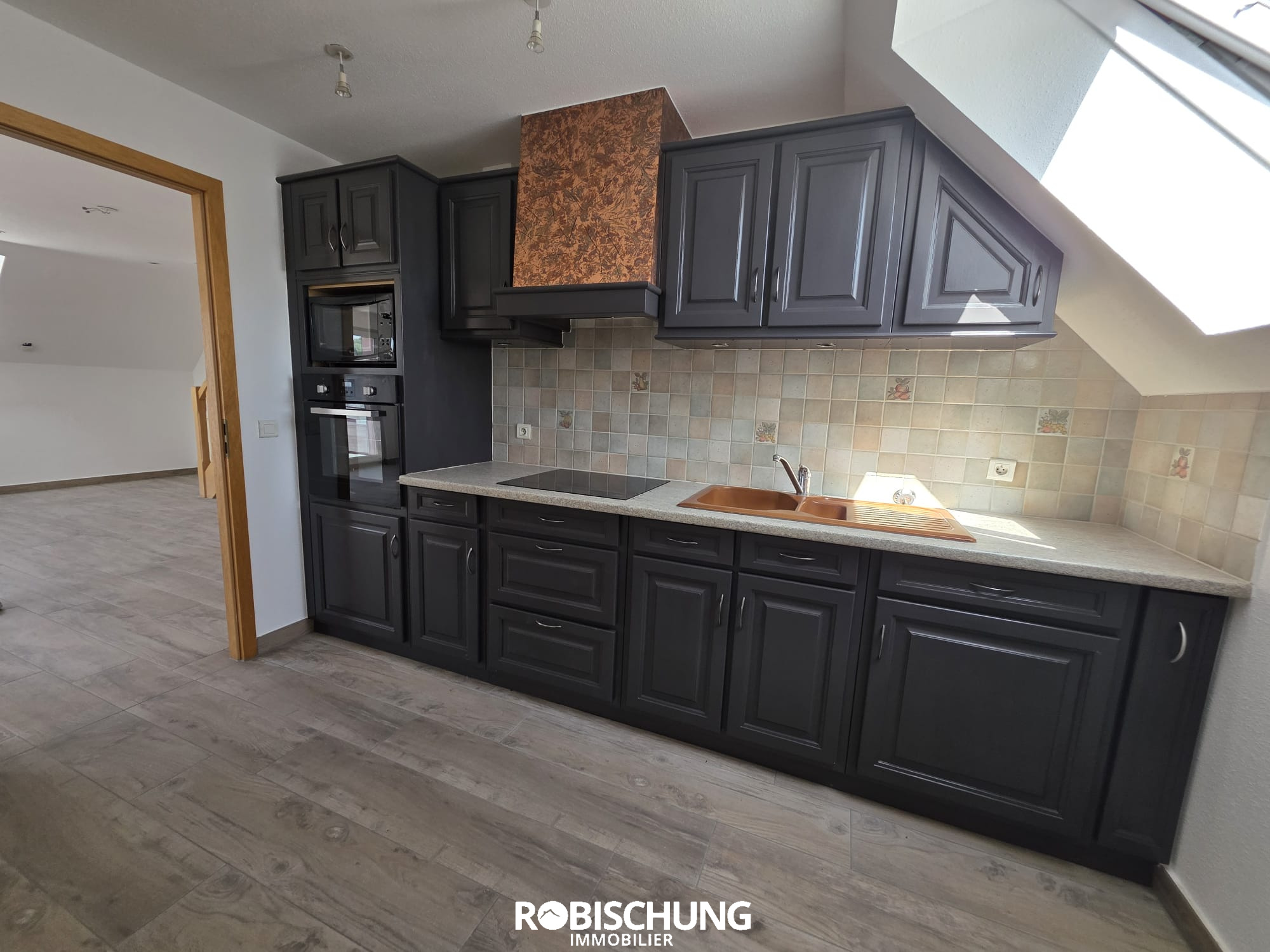 Au coeur de Hirsingue : Au dernier étage d'une copropriété (sans ascenseur), ce duplex de 95 m2 habitables séduit dès l'entrée par son ambiance soignée et ses beaux volumes.