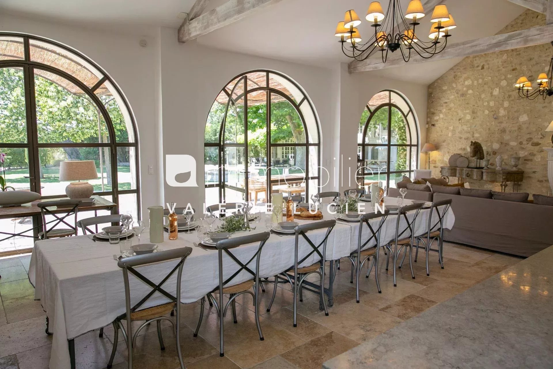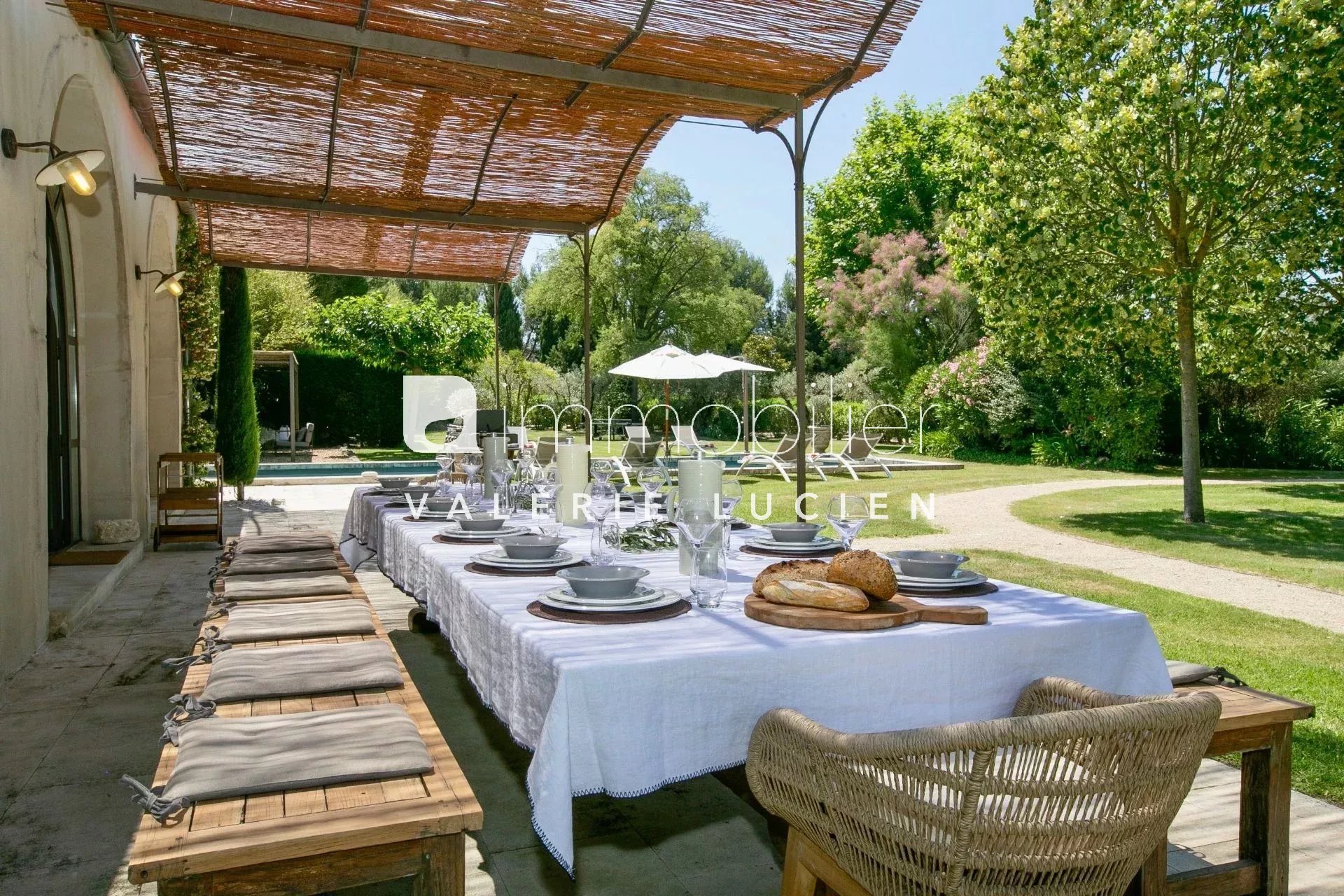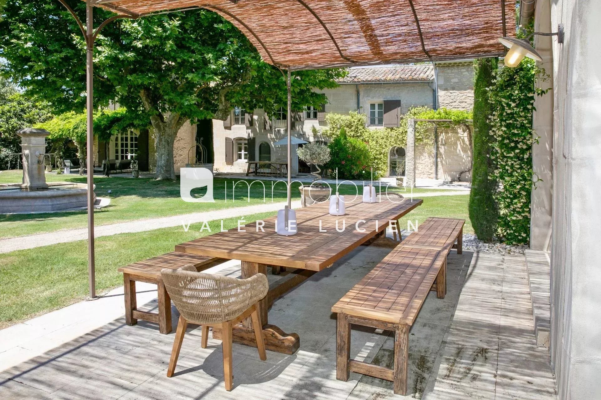 Située à l’entrée de Saint-Rémy-de-Provence, cette propriété exceptionnelle de 670 m², à la décoration soignée et raffinée, offrant un confort de vie des plus appréciables, est édifiée sur un magnifique parc clos soigneusement arboré et fleuri de 6 500 m². MAS PRINCIPAL (500 m²) Au-Rez-de-Chaussée - Cuisine avec espace dînatoire - Salon avec cheminée et tv - 2 chambres en suite avec lit de 180 cm, salles de bains avec douche et wc - Petit salon d'été non climatisé et non chauffé - Salle de sport avec machines cardio & fitness, sauna, douche et wc À l'Étage - 1 chambre avec lit de 160 cm, salle de douche et wc séparé - 1 chambre avec lit de 180 cm, salle de bains avec douche et wc - 1 petite chambre adjacente avec lit de 90 cm - 1 chambre avec 2 lits de 90 cm pouvant être réunis, salle de bains avec douche et wc - 1 chambre avec 2 lits de 90 cm, mezzanine avec 2 lits de 90 cm, salle de douche avec wc et terrasse indépendante DÉPENDANCE (120 m²) - Grand espace de vie comprenant un espace salon avec cheminée et tv, un espace salle à manger et une cuisine semi-professionnelle équipée ANNEXE (50 m²) - Salle de jeux avec air hockey LES EXTÉRIEURS - 5 terrasses ombragées - Fontaine provençale - Piscine de 15.5x4.5 m, chauffée sur demande (avec supplément) et sécurisée par alarme - Terrain de pétanque - Parking privatif ÉQUIPEMENTS Intérieur : - Lit bébé et chaise haute sur demande - Lecteur CD, Iphone et Ipod dock, satellite avec chaînes anglaises - Climatisation réversible (chambres, salle de jeu et dépendance) - Coffre-fort Extérieur : - Barbecue au gaz Weber avec plancha intégrée - 8 à 10 bains de soleil, 3 parasols, 3 salons de jardin, 4 tables, chaises - Ping-pong, 3 vélos SERVICES INCLUS - Linge de maison et serviettes de piscine, changement le vendredi dès 15 jours de location - 3h de ménage journalier excepté le samedi, dimanche et jours fériés, ménage de fin de séjour - Conciergerie 24h / 24h - Maintenance piscine et entretien jardin DIVERS - Capacité d'accueil de 12 personnes - Animaux sur demande - Fumeur en extérieur - Arrivées : à partir de 16h - Départs : jusqu'à 10h DISPONIBILITÉS Toute l'année TARIFS De 9945 € à 15 210 € CONDITIONS DE RÉSERVATION Acompte de 30% du montant de la location lors de la réservation Solde du montant de la location au plus tard 60 jours avant l'arrivée Dépôt de garantie de 4000 € Taxe de séjour non inclus