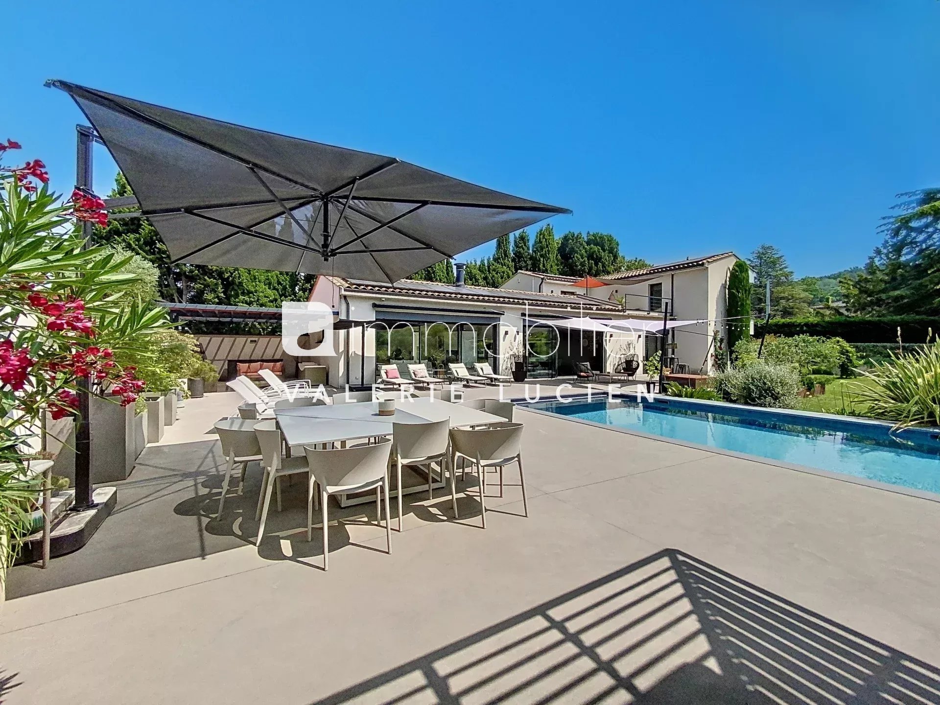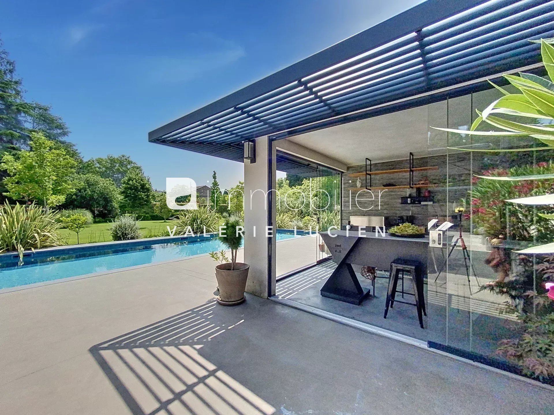 Notre agence ACTUEL IMMOBILIER à Saint-Rémy-de-Provence a sélectionné cette maison contemporaine à seulement 5 minutes du centre-ville de Saint-Rémy-de-Provence. Cette maison construite en 2017, offre un cadre de vie rare, alliant confort moderne, prestations haut de gamme et nature préservée. D’une surface de 260 m², elle est implantée sur un terrain paysager de 3 170 m², entièrement arboré, offrant une intimité totale et une agréable sensation d’espace. Dès l’entrée, une grande pièce de vie ouverte, chaleureuse et baignée de lumière s’offre à vous. La cuisine aménagée et équipée donne sur un espace repas, prolongé par un salon cosy avec sa cheminée à double foyer. L’ensemble forme un lieu de vie convivial, pensé pour les moments de partage. De larges baies vitrées coulissantes assurent une parfaite continuité entre l’intérieur et l’extérieur, prolongeant naturellement la maison vers les terrasses et le jardin ; en été, la maison semble littéralement s’agrandir. Le rez-de-chaussée accueille également un bureau, ainsi qu’une suite parentale avec dressing, salle de bains avec baignoire et double douche. Idéale pour une vie de plain-pied. À l’étage, 3 chambres en suite, chacune avec sa salle d’eau privative, assurent confort et indépendance. Deux d’entre elles bénéficient d’un accès direct à une grande terrasse, offrant une vue dégagée sur les Alpilles. L’architecture, dessinée avec soin, offre depuis chaque pièce de superbes cadrages sur le jardin, mettant en valeur la végétation et les différentes ambiances extérieures. À l’extérieur, tout a été conçu pour profiter pleinement du climat provençal, un superbe couloir de nage de 20x5 m, un pool house avec cuisine d’été entièrement équipée, ainsi qu’un espace bien-être. L’ensemble s’intègre parfaitement dans le jardin paysager, pensé pour préserver l’intimité et offrir une belle qualité de vie au quotidien. Cette propriété incarne l’équilibre parfait entre architecture contemporaine, confort et proximité urbaine, dans un environnement soigné et naturel. Maison contemporaine à vendre à Saint-Rémy-de-Provence