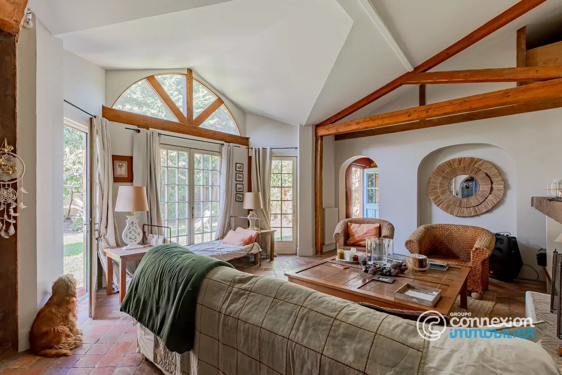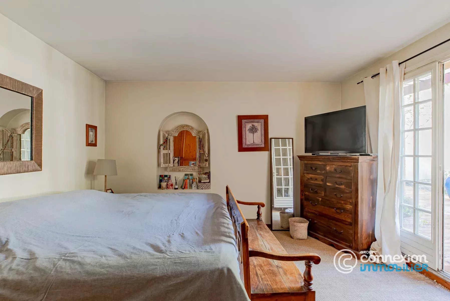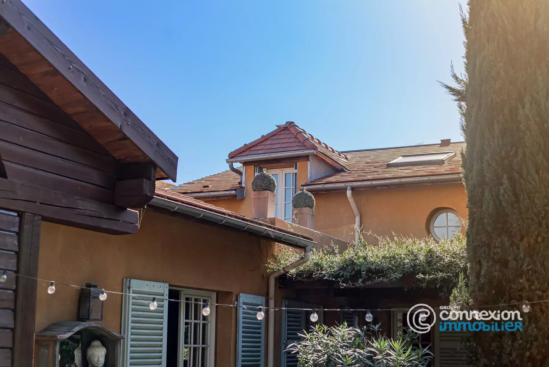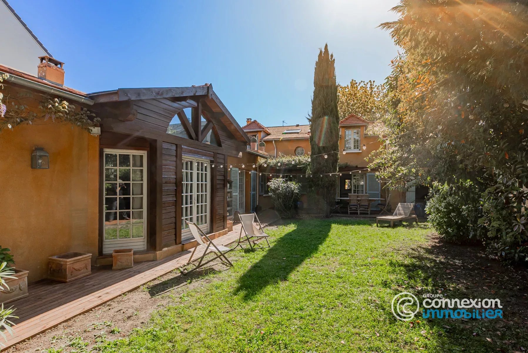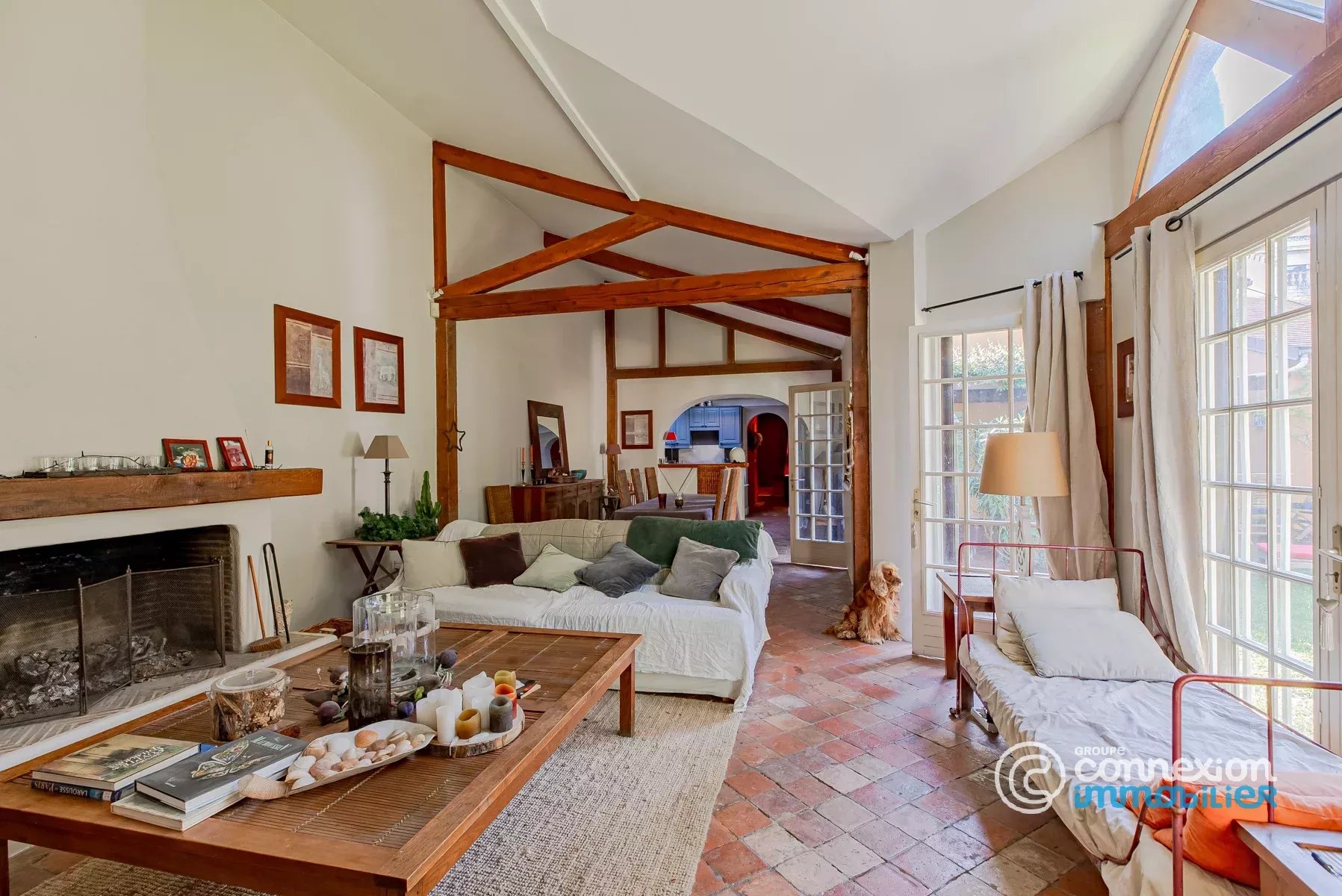 Situé dans un quartier particulièrement calme, sur le Mont Valérien, cette maison aux allures d’hacienda vous transporte sous des latitudes ensoleillées dès le portail franchi. Développée sur deux niveaux, elle offre une atmosphère chaleureuse et une circulation fluide entre les espaces intérieurs et extérieurs. Au rez-de-chaussée, une belle entrée mène à un vaste salon-salle à manger baigné de lumière, ouvert sur une cuisine conviviale au style authentique. Une suite parentale avec salle de bains et dressing s’ouvre directement sur la terrasse. À ses pieds, un jardin arboré de 373m² devient le prolongement naturel de la maison, invitant à la détente et aux longues soirées d’été. Un studio attenant, avec une mézannine donne directement accès au jardin, offre de multiples possibilités d’usage.Un WC séparé, un débarras et un grenier complètent ce niveau. À l’étage, deux chambres supplémentaires et une salle de jeux, avec une salle de bains et des toilettes. L’une des chambres dispose d’un accès direct à une terrasse, parfaite pour savourer les fins de journée en toute quiétude. Le charme de cette maison réside dans son architecture de type hacienda, ses beaux volumes et son jardin de 373 m², véritable havre de paix au cœur de la vie urbaine.