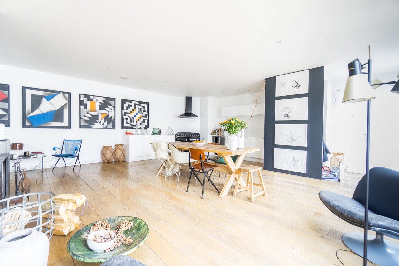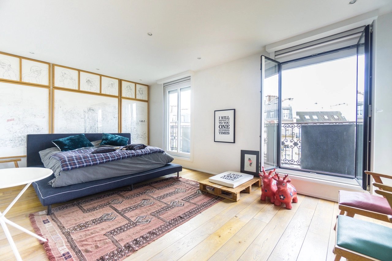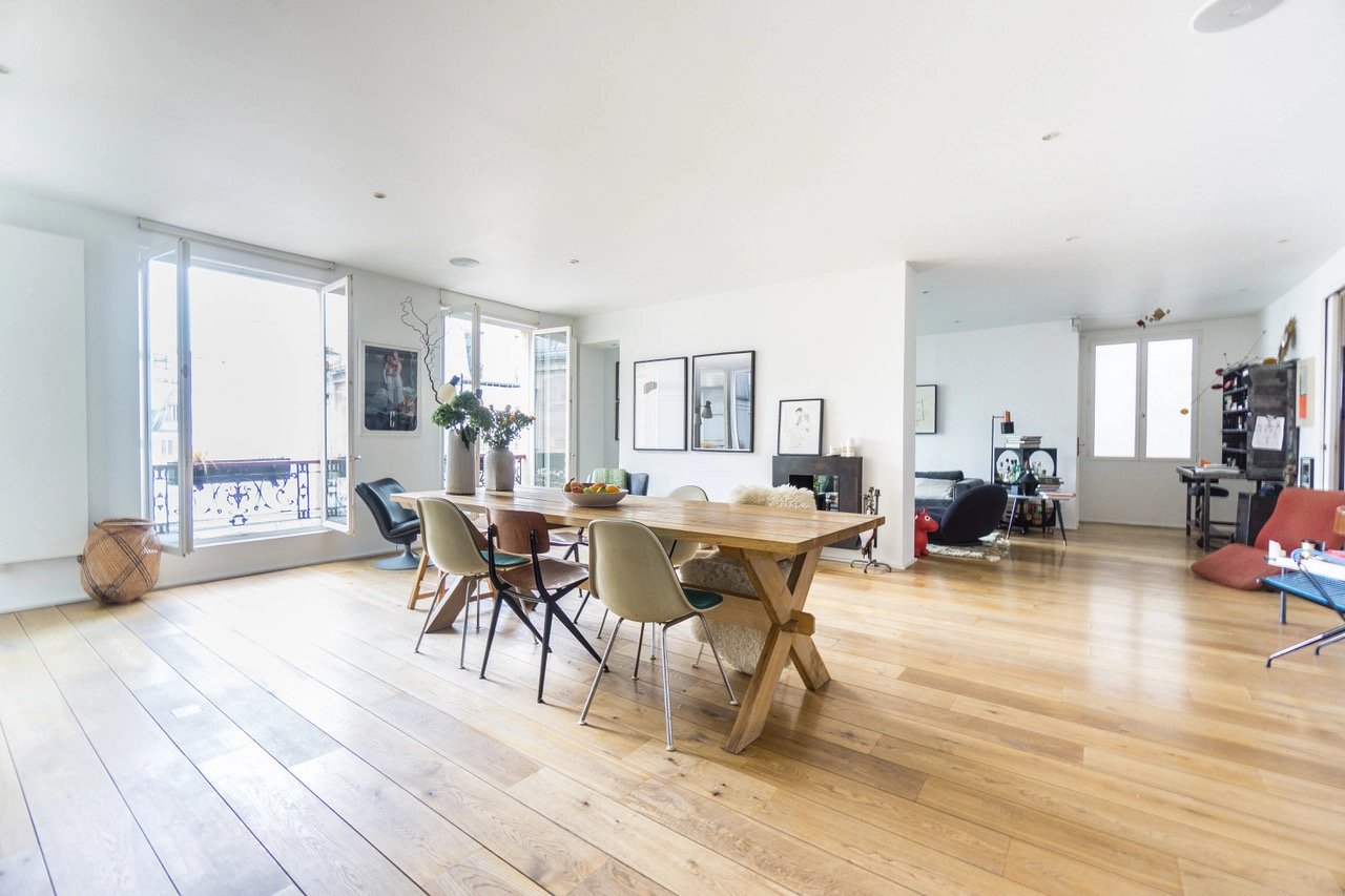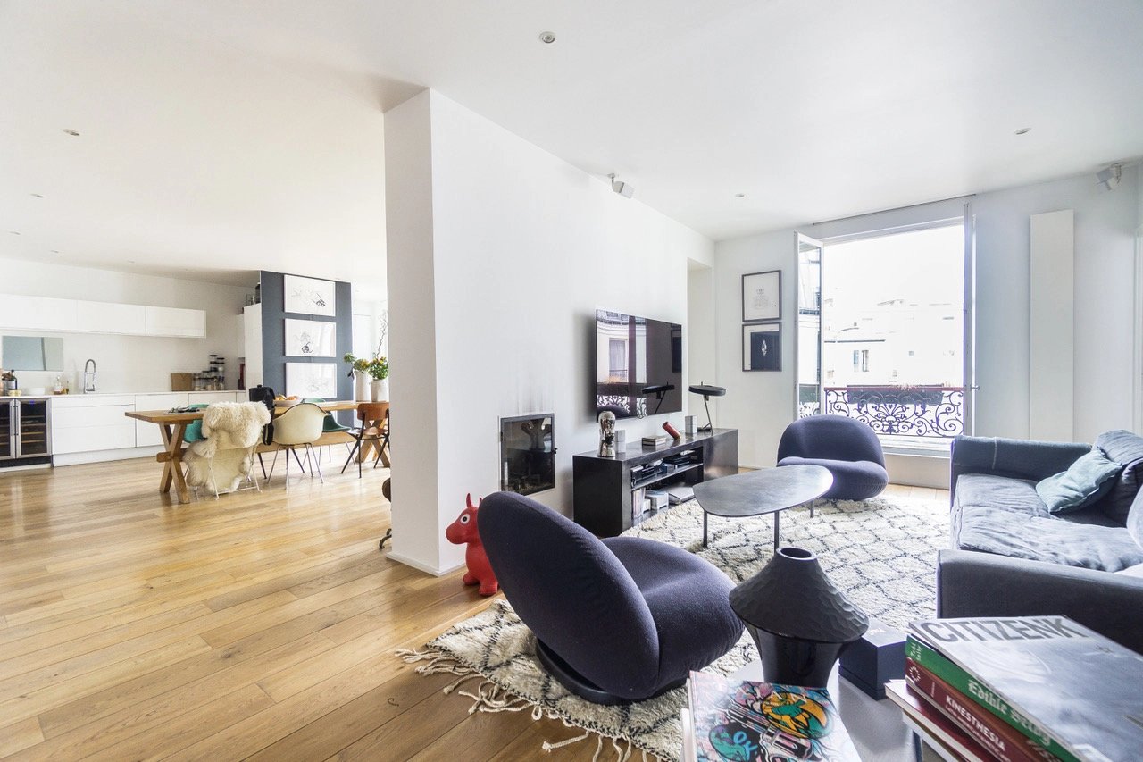 Au 5ème étage d'une très belle copropriété avec ascenseur, superbe appartement 4 pièces de 123m2 avec Balcon, comprenant un grand séjour avec cuisine américaine, coin salon, 2 chambres (possibilité 3) 2 salles d'eau, 2 wc, grande cave de 20m2, très lumineux grâce à ses nombreuses fenêtres, traversant, cosy, refait avec goût. A quelques pas du Canal Saint-Martin, et au pied du métro, transports, écoles et commerces. Coup de coeur!
