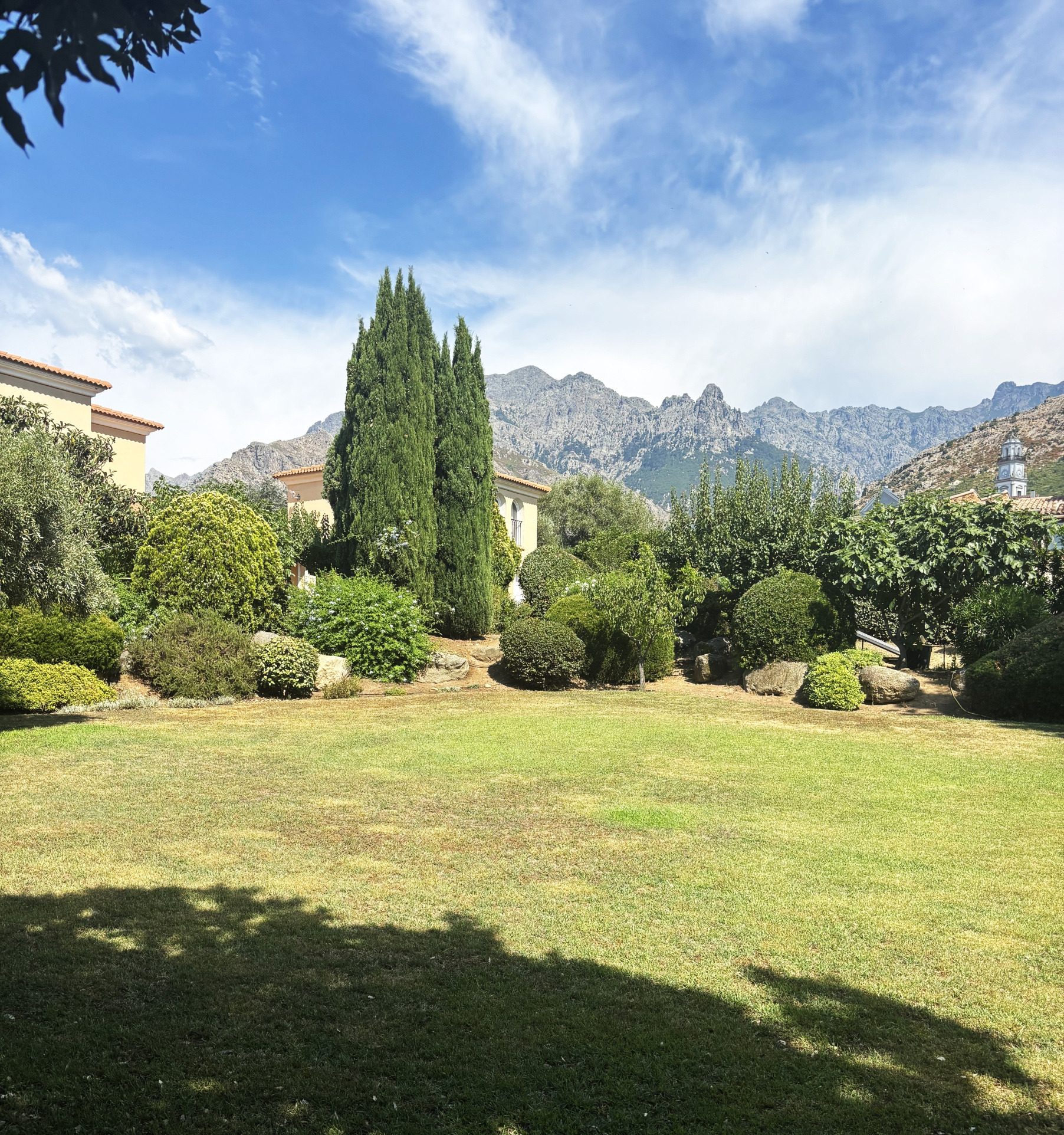 Belle propriété au coeur de Calenzana , jardin luxuriant , dans un quartier résidentiel .