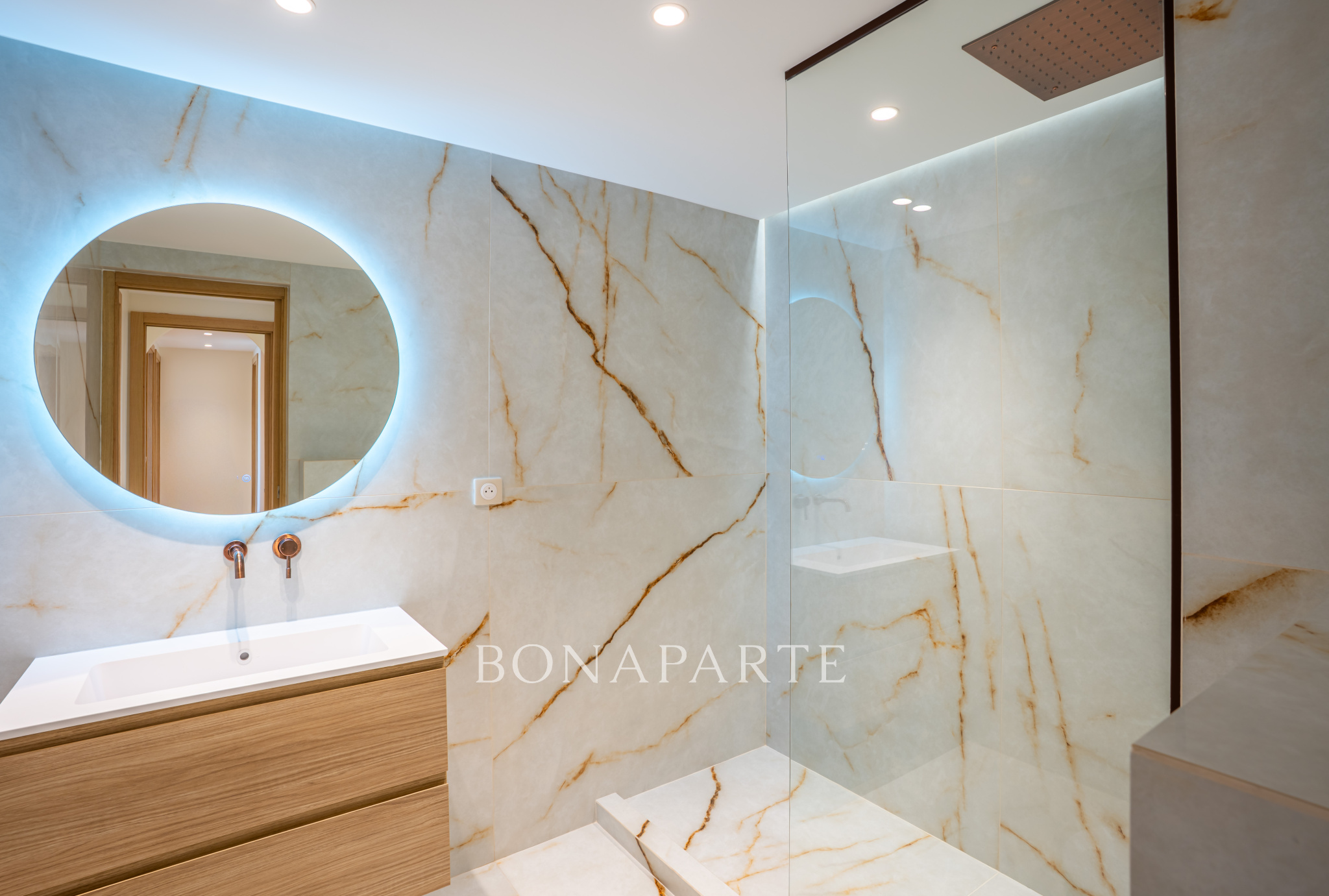 Les prestations sont d'un très bon niveau : climatisation réversible, portes à galandage, robinetterie de qualité, parking, garage et cave, copropriété avec piscine, tennis et gardien.