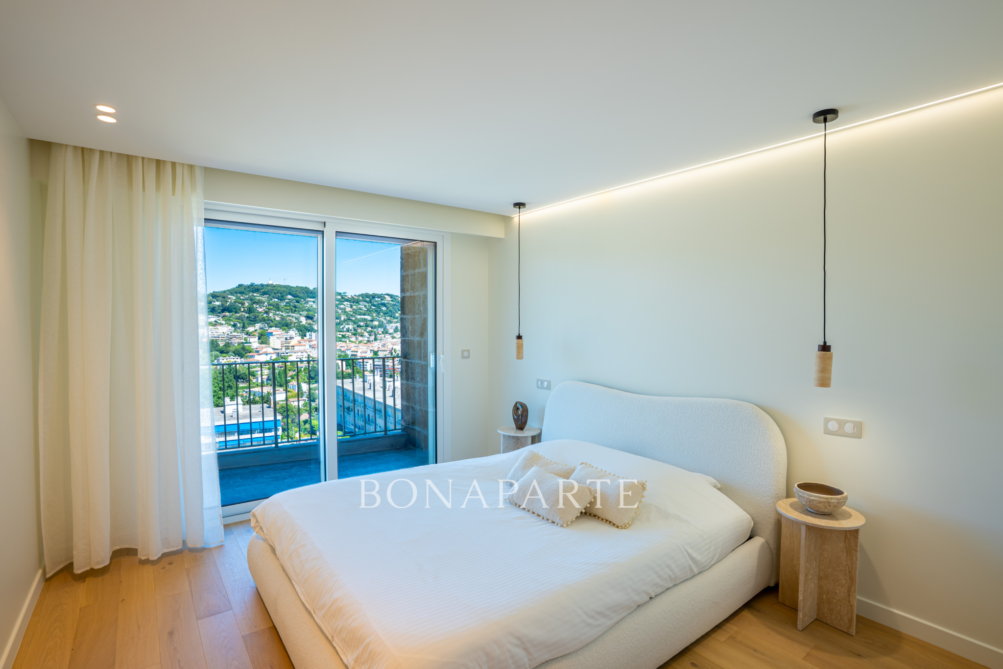 Profitez d'une vue panoramique exceptionnelle sur la mer, l'Esterel et la ville, avec un séjour lumineux ouvrant sur une grande terrasse. Une cuisine équipée haut de gamme ravira les amateurs de gastronomie. L'espace nuit se compose d'une suite parentale avec dressing et salle de douche donnant sur terrasse, ainsi que de deux chambres supplémentaires se partageant une vaste salle de douche et disposant chacune d'un dressing aménagé.