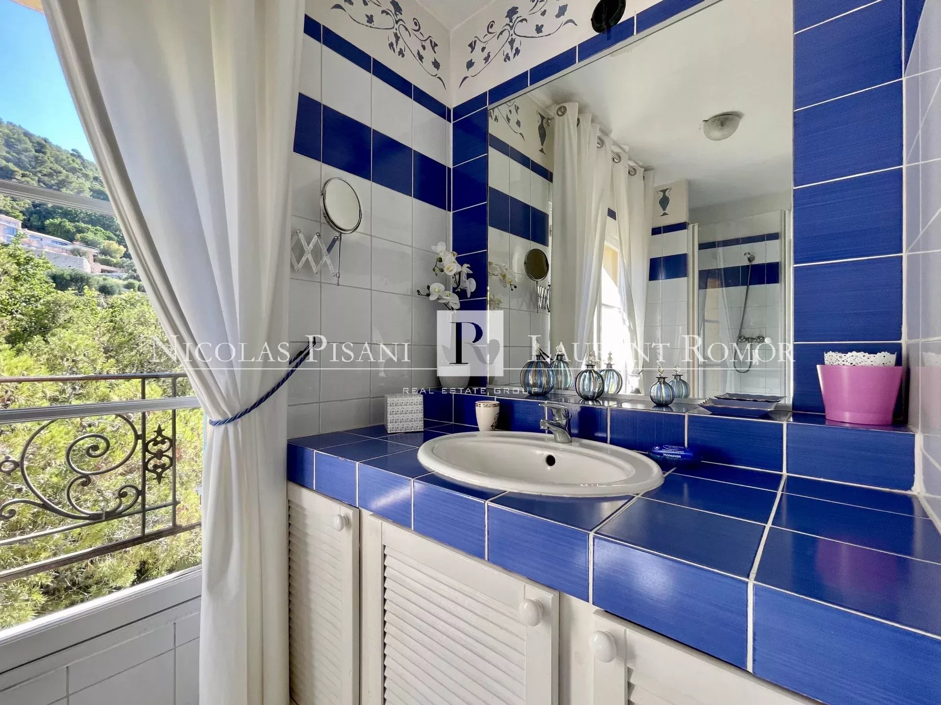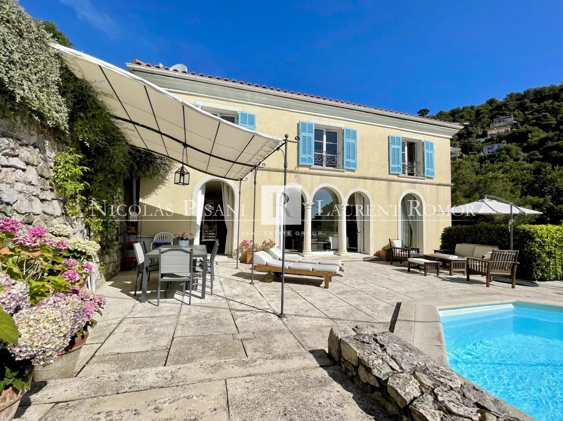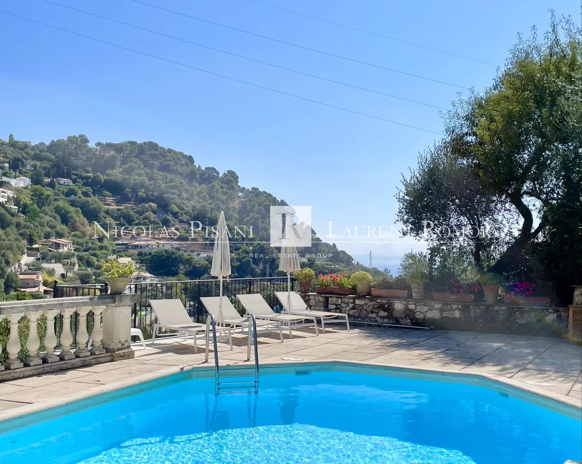 Charmante villa d'environ 250 m² située sur les hauteurs de Villefranche-sur-mer, agrémentée d'un joli jardin avec piscine privative, terrasse et aperçu mer. Dans un cadre verdoyant et calme, vous profiterez de cette très jolie villa comprenant : Au rez-de-chaussée : une entrée avec un double séjour et baies vitrées donnant sur la terrasse et la piscine, une cuisine indépendante équipée. A l'étage, trois chambres dont une avec deux lits simples, toilettes indépendantes, une salle de bain et une salle de douche. Au niveau inférieur : une chambre avec une salle de douche et toilettes séparées. Toutes les chambres sont climatisées. Deux places de parking.