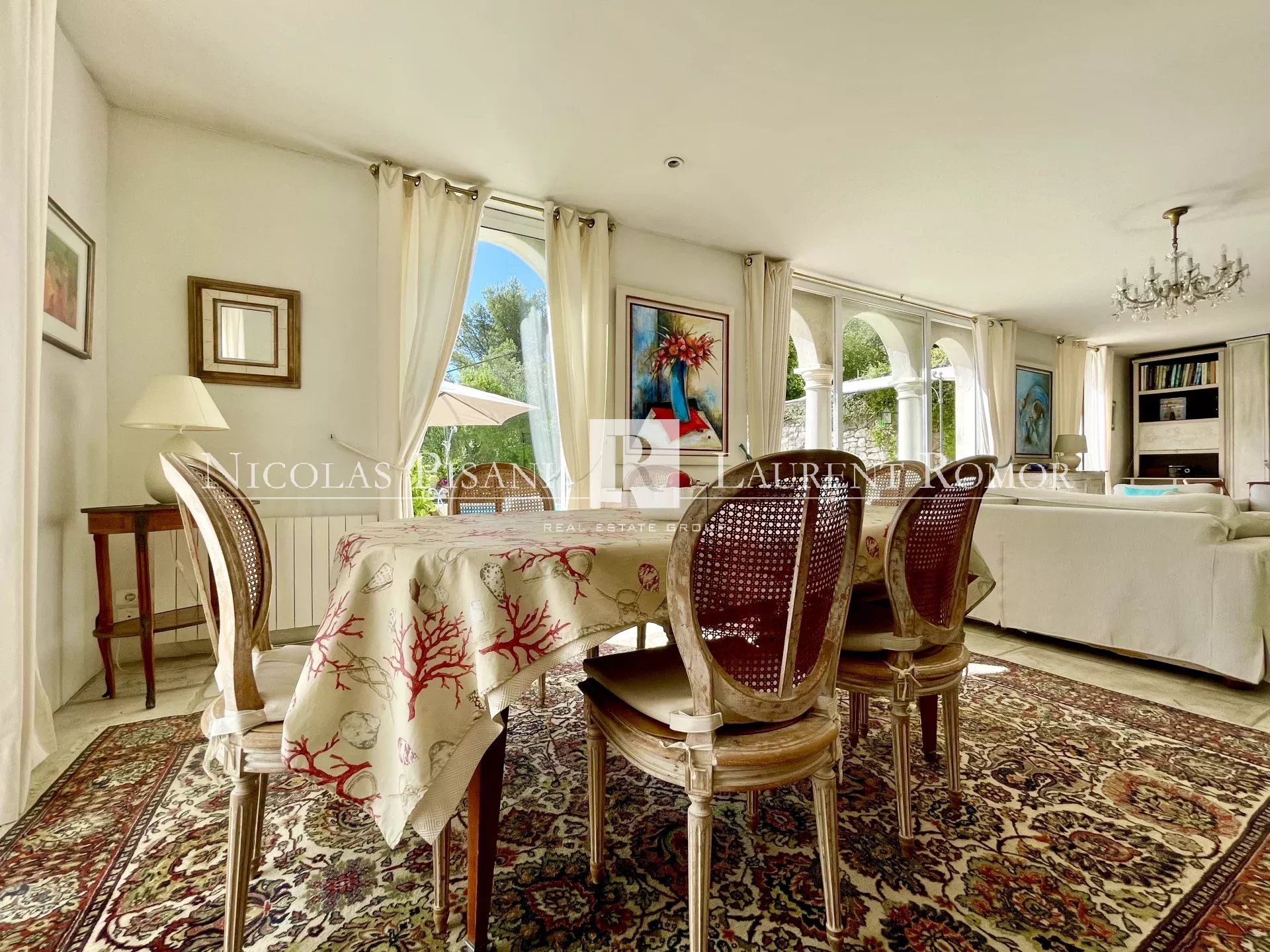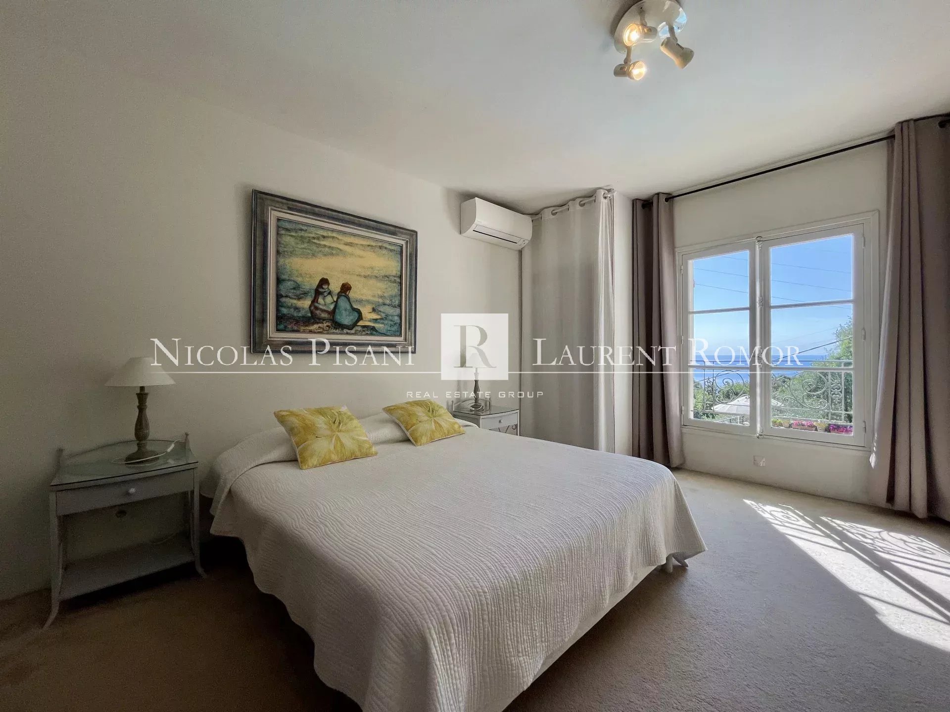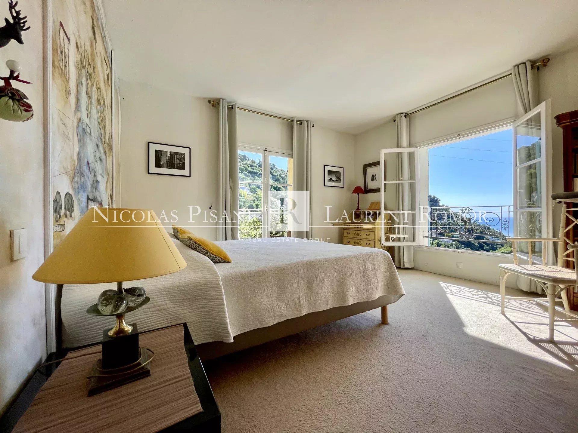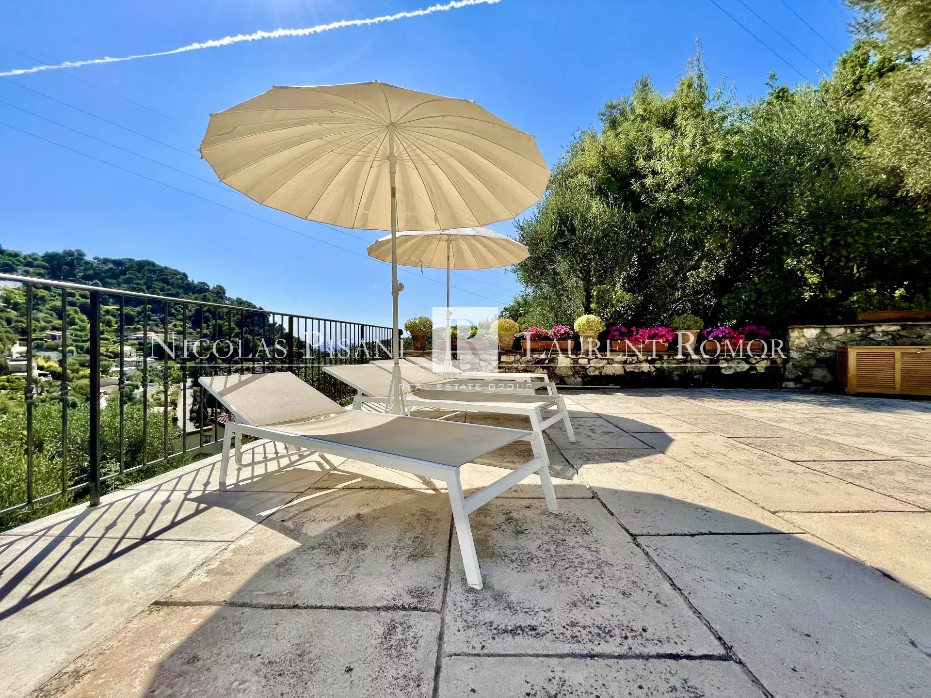 Charmante villa d'environ 250 m² située sur les hauteurs de Villefranche-sur-mer, agrémentée d'un joli jardin avec piscine privative, terrasse et aperçu mer. Dans un cadre verdoyant et calme, vous profiterez de cette très jolie villa comprenant : Au rez-de-chaussée : une entrée avec un double séjour et baies vitrées donnant sur la terrasse et la piscine, une cuisine indépendante équipée. A l'étage, trois chambres dont une avec deux lits simples, toilettes indépendantes, une salle de bain et une salle de douche. Au niveau inférieur : une chambre avec une salle de douche et toilettes séparées. Toutes les chambres sont climatisées. Deux places de parking.