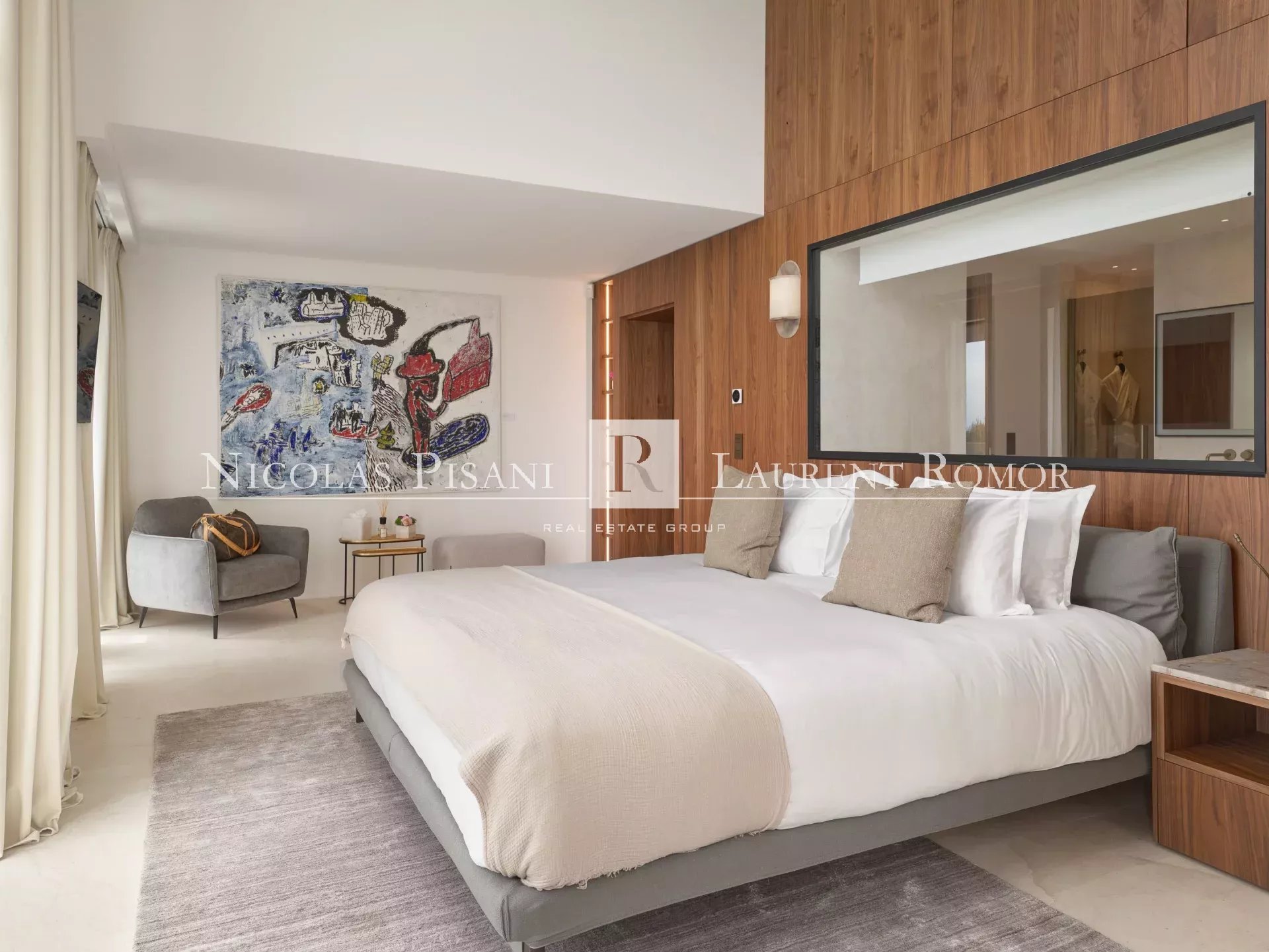La propriété offre au total 5 chambres avec accès à la terrasse et 8 salles de bains, de nombreux espaces de vie, une salle à manger et une cuisine entièrement équipée, toutes les pièces donnent sur une vue spectaculaire sur Saint-Jean-Cap-Ferrat, de Beaulieu-sur-Mer à Cannes et sur le massif de l'Esterel.