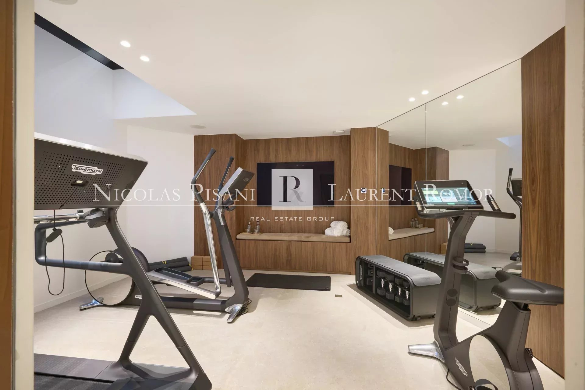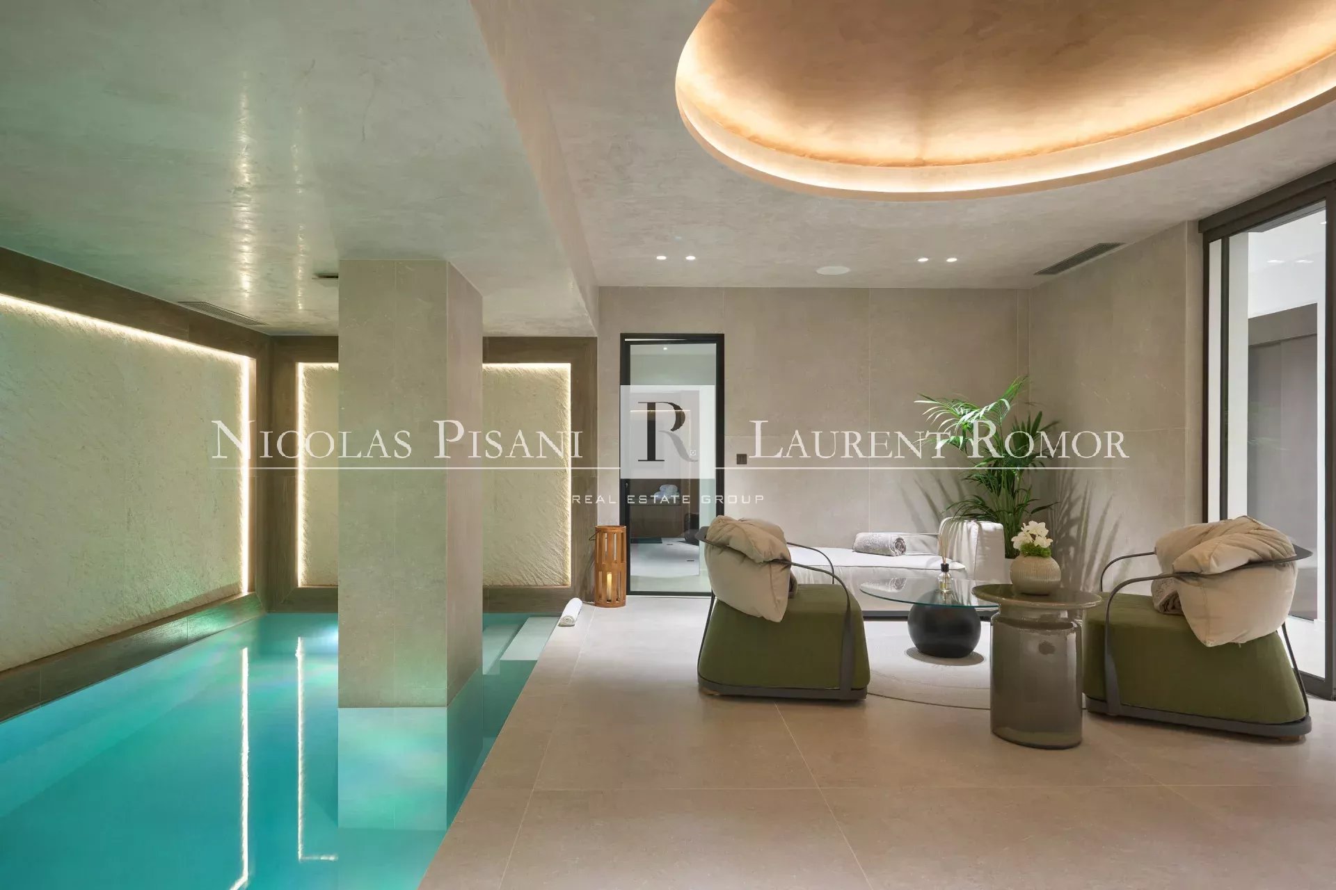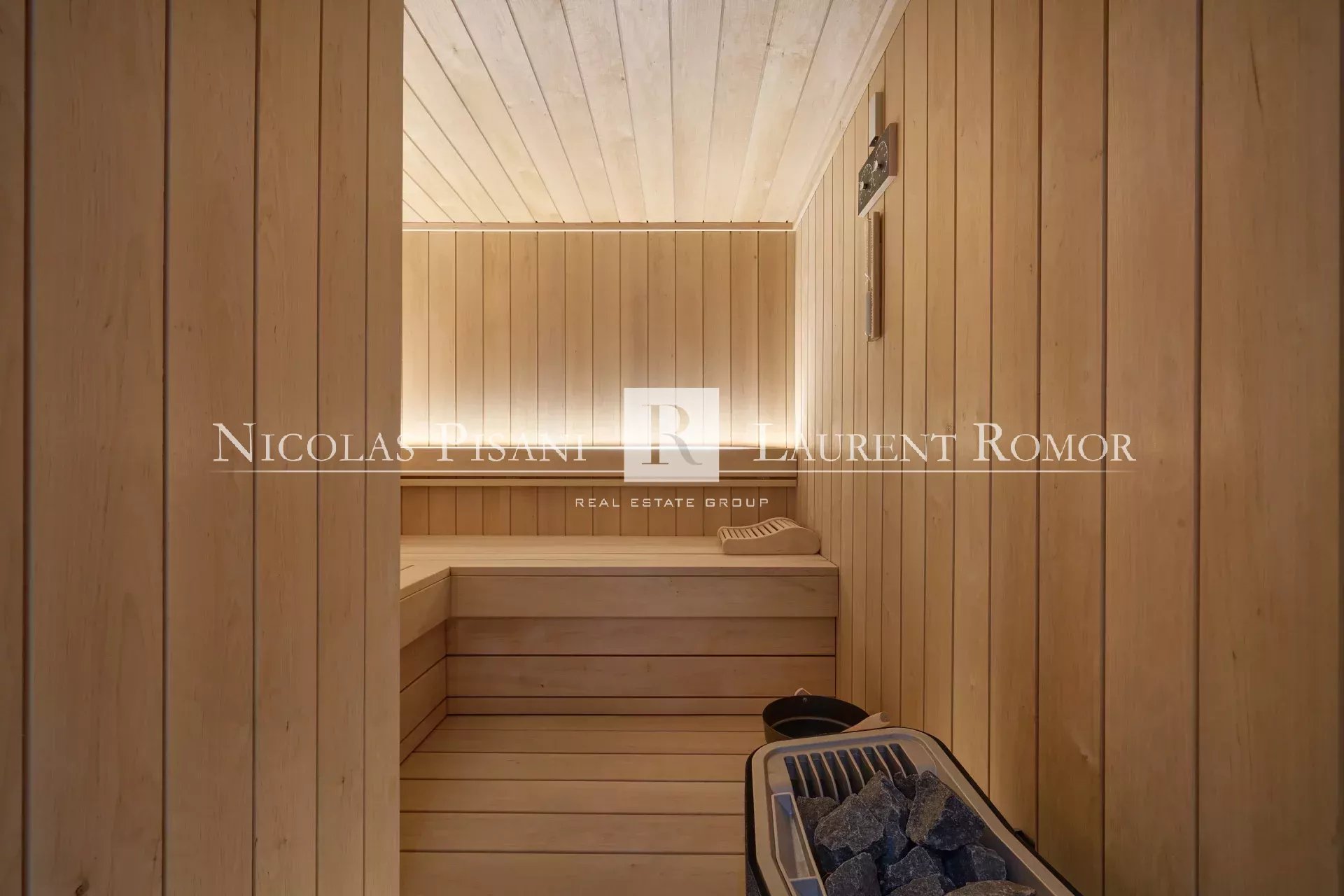 Une piscine intérieure, un sauna, une salle de sport équipée, une salle de cinéma équipée, une piscine extérieure chauffée avec pool house, une cuisine extérieure et un garage sécurisé. Parking pour 3 voitures.